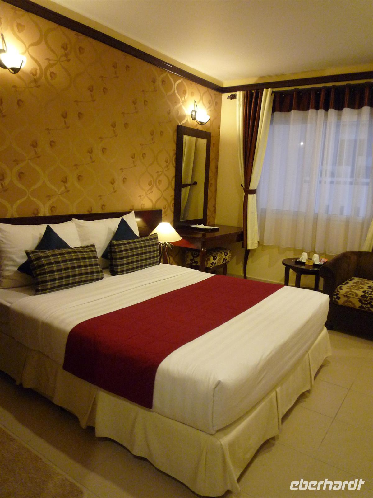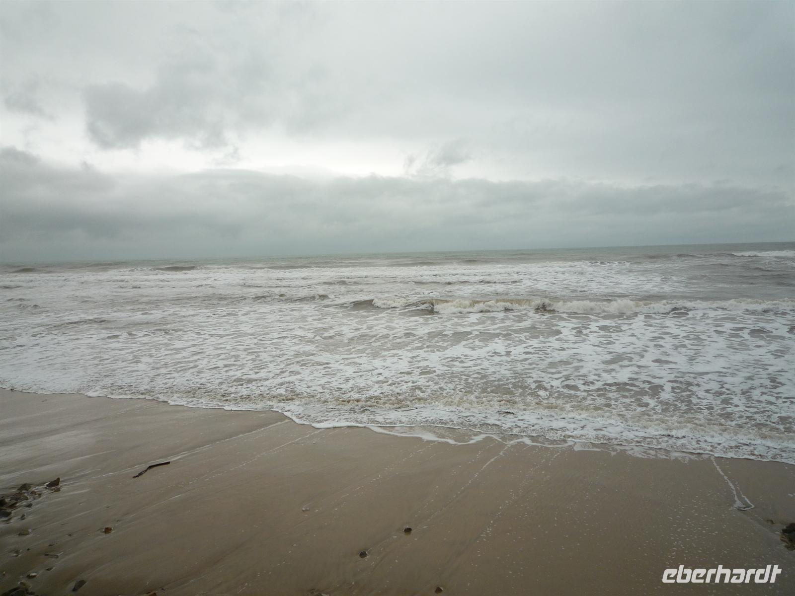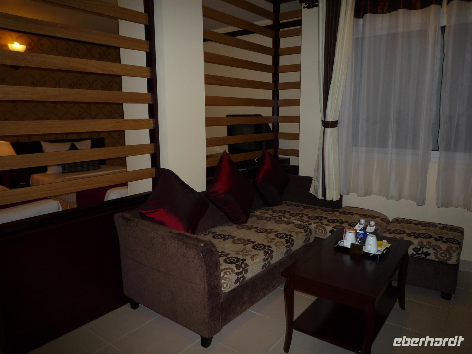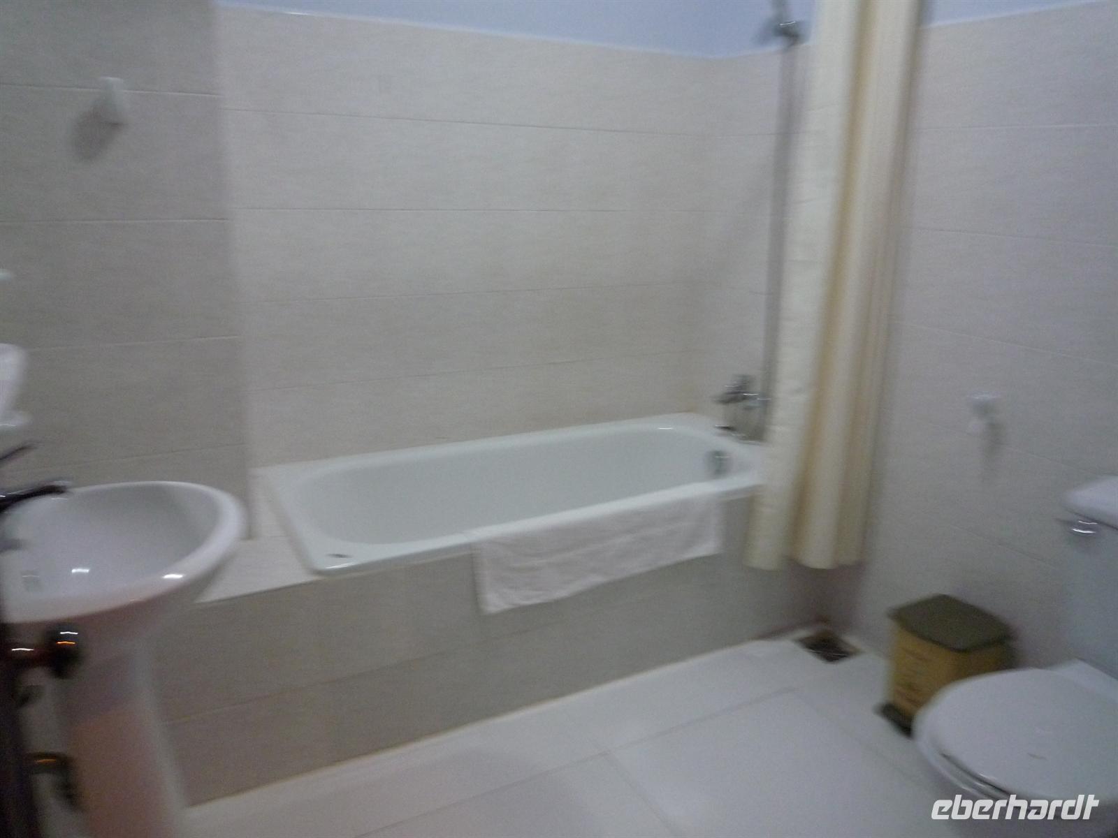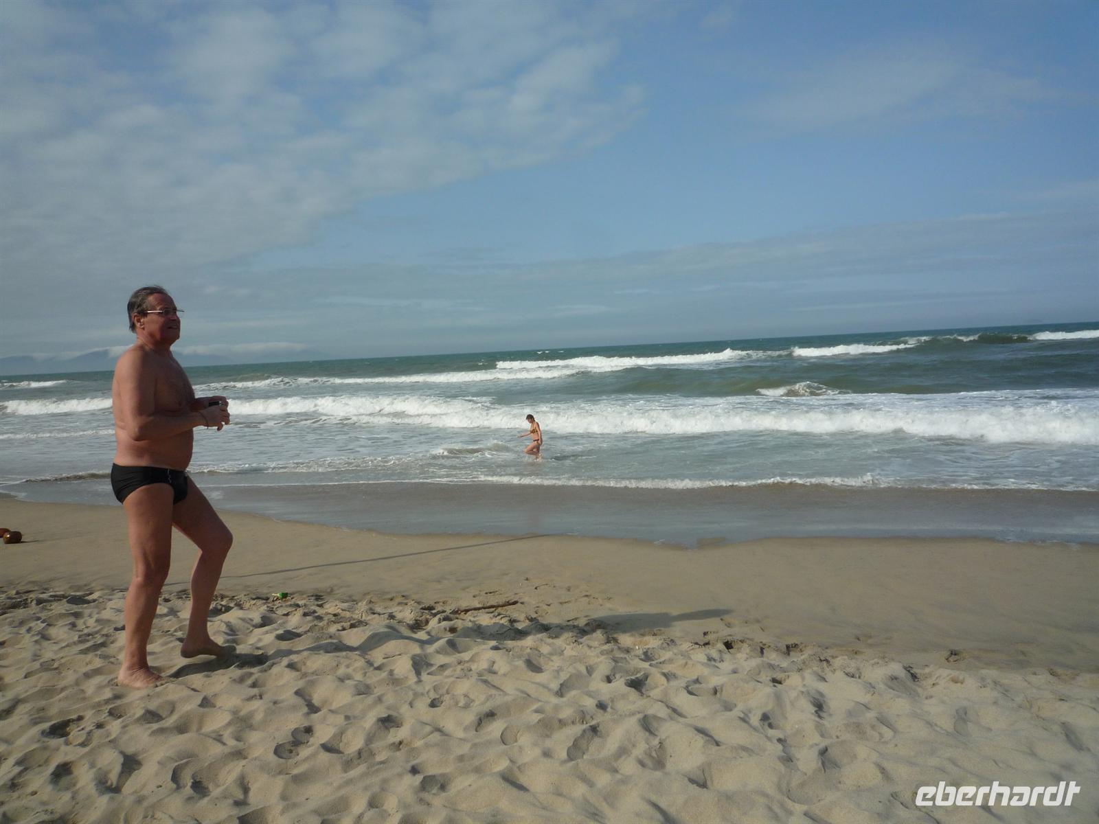 Wir checken in unserem Hotel ein, dass nur durch einer Straße vom Strand getrennt ist. Das Abendessen nehmen wir auf der Dachterrasse des Hotels ein.
