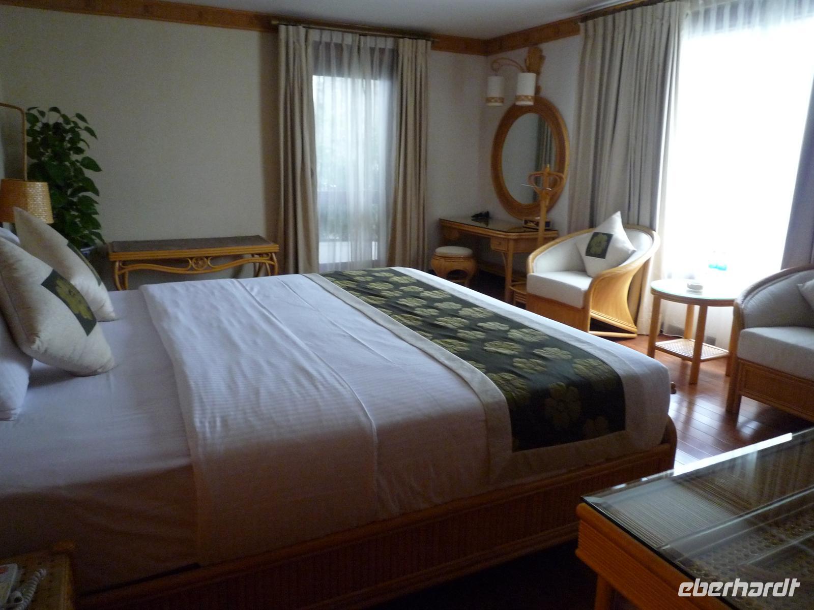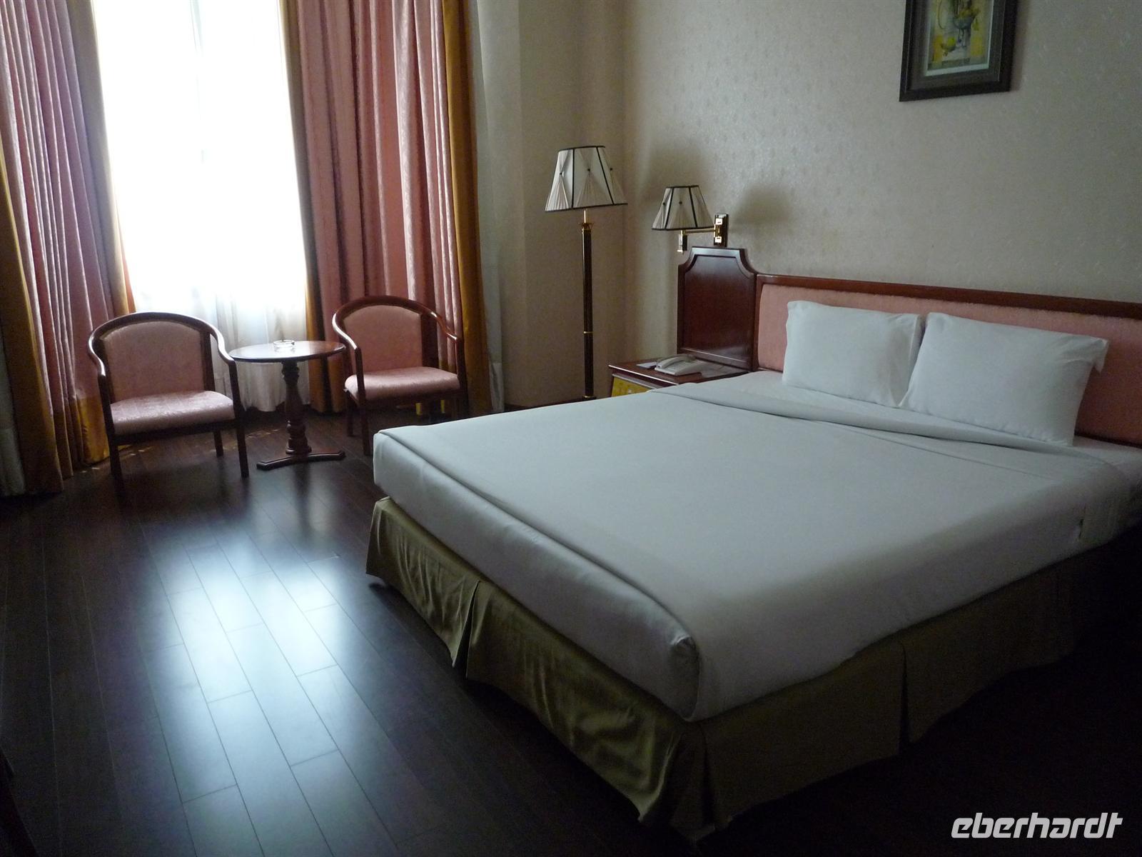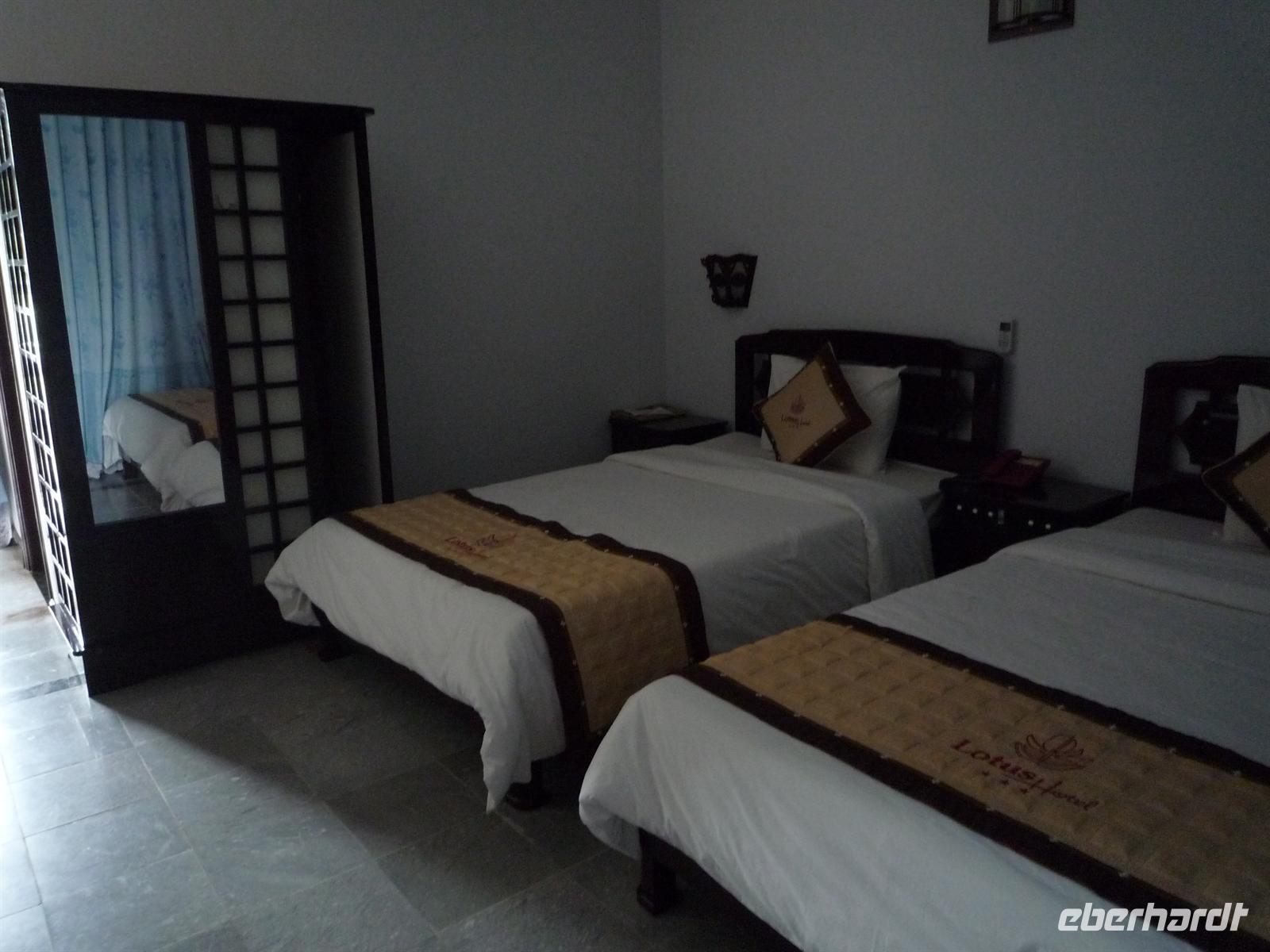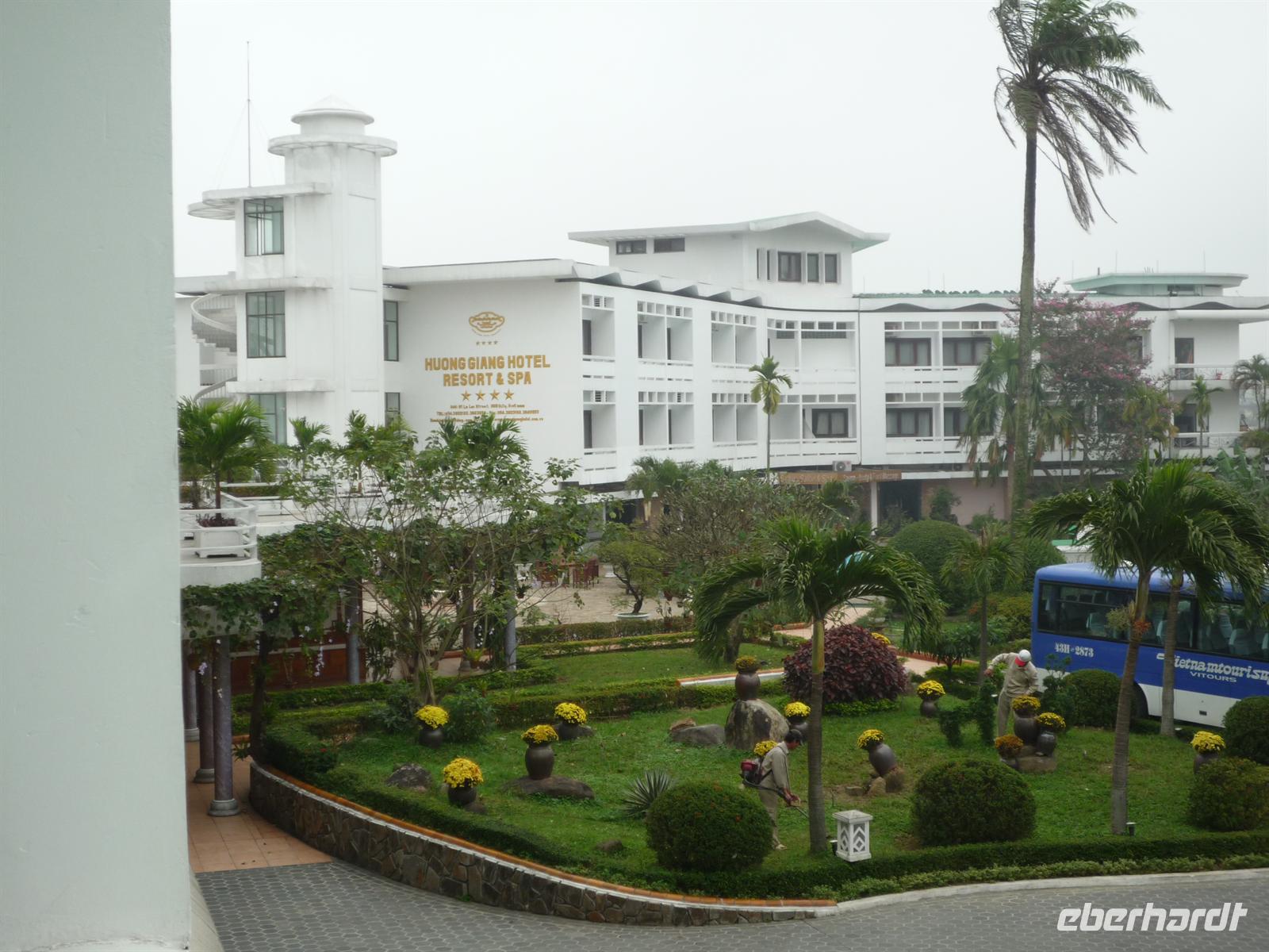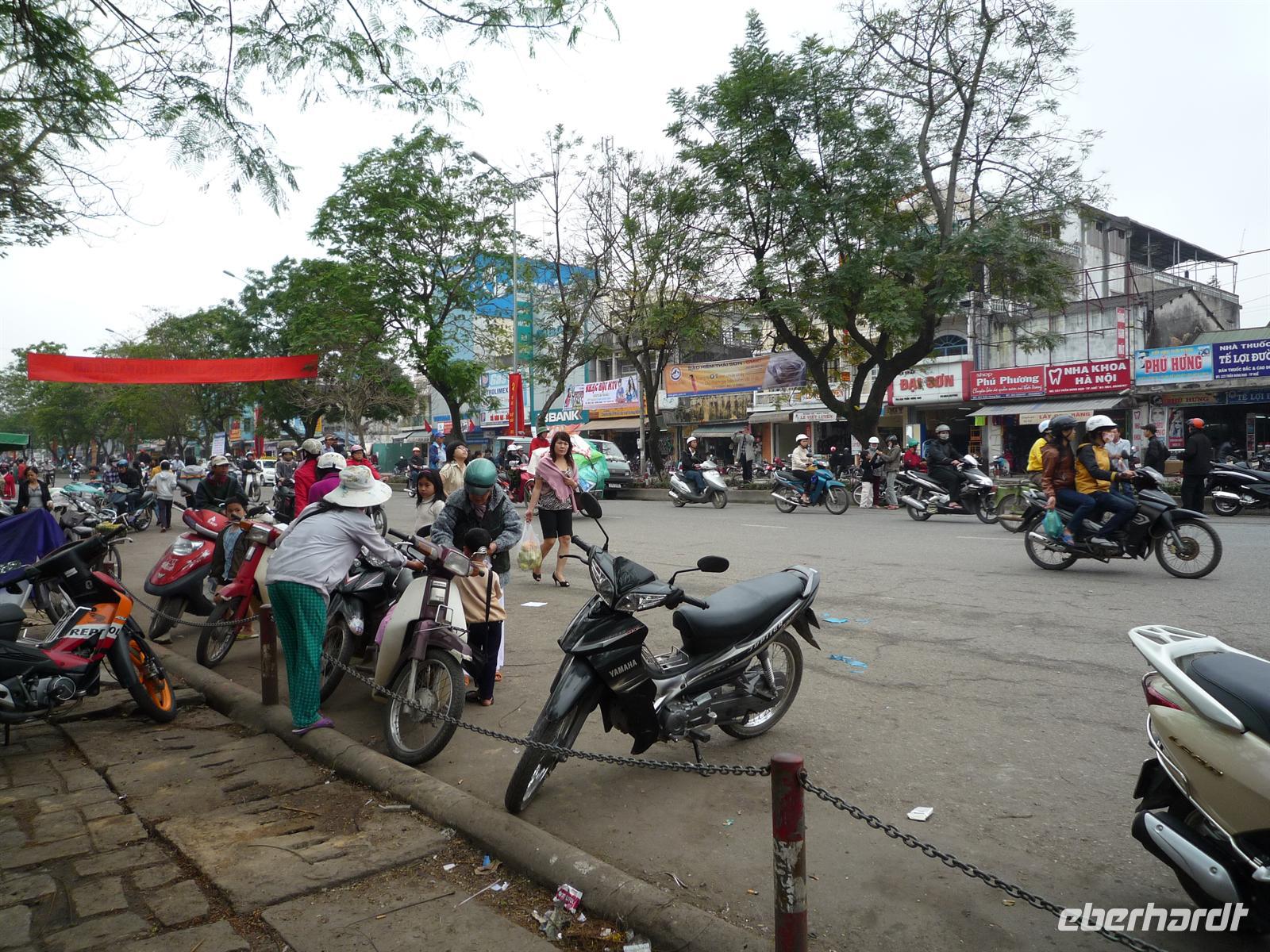 Anschließend fahren wir zum Dong Ba-Markt nach Hue, wo jeder auf eigene Faust das Leben und Treiben beobachten kann. Hier gibt es alles, was man sich vorstellen: von einer gewöhnungsbedürftigen Fleischauslage über exotische Früchte oder auch Souvenirs. Natürlich ist immer handeln angesagt, denn das erwarten die Vietnamesen, wenn man bei Ihnen kauft. Der Nachmittag steht zur freien Verfügung. Da es etwas regnet, nutzen ihn einige dazu, um den Schlaf nachzuholen. Andere spazieren entlang des Ufers durch die kleine Stadt oder kaufen ein paar Postkarten. Zum Abendessen fahren wir gemeinsam in ein Restaurant, wo wir neben einem typisch asiatischen Essen auch traditionelle Musik hören. Unser Hotel liegt direkt am Fluss Huong Giang - dem „Fluss der Wohlgerüche“ und ist komfortabel ausgestattet.