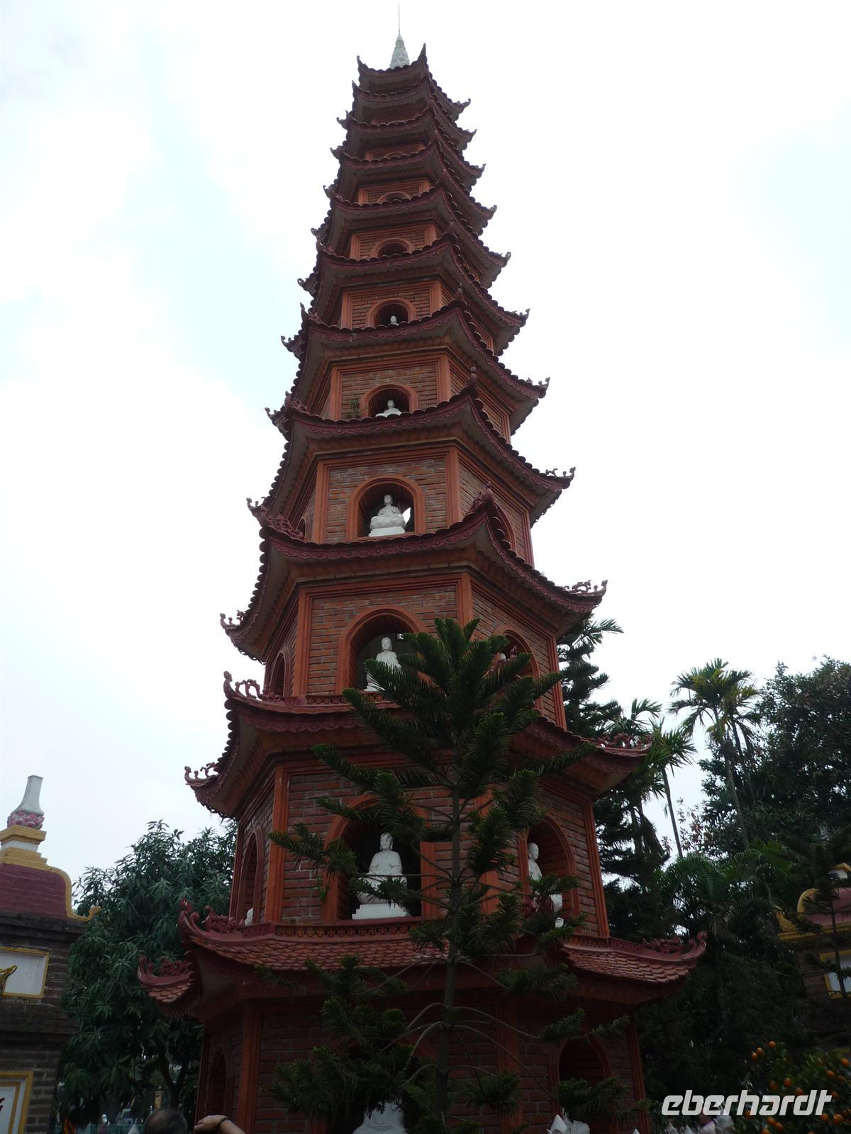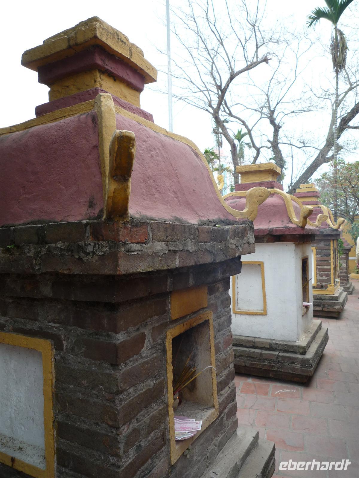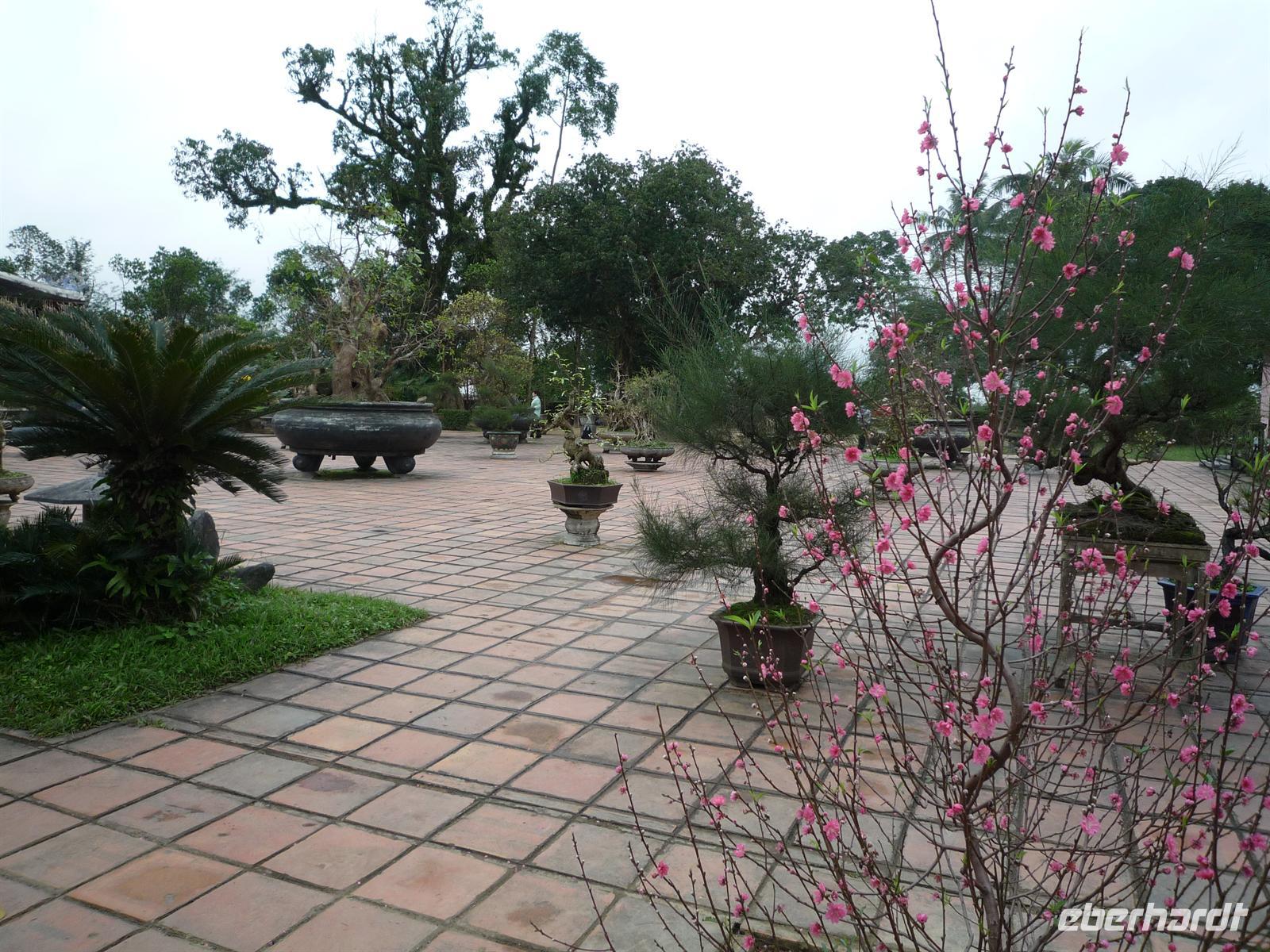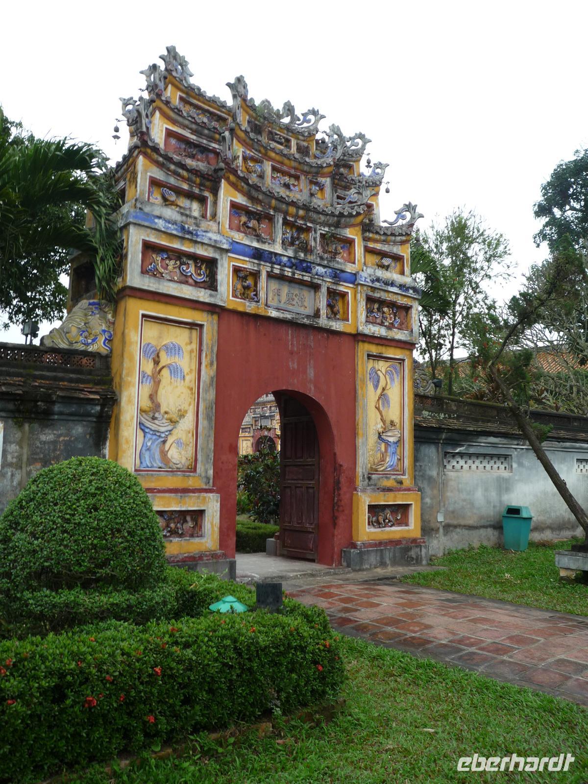 Am Morgen schippern wir mit einem Drachenboot auf dem Fluss entlang bis zur Thin-Mu-Pagode. Auf dem Boot werden verschiedene Textilien und Souvenirs angeboten und einige von uns machen davon reichlich Gebrauch. Die Preise sind auch sehr verführerisch. Die Pagode, welche der Himmelsgöttin geweiht ist, liegt zauberhaft am Fluss. Gleich am Eingang befindet sich der Turm der Pagode, welchen man schon von weitem sehen kann. Es ist in Hue die älteste Pagode, sie stammt aus dem Jahre 1601 und wurde durch den Fürsten Nguyen Hoang errichtet. Ein Traum wies ihm die richtige Stelle zum Bau dieses Heiligtums. fahren wir zu den außerhalb von Hue gelegenen Kaisergräbern. Wir werden zwei Anlagen besuchen, die des vierten Kaisers Tu Duc (1829-1883) und des zwölften Kaisers Khai Dinh (1885-1925).