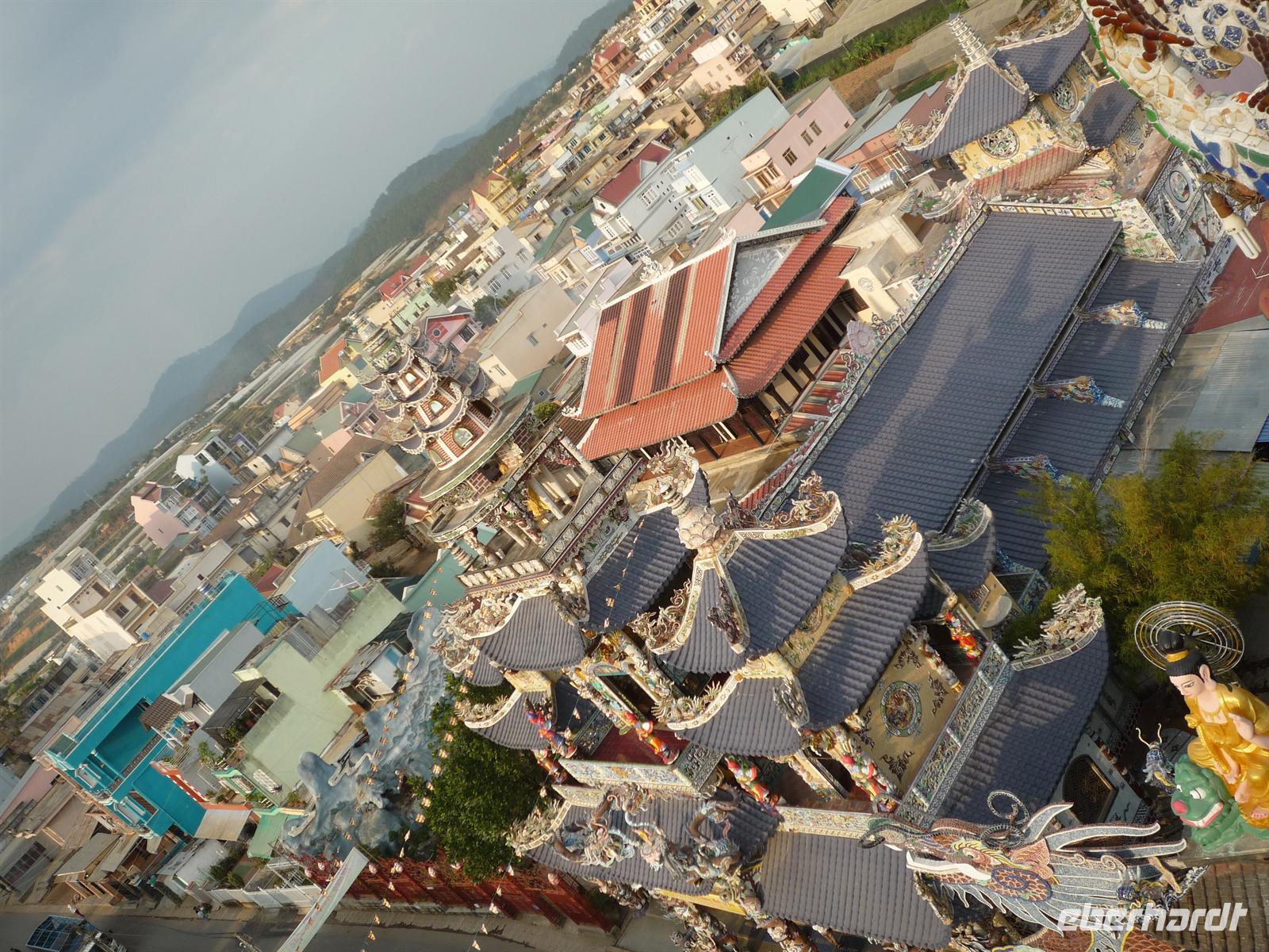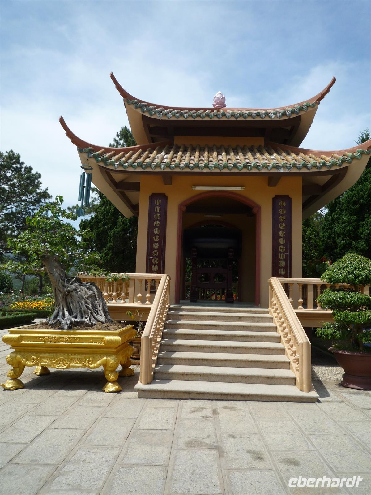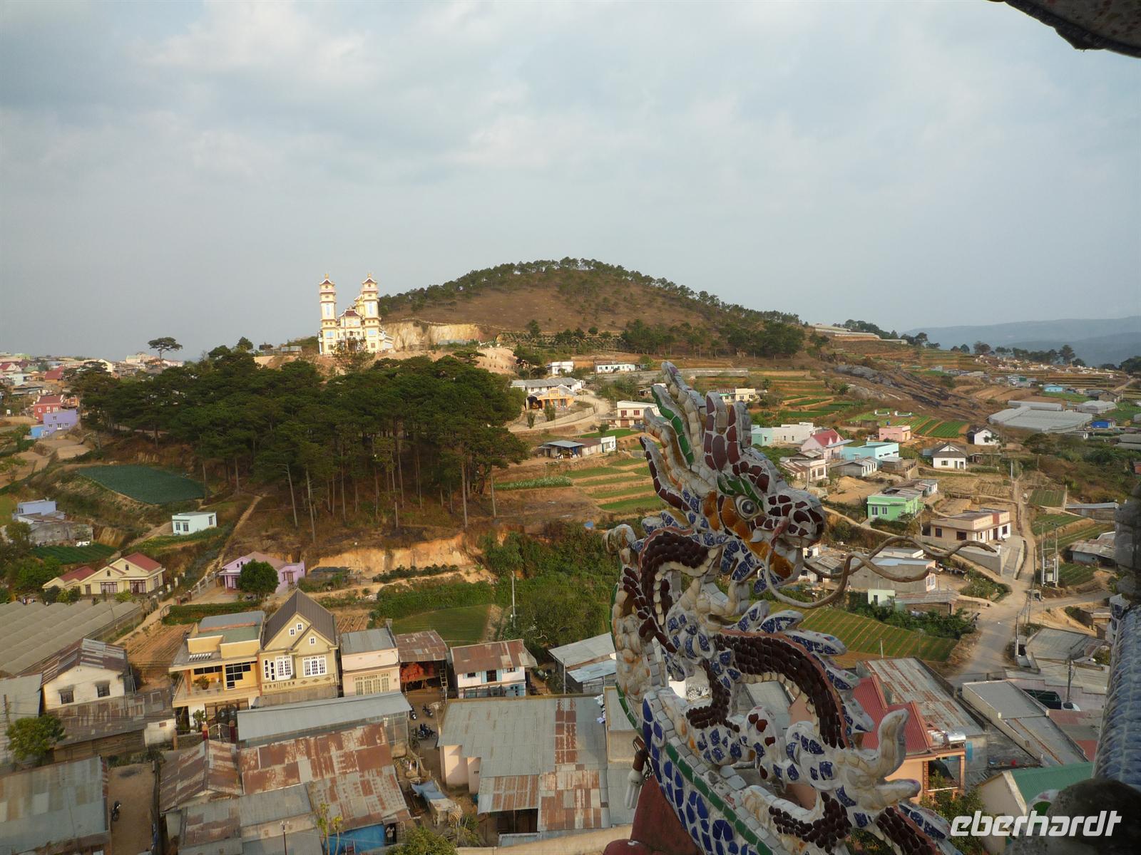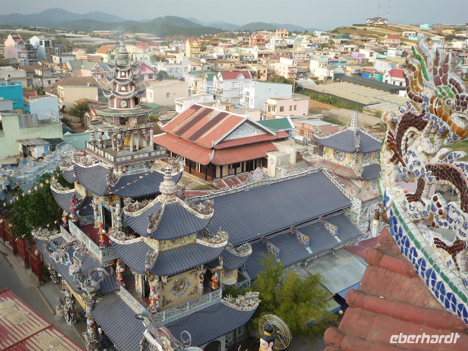 Da Lat hatte früher eine Bahnverbindung nach Saigon, davon ist noch eine kleine Strecke Strecke übrig geblieben, die sich bei Touristen großer Beliebtheit erfreut. Zwanzig Minuten dauert die Fahrt bis nach Trai Mat. Hier befindet sich die imposante Linh-Phouc-Pagode. Die Linh Phuoc-Pagode unterscheidet sich in der Architektur deutlich vom Stil der meisten vietnamesischen Pagoden, da diese Pagode im chinesischen Stil errichtet wurde.