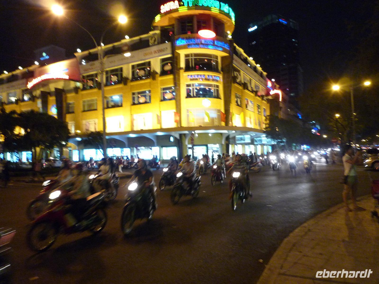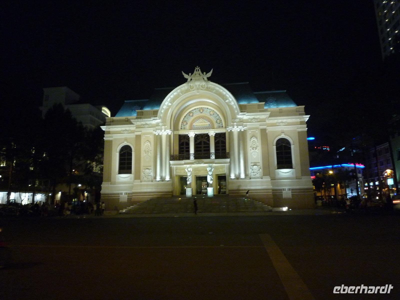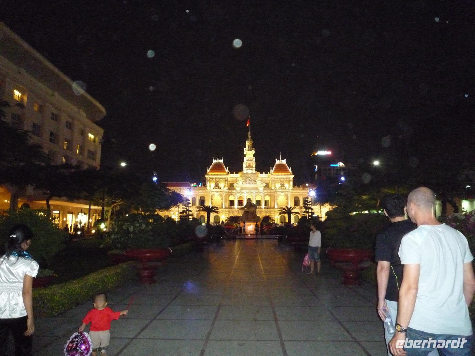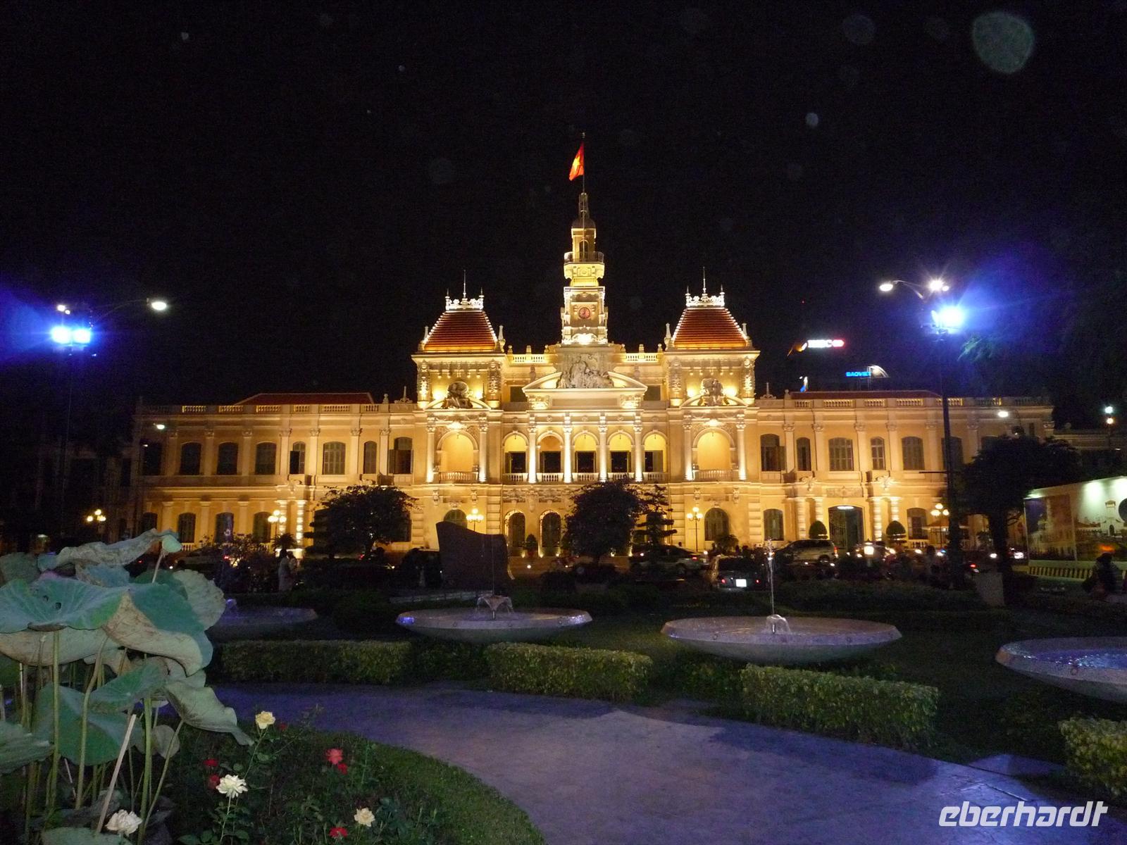 Der heutige Vormittag steht zur freien Verfügung. Fast alle nutzen ihn, um im herrlich warmen Meer Baden zu gehen. Die Sonne scheint und da bietet sich ein Bad im Meer perfekt an. Gegen Mittag verlassen wir das Hotel gemeinsam und fahren zu den Cham-Türmen, ein Wahrzeichen Nha Trangs und Symbol der Cham-Kultur. Das Volk der Cham herrschte einstmals über einen großen Teil des heutigen Vietnam und ist heute eine Minderheit von ca. 100000 Menschen. Dieses kleine Heiligtum ist hinduistischen Göttern geweiht, der Hauptturm der Frau Shivas, Parvati. Von hier hat man einen tollen Blick über die Stadt und die Küste. Weiter geht es direkt zum Flughafen, von wo wir nach Saigon fliegen. Dort erwartet uns unser neuer Bus und wir fahren sofort zum Hotel. Nach dem heutigen Abendessen in einem Lokal laufen wir durch das nächtlich beleuchtete Saigon. Die alten Kolonialgebäude wie das Rathaus oder die Oper sind wunderschön erleuchtet.