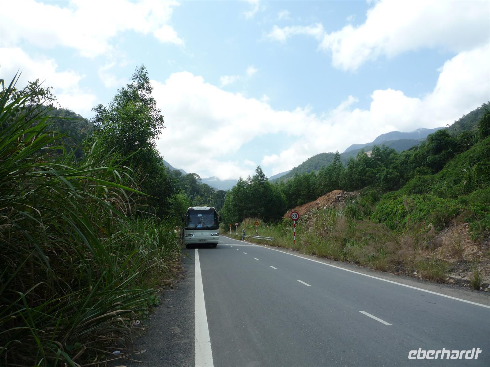 Nun verlassen wir Hue und fahren in Richtung Süden. Wir kommen nur langsam voran, denn überall dürfen nur 40 km/h in der Ortschaft gefahren werden und die Ortschaft Hue zieht sich über viele Kilometer. Nach der Mittagspause, wo wir einen ersten Blick auf das Meer erhaschen dürfen, geht es dann über den Wolkenpass, der, wie es der Name sagt, in den Wolken hängt. Verkehr gibt es mittlerweile kaum noch auf dem Pass, da es mittlerweile einen Tunnel gibt, der die Strecke verkürzt und von vielen Nutzfahrzeugen gebraucht wird. Wir erreichen unser Hotel in Hoi An. Zum Abendessen gibt es wieder vietnamesische Köstlichkeiten in einem Restaurant. Als Zugabe sing eine der Kellnerinnen für uns ein vietnamesisches Liebeslied.
