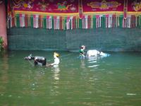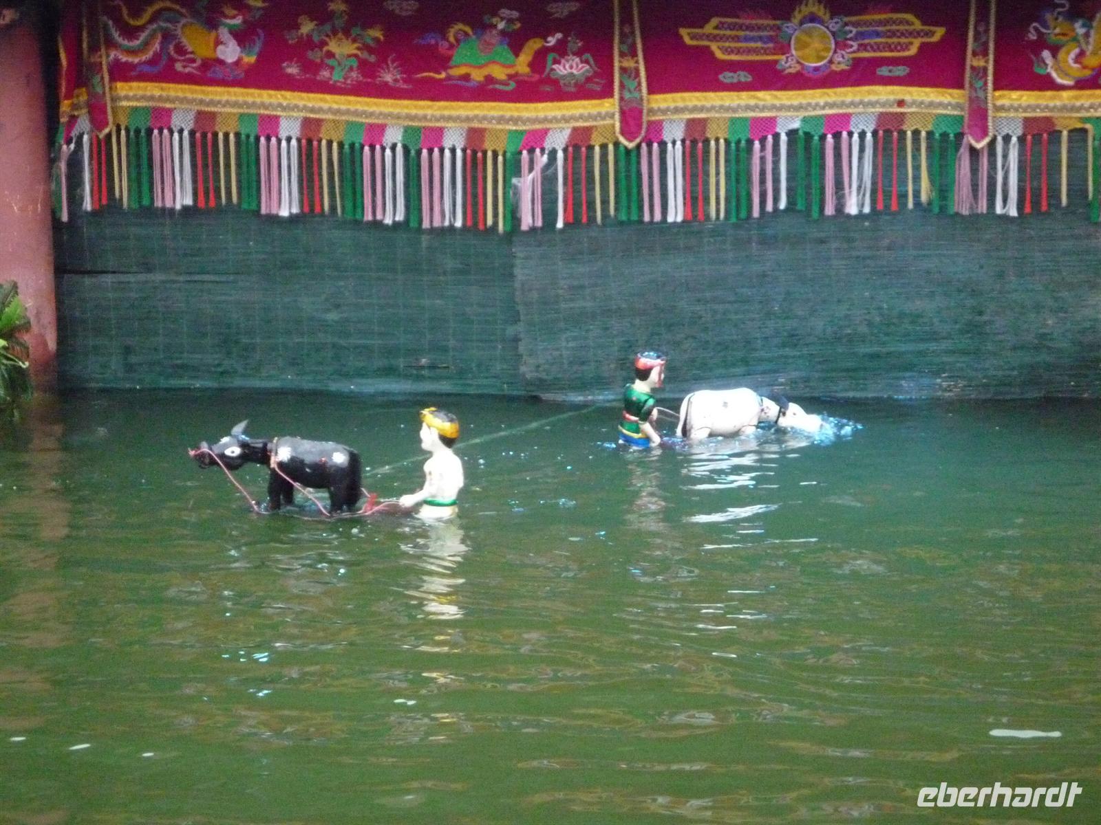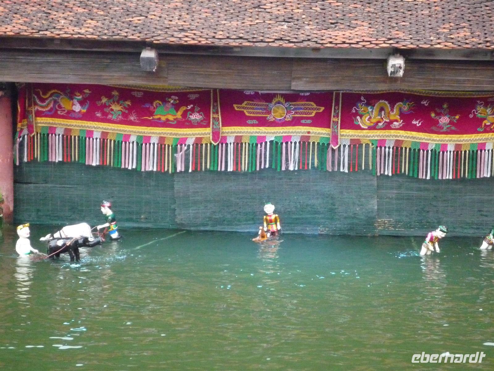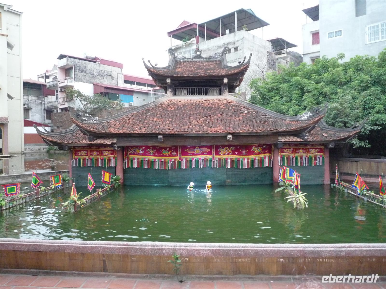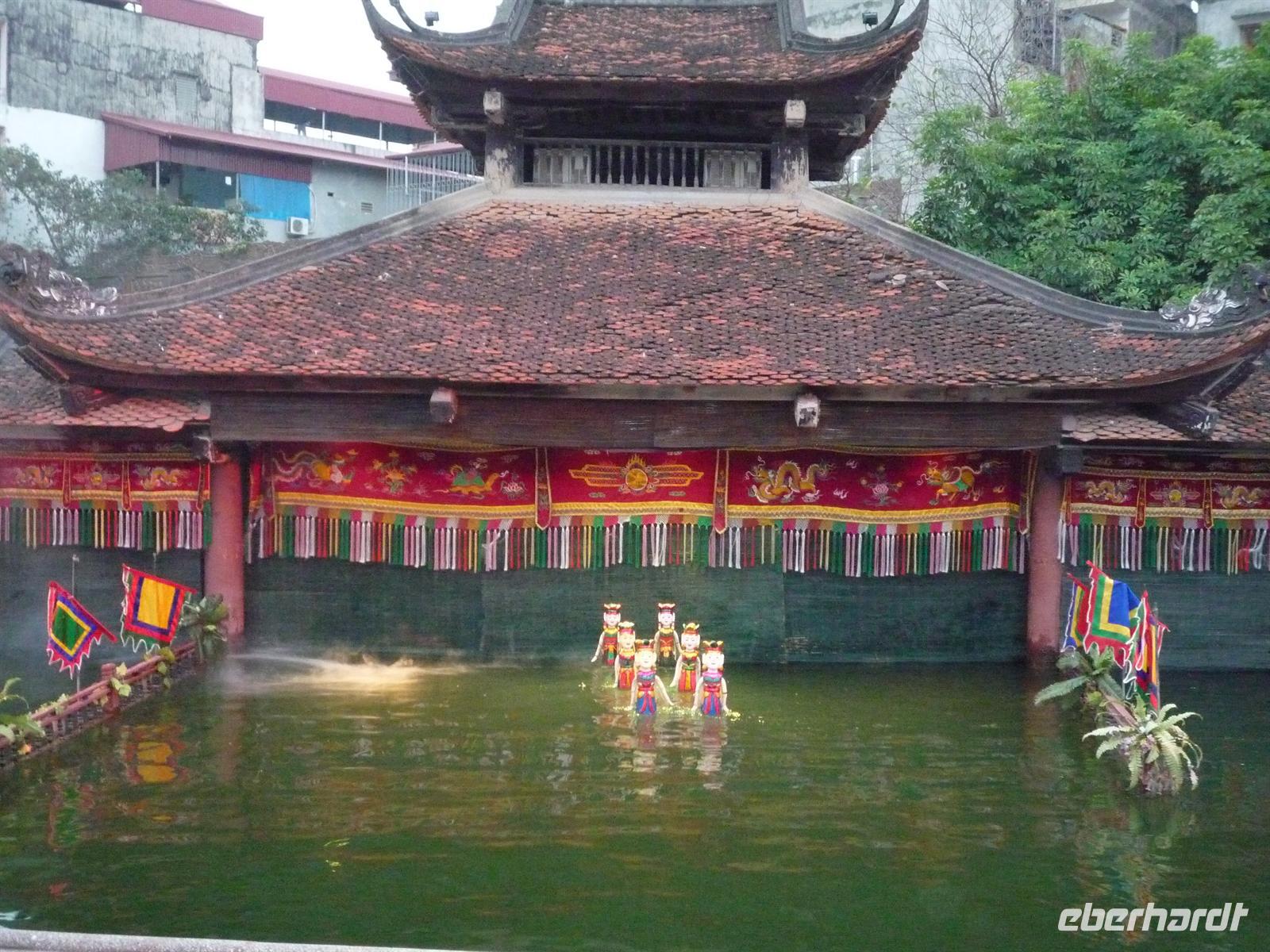 Anschließend ging es zum Hoan-Kiem-See, wo wir den Jadebergtempel besuchten. Von dort fuhren wir zum Wasserpuppentheater - eine große Freiluft-Theater-Anlage, wo uns mit Holzpuppen, die im Wasser stehen, und vietnamesischer Musik, das alltägliche Leben näher gebracht wird.