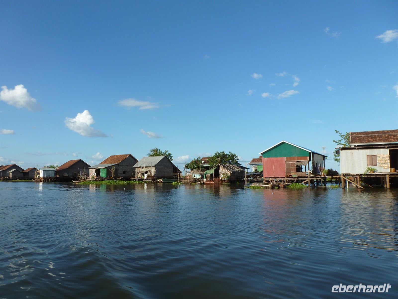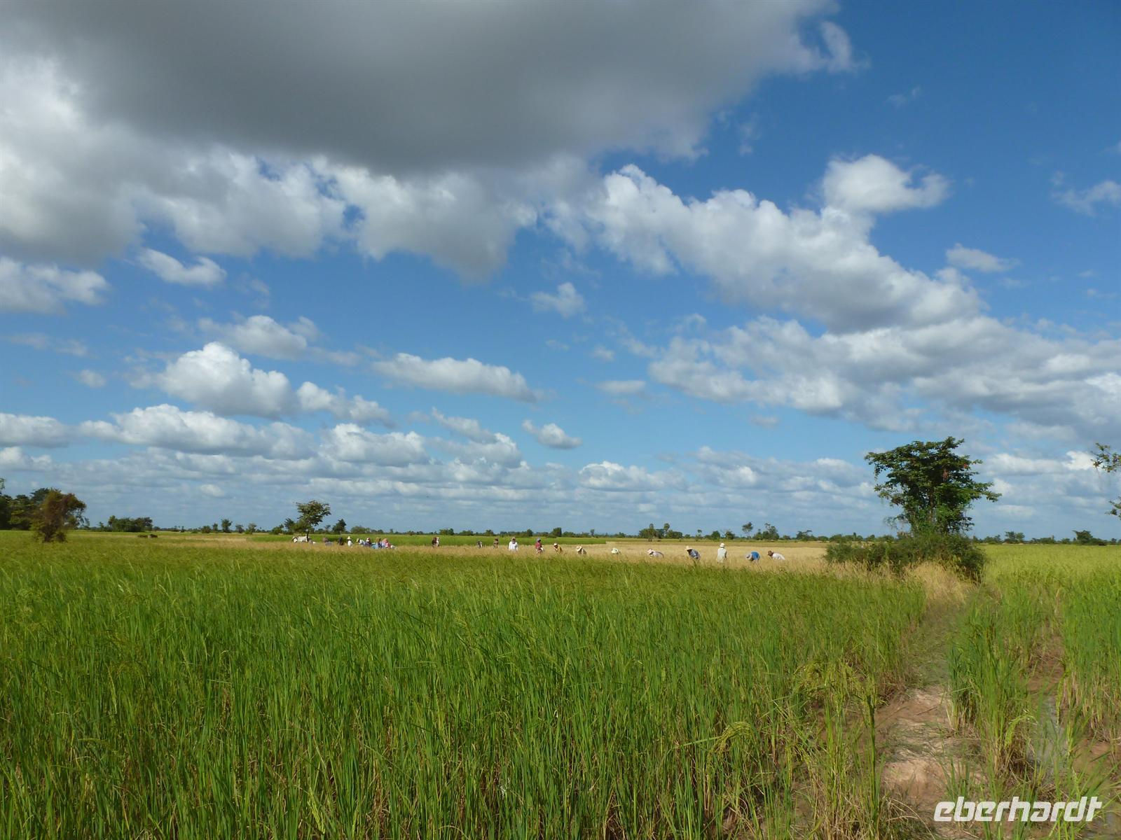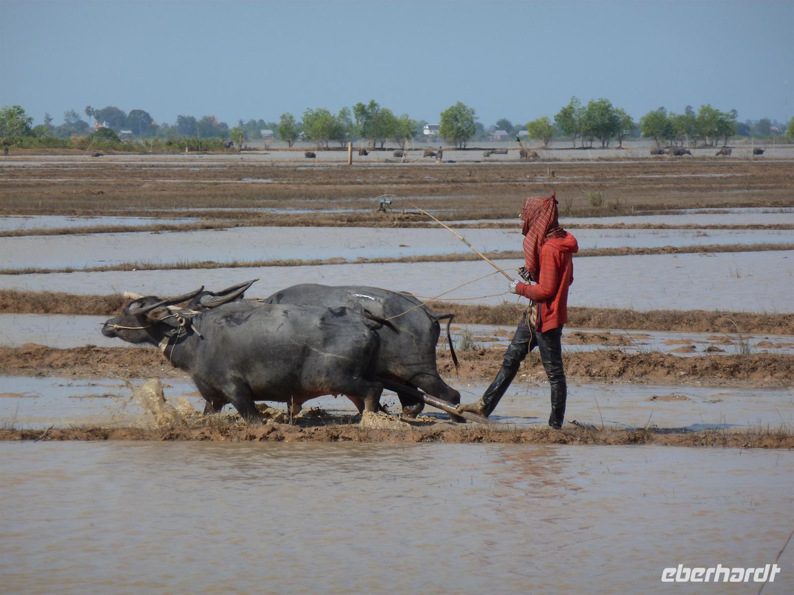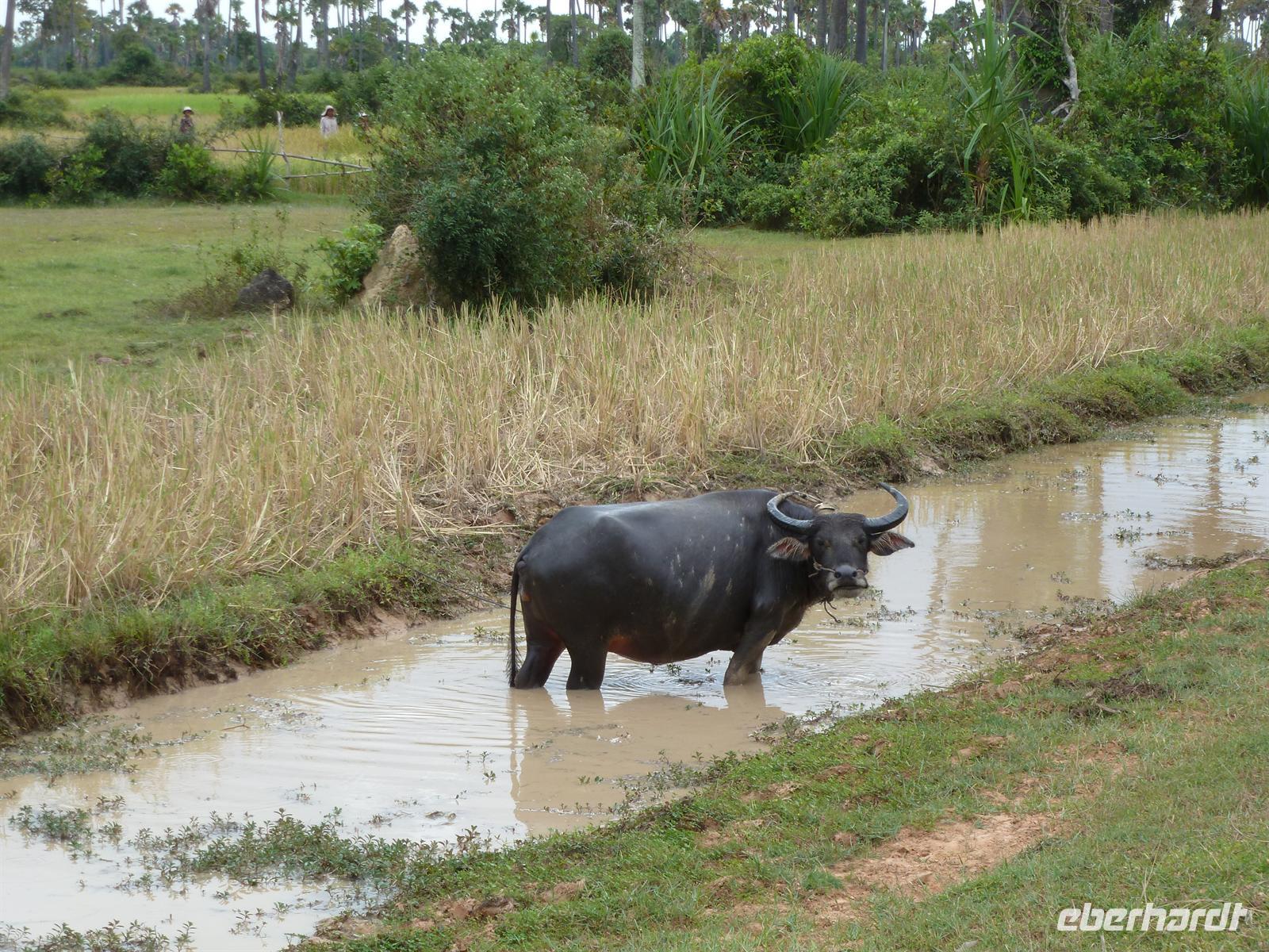 von Siem Reap. Unser Reiseleiter Min Thol erklärte uns dabei die verschiedenen Baustile der Häuser und Pagoden anhand von Zeichnungen, wir bekommen Infos zur vielfältigen Nutzung von Wasserhyazinthen, u.a. zur Seilproduktion, als Wasserfilter und für medizinische Belange und erfahren, das man aus den Samen des Kapokbaumes Seife herstellen kann. Wir treffen Dorfbewohner und bekommen einen unmittelbaren Eindruck von den teilweise sehr schwierigen Lebensumständen, mit denen sich die überwiegend arme Landbevölkerung auseinandersetzen muss. Aber wir sehen trotz allem auch Hoffnung, Lebenslust und den Willen, dieses Leben gut zu meistern. Mit diesen Eindrücken fahren wir zurück in die Stadt und bereiten uns auf unseren bevorstehenden Abflug vor. Ein stärkendes, spätes Mittagessen, ein paar Gespräche über die Erlebnisse der vergangenen Wochen und schon war die Zeit herum und unser Bus brachte uns zum Flughafen. Entgegen unserem verpatzten Hinflug funktionierte dieses Mal alles einwandfrei und wir landeten pünktlich, aber etwas müde am frühen Samstagmorgen wieder in der Heimat. Damit ging eine erlebnisreiche, wunderschöne Reise durch zwei faszinierende Länder der Indochinesischen Halbinsel zu Ende.