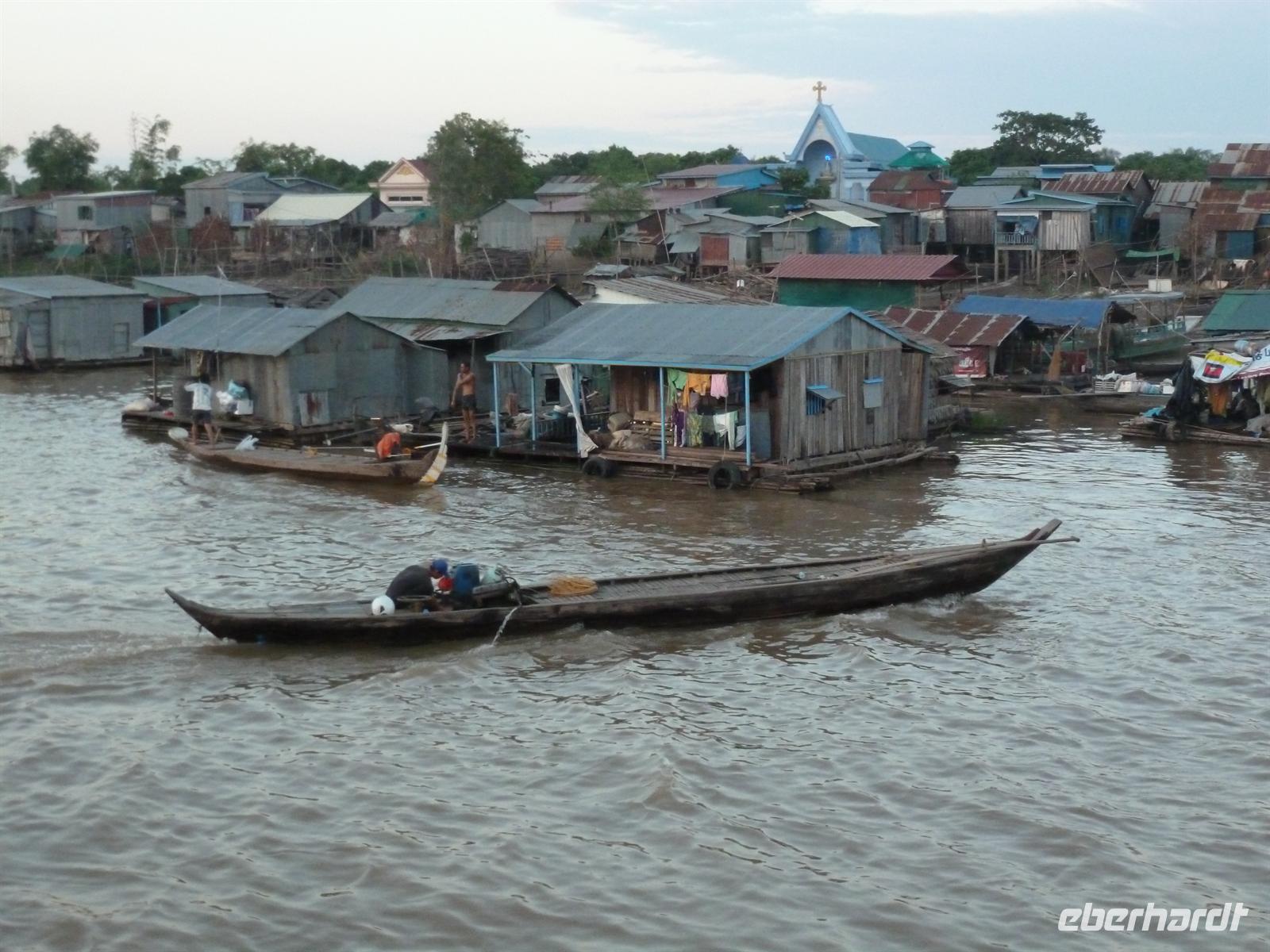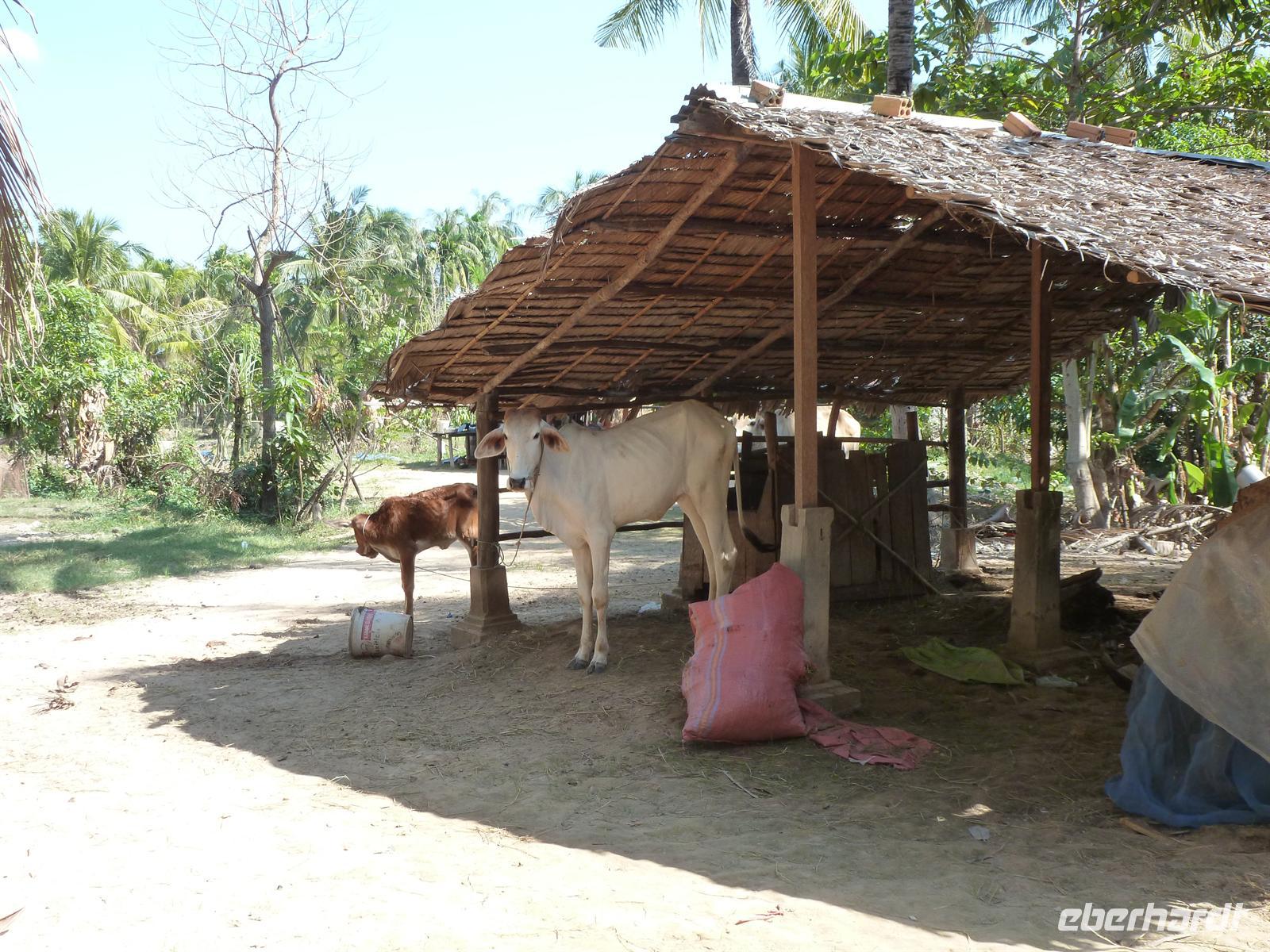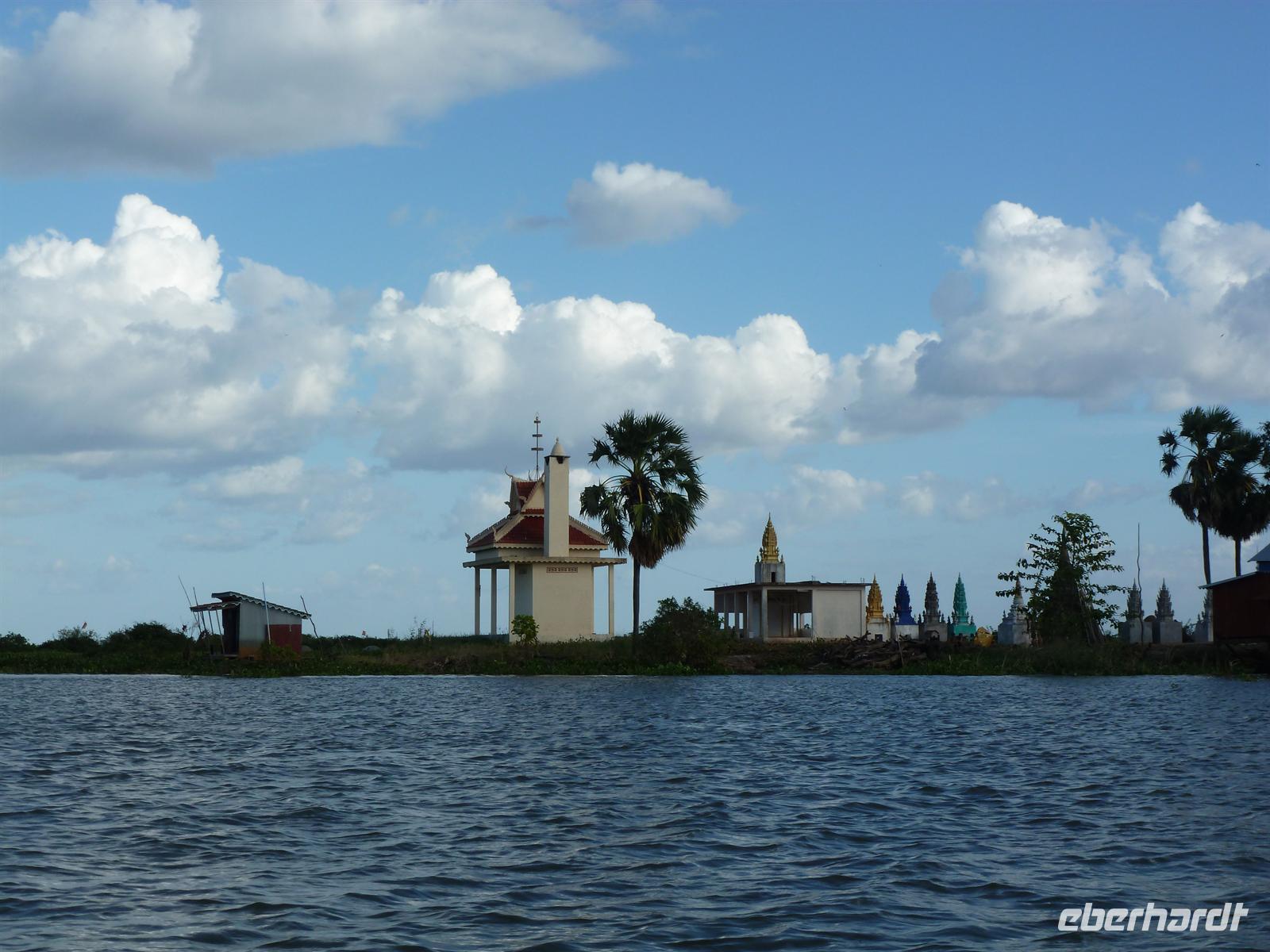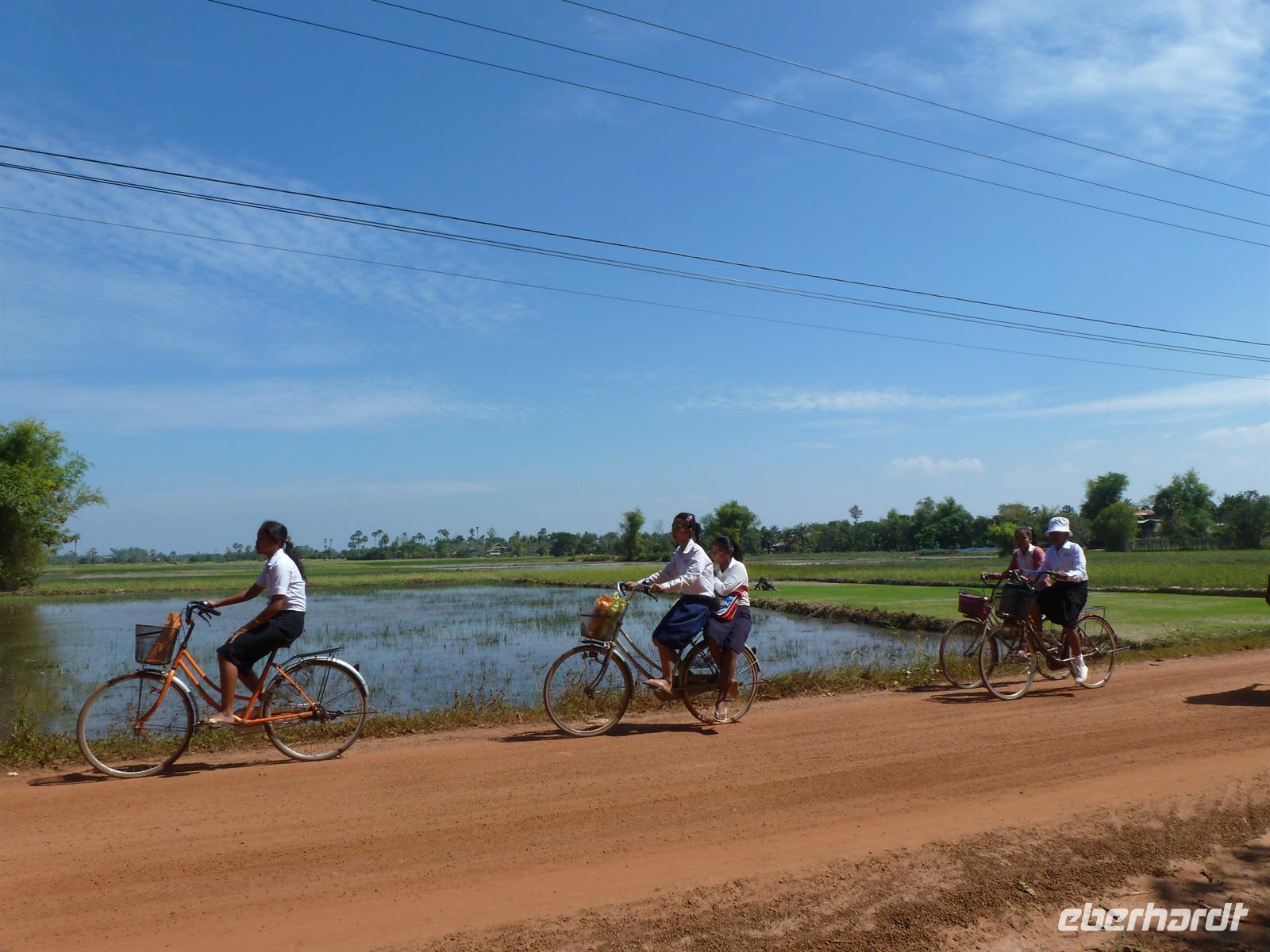 von Siem Reap. Unser Reiseleiter Min Thol erklärte uns dabei die verschiedenen Baustile der Häuser und Pagoden anhand von Zeichnungen, wir bekommen Infos zur vielfältigen Nutzung von Wasserhyazinthen, u.a. zur Seilproduktion, als Wasserfilter und für medizinische Belange und erfahren, das man aus den Samen des Kapokbaumes Seife herstellen kann. Wir treffen Dorfbewohner und bekommen einen unmittelbaren Eindruck von den teilweise sehr schwierigen Lebensumständen, mit denen sich die überwiegend arme Landbevölkerung auseinandersetzen muss. Aber wir sehen trotz allem auch Hoffnung, Lebenslust und den Willen, dieses Leben gut zu meistern. Mit diesen Eindrücken fahren wir zurück in die Stadt und bereiten uns auf unseren bevorstehenden Abflug vor. Ein stärkendes, spätes Mittagessen, ein paar Gespräche über die Erlebnisse der vergangenen Wochen und schon war die Zeit herum und unser Bus brachte uns zum Flughafen. Entgegen unserem verpatzten Hinflug funktionierte dieses Mal alles einwandfrei und wir landeten pünktlich, aber etwas müde am frühen Samstagmorgen wieder in der Heimat. Damit ging eine erlebnisreiche, wunderschöne Reise durch zwei faszinierende Länder der Indochinesischen Halbinsel zu Ende.
