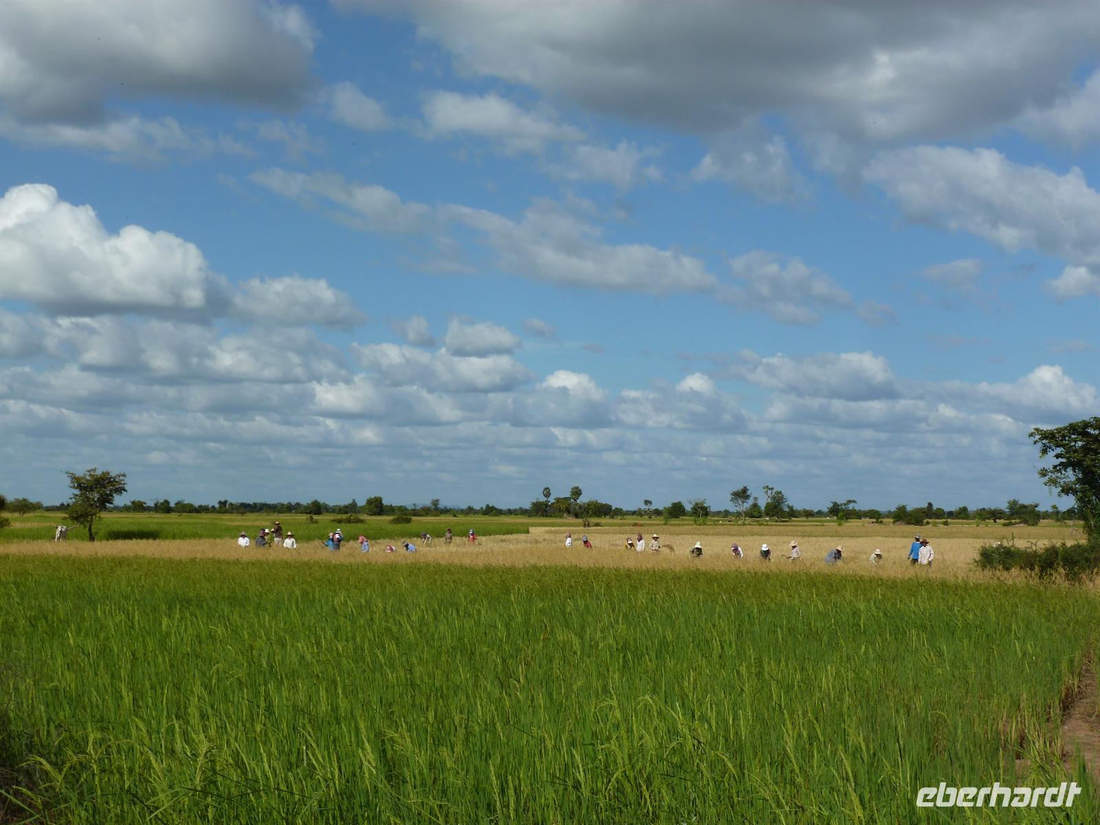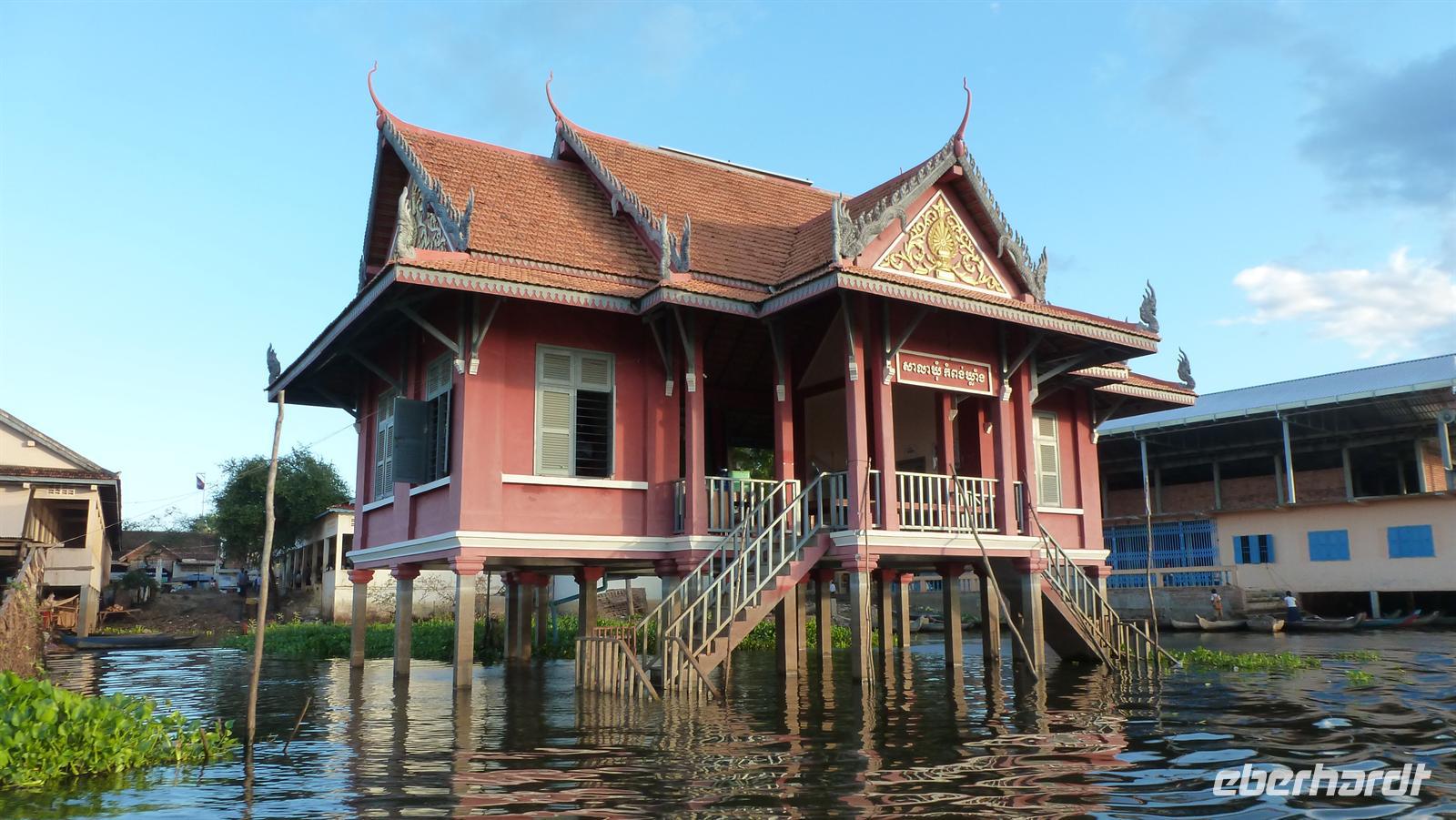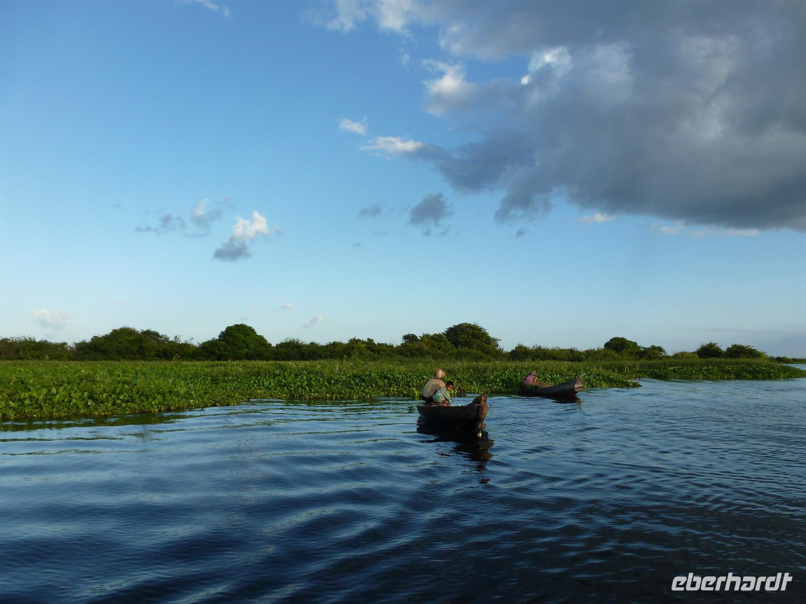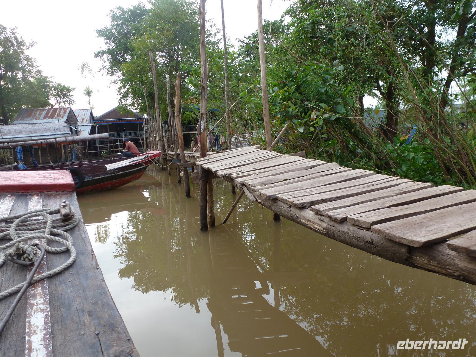 von Siem Reap. Unser Reiseleiter Min Thol erklärte uns dabei die verschiedenen Baustile der Häuser und Pagoden anhand von Zeichnungen, wir bekommen Infos zur vielfältigen Nutzung von Wasserhyazinthen, u.a. zur Seilproduktion, als Wasserfilter und für medizinische Belange und erfahren, das man aus den Samen des Kapokbaumes Seife herstellen kann. Wir treffen Dorfbewohner und bekommen einen unmittelbaren Eindruck von den teilweise sehr schwierigen Lebensumständen, mit denen sich die überwiegend arme Landbevölkerung auseinandersetzen muss. Aber wir sehen trotz allem auch Hoffnung, Lebenslust und den Willen, dieses Leben gut zu meistern. Mit diesen Eindrücken fahren wir zurück in die Stadt und bereiten uns auf unseren bevorstehenden Abflug vor. Ein stärkendes, spätes Mittagessen, ein paar Gespräche über die Erlebnisse der vergangenen Wochen und schon war die Zeit herum und unser Bus brachte uns zum Flughafen. Entgegen unserem verpatzten Hinflug funktionierte dieses Mal alles einwandfrei und wir landeten pünktlich, aber etwas müde am frühen Samstagmorgen wieder in der Heimat. Damit ging eine erlebnisreiche, wunderschöne Reise durch zwei faszinierende Länder der Indochinesischen Halbinsel zu Ende.