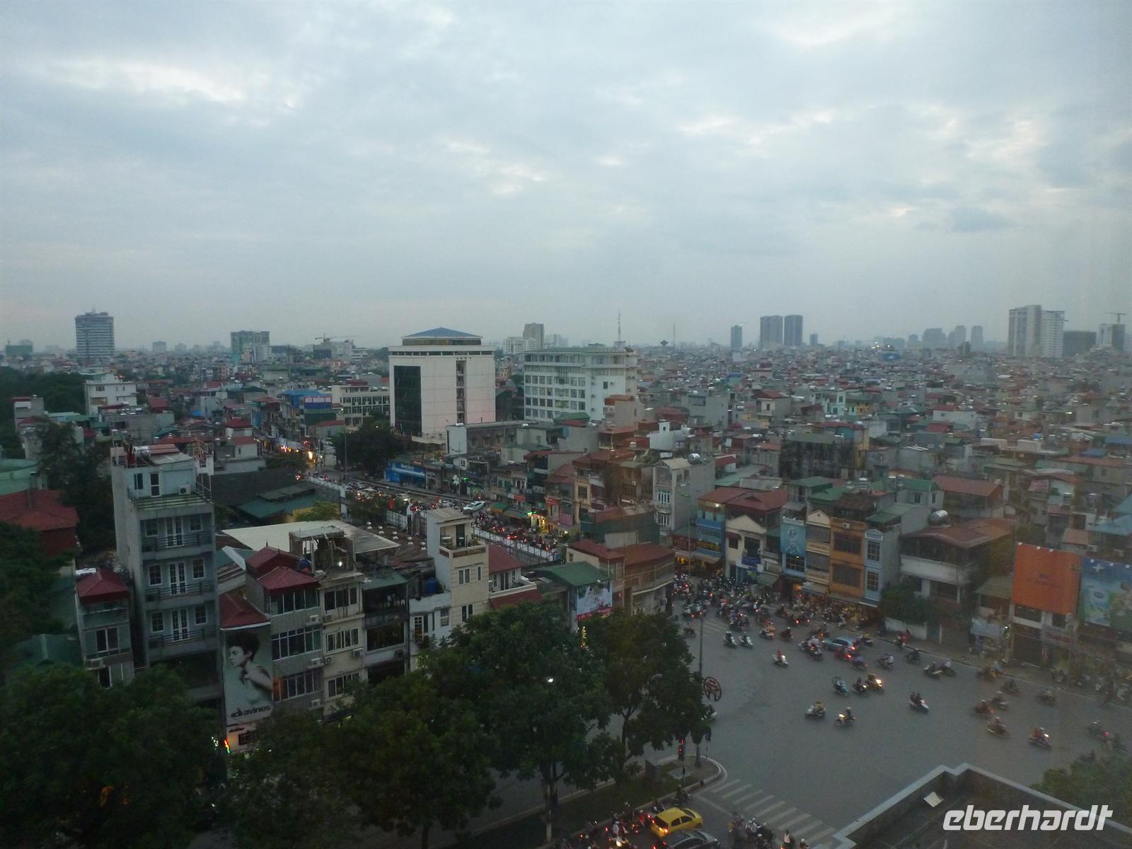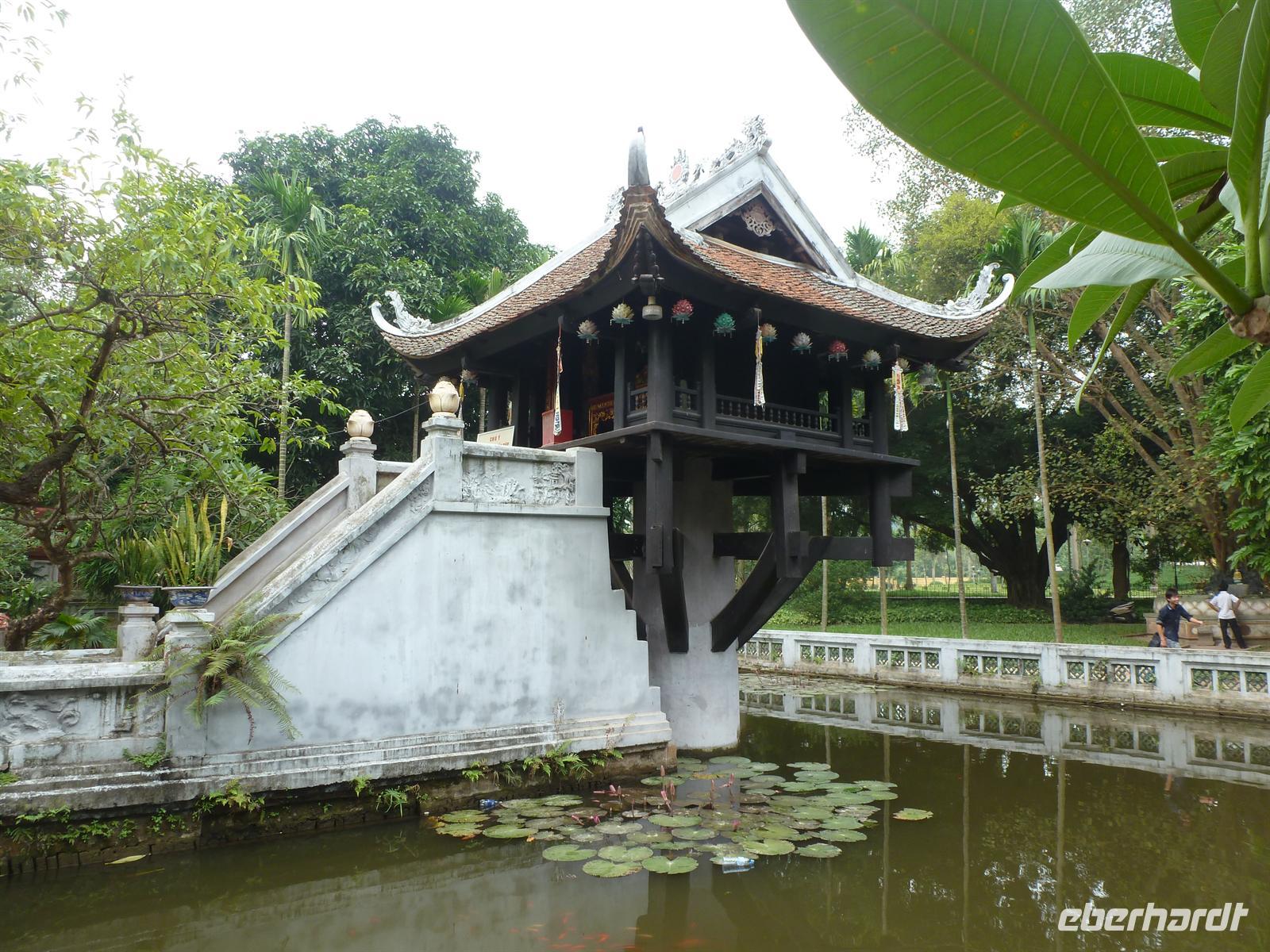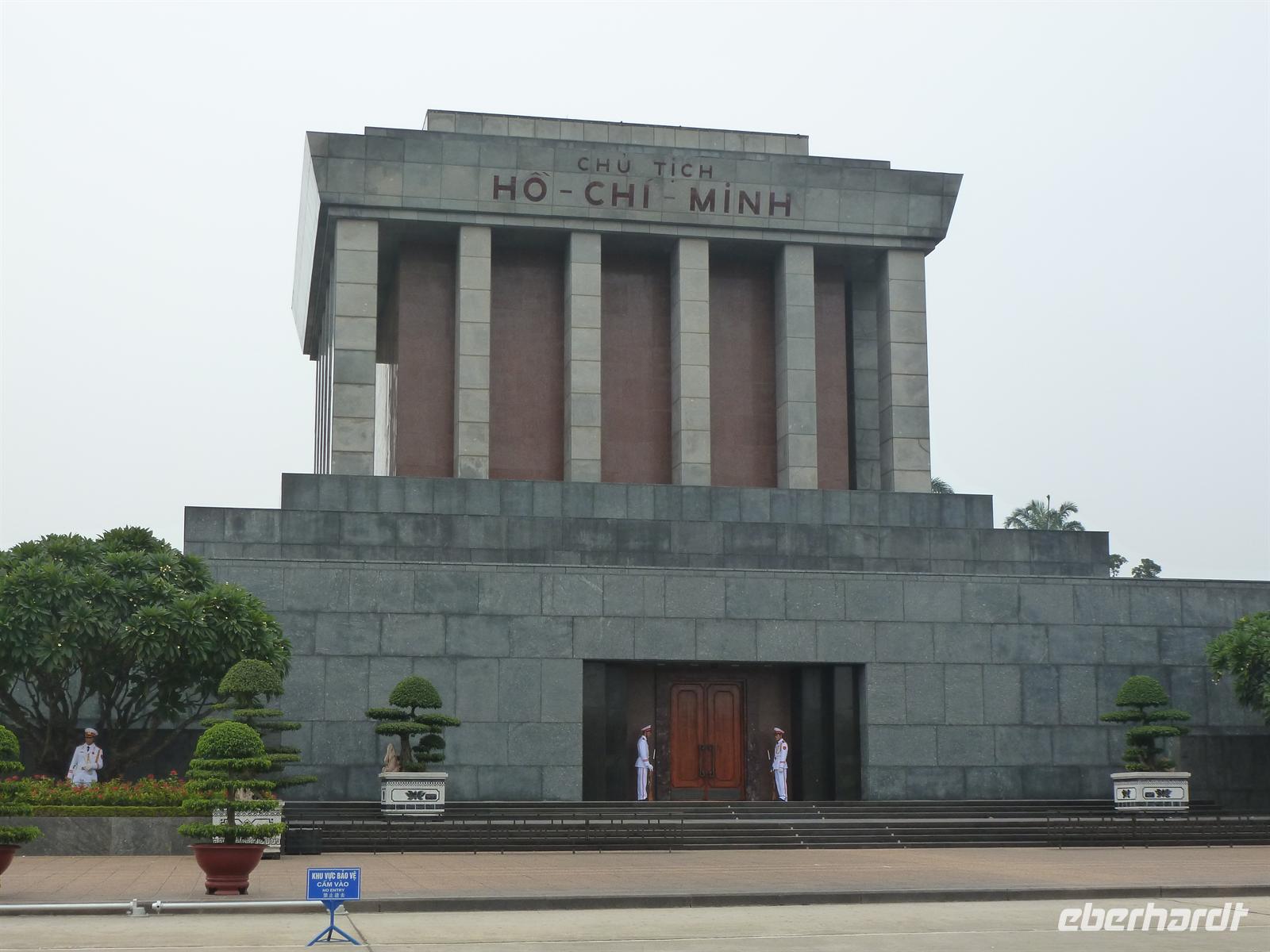 Wohlwissend, dass sich mit uns weitere dreihundert Passagiere an den Transfer- und Transit-Countern drängeln werden, um einen einigermaßen zeitnahen Anschlussflug zu erhalten, begaben wir uns auf dem schnellsten Weg zum Transit-Counter der Thai, wo uns ein Weiterflug um 17.35 Uhr angeboten wurde, was weitere 12 Stunden Wartezeit bedeutet hätte. Völlig unmöglich! Nachdem wir die freundliche Dame von Thai-Airways auf die in Kürze startende 07.50 Uhr Maschine hingewiesen hatten, stellte sie ohne Diskussionen die entsprechenden Bordkarten aus, was für uns insofern eine große Erleichterung bedeutete, da wir nun noch den größten Teil unseres Programmes in Hanoi an diesem Tage absolvieren konnten. Nach der Landung und einer kurzen Passkontrolle fiel uns ein weiterer Stein vom Herzen, denn auch unsere Koffer hatten, trotz diverser Umsortierungen auf dem langen Weg von Deutschland nach Vietnam, den Flieger an der richtigen Stelle verlassen. Unser vietnamesischer Reiseleiter, Herr Ot, erwartete uns schon am Ausgang und begrüßte uns herzlich nach durchstandener Odyssee. Wir fuhren anschließend zu unserem Hotel im Zentrum von Hanoi, um uns wenigstens etwas frisch zu machen von den Anstrengungen der letzten 24 Stunden, bevor wir mit unseren Erkundungen der vietnamesischen Hauptstadt begannen. Nachdem wir zwei weitere Mitglieder unserer kleinen Gruppe begrüßt hatten, die schon gestern aus Myanmar kommend in Hanoi gelandet waren, stürzten wir uns in das Getümmel und Gewimmel der 6-Millionen-Metropole am Roten Fluss. Die ersten Stationen unserer Besichtigungstour waren das Ho-Chi-Minh-Mausoleum und die berühmte Ein-Säulen-Pagode aus dem 11. Jahrhundert, eines der Wahrzeichen Hanois. Leider konnten wir das Wohnhaus des vietnamesischen Staatsgründers und den ehemaligen Präsidentenpalast nicht besuchen, da diese wegen einer Staatsdelegation für die Öffentlichkeit nicht zugänglich waren.