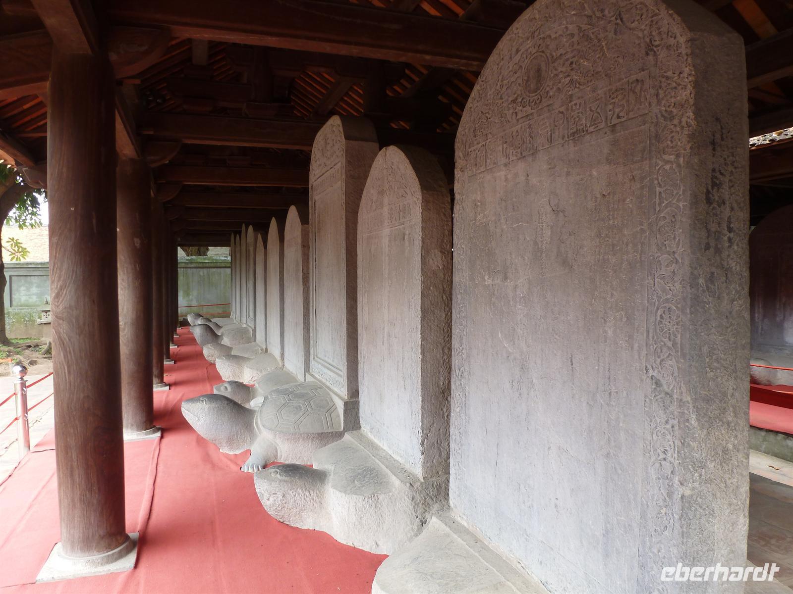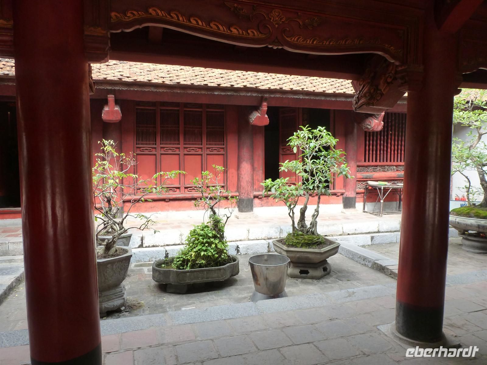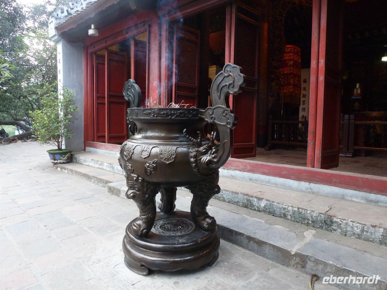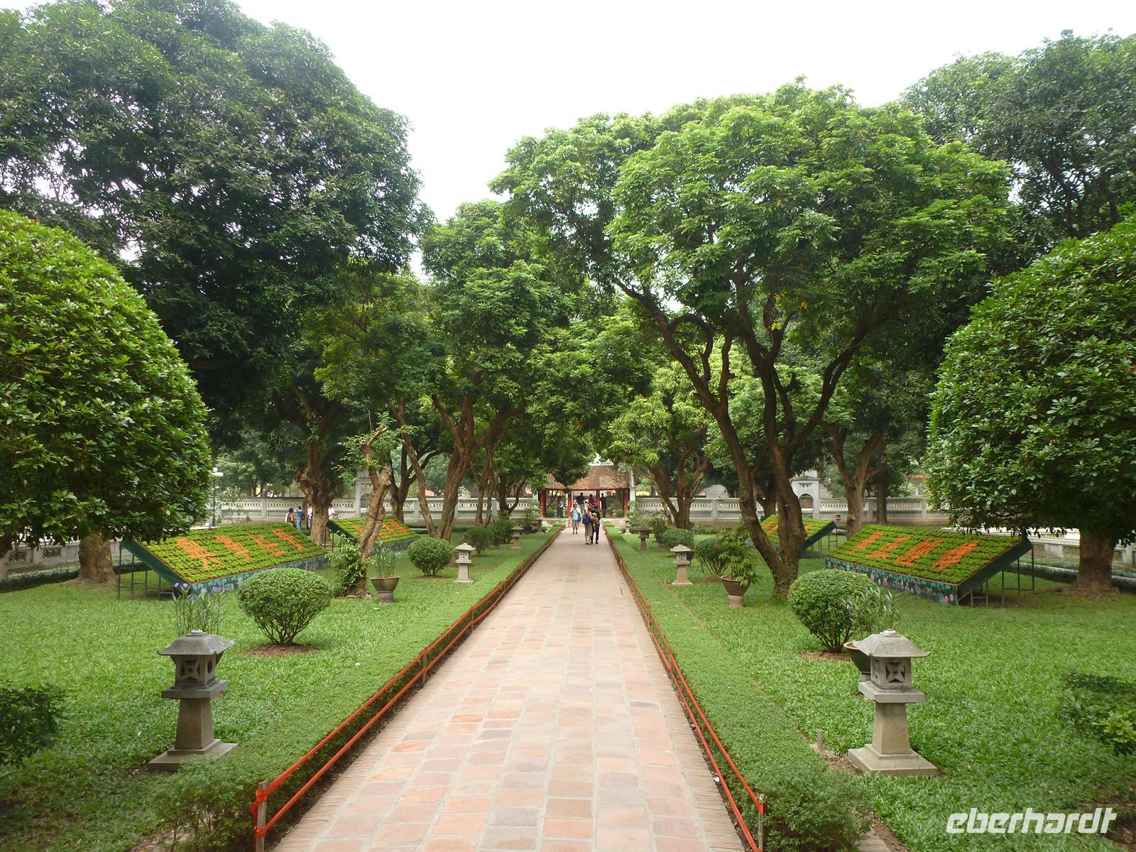 Deshalb fuhren wir weiter zum konfuzianischen Literaturtempel Van Mieu, in dem zu früheren Zeiten die Staatsbeamten ausgebildet wurden. Am Westsee besichtigten wir anschließend Tran Quoc, Hanois älteste Pagode, bevor wir uns in das chaotisch-lärmende, alle fünf Sinne betäubende, den meisten Regeln widersprechende und doch am Ende gut funktionierende Gewühl der Altstadtgassen wagten. Für alle asiatischen „Ersttäter“ der Kulturschock schlechthin, für Kenner und Liebhaber der pulsierende Atem einer völlig anders strukturierten Lebensweise. Dem scheinbaren Chaos entronnen, genossen wir den Besuch des friedlich im Hoan-Kiem-See gelegenen Jadeberg-Tempels, bevor es uns wieder auf die Straßen des Mopedmolochs Hanoi verschlug, um zu einer Aufführung des berühmten Wasserpuppen-Theaters zu fahren. Inmitten des Großstadtdschungels erwartete uns fast eine Oase der Ruhe, eingerahmt von der wunderbaren Kunst und Musik der Puppenspieler. Ein schönes, achtgängiges Abendessen in einem kleinen Gartenrestaurant rundete unseren ersten Tag auf vietnamesischen Boden ab, bevor wir alle ziemlich müde und voller neuer Eindrücke ins Bett gingen.