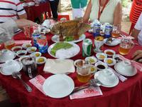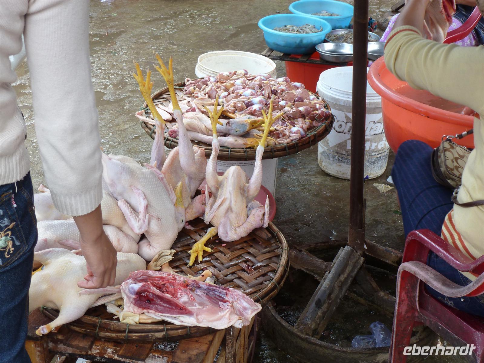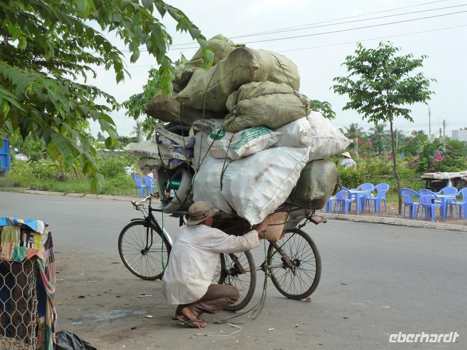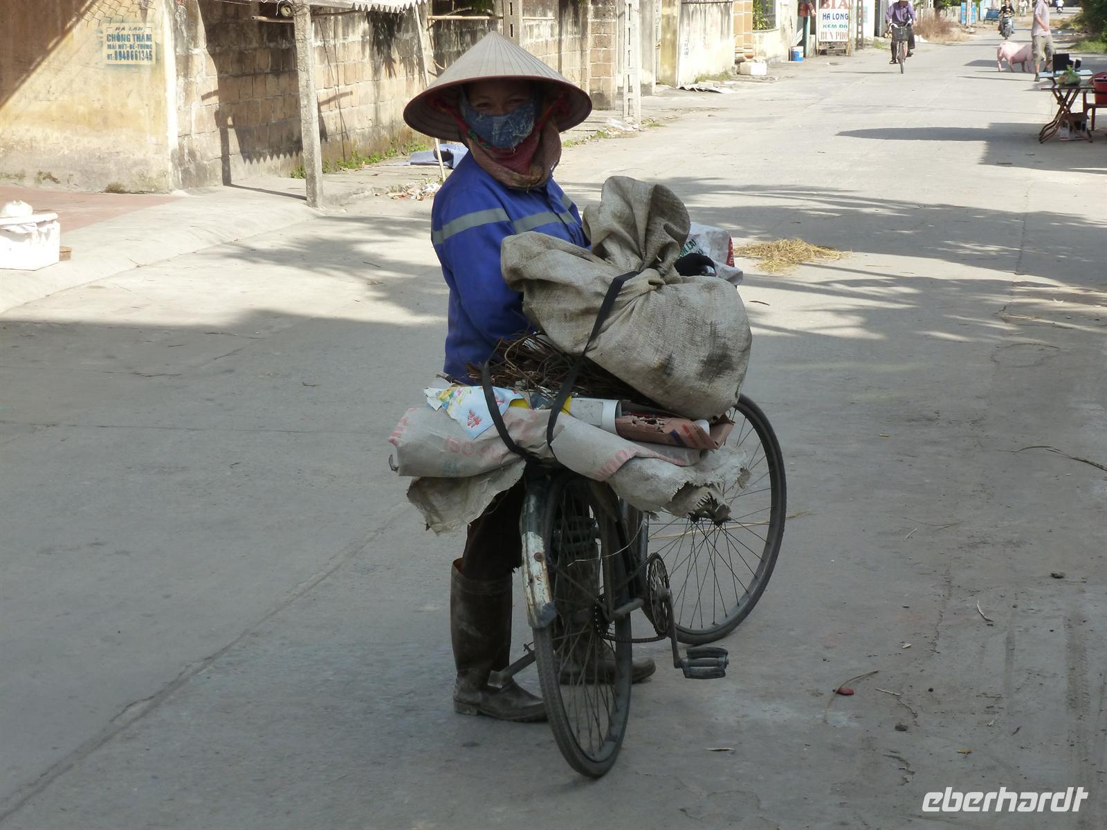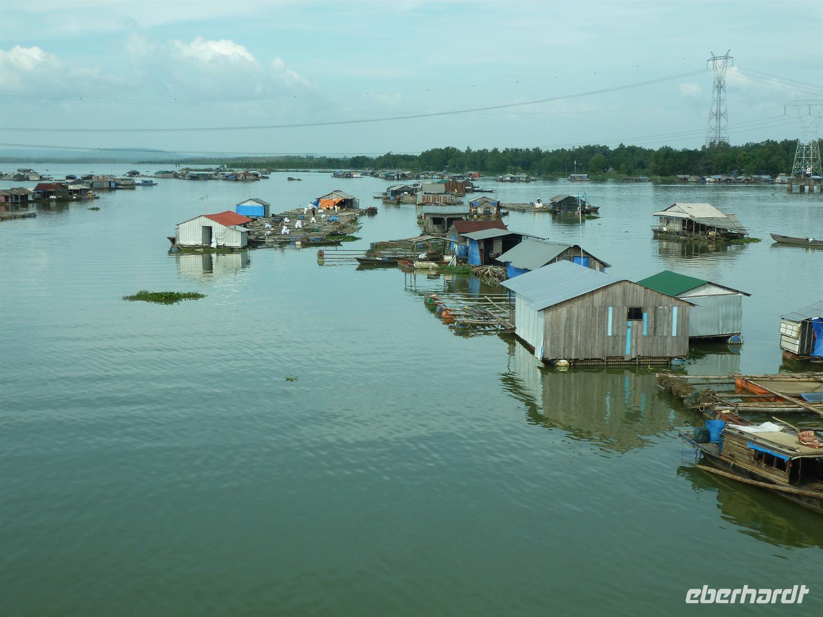 interessanten Beobachtungen hieß es „Volle Kraft voraus“ und wir verließen das Gewimmel der Händler und Käufer auf dem Wasser. Wir legten einen weiteren Stopp an einem „Straßenmarkt“ ein, um hier die gestern im Restaurant gegessenen Feldmäuse vor dem Garprozess zu bewundern. Nach soviel frühmorgendlichem Markttreiben ging es zurück zu unserer Anlegestelle in Can Tho. Von hier aus begann die letzte Fahrt auf vietnamesischen Straßen, welche uns nach Chau Doc führte, an die kambodschanische Grenze. Das Geschehen links und rechts der Straße bot relativ wenig Abwechslung, die wir dafür umso mehr in den Pausen genossen. Wir stoppten unter anderem an einem Hängematten-Cafe, was sehr lustig und darüber hinaus auch entspannend war. Zur Vervollständigung unserer kulinarischen Erlebnisse gab es für einige interessierte Gäste zur heutigen Mittagspause Hund zu essen. Gekocht, gebraten oder zur Wurst verarbeitet hat er nicht mal schlecht geschmeckt, wenn man erst einmal seine Vorurteile und Befindlichkeiten gegenüber dieser für Europäer unüblichen Speise überwunden hat. Derartig „gestärkt“ setzten wir unsere Fahrt nach Chau Doc fort und erreichten am frühen Nachmittag unser Hotel. Da uns noch Zeit bis zum Abendessen blieb und das Örtchen nicht wirklich viel sehenswertes zu bieten hat, unternahmen wir eine zusätzliche Bootsfahrt auf dem Mekong. Wir besichtigten eine Pangasius-Zucht bei einer schwimmenden Fischfarm und ein Cham-Dorf der einheimischen Minderheiten, welches über einen wackligen, sehr abenteuerlichen Bootssteg erreichbar war. Im Hotelrestaurant genossen wir dann noch ein letztes Abendessen in Vietnam, bevor sich jeder auf den morgigen Tag und unseren Grenzübertritt nach Kambodscha vorbereitete.