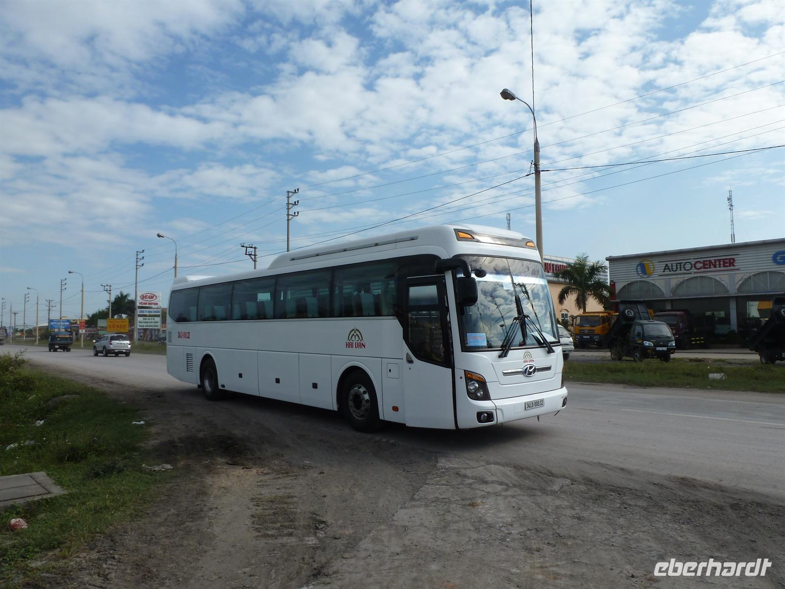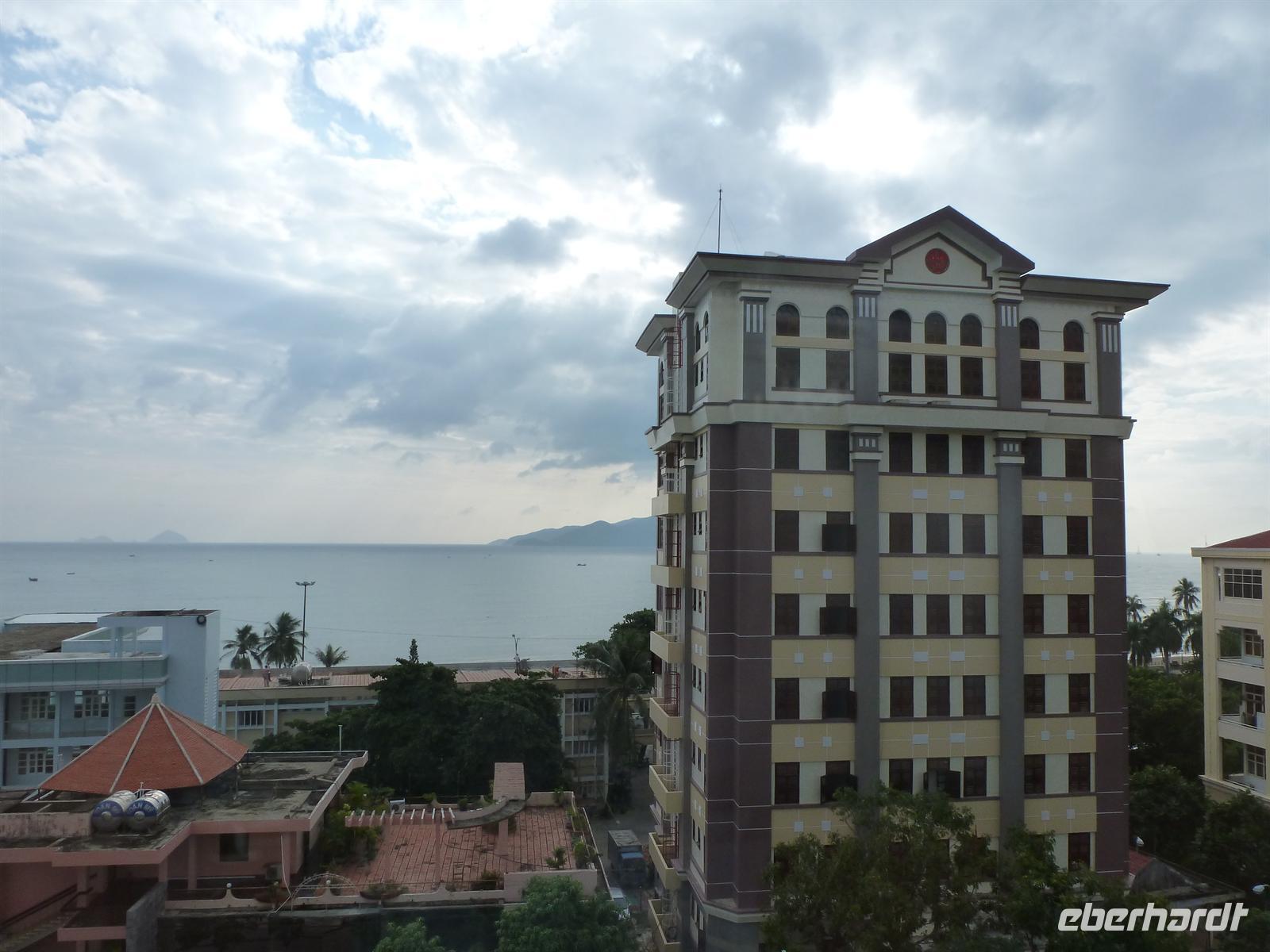 Und weiter ging unsere Tour Richtung Süden. Nach einem kräftigen Frühstück bestiegen wir unseren Bus, der uns die knapp dreißig Kilometer zum Flughafen nach Da Nang brachte. Hier gingen wir an Bord einer zweimotorigen ATR 72, welche wir nach einem etwas mehr als einstündigen Flug am Flughafen Nha Trang wieder verließen. Dieses Seebad ist eines der ältesten und schönsten an der langen vietnamesischen Küsten, wovon auch die ununterbrochene Bautätigkeit zeugt, die ich seit meinem ersten Besuch in dieser Stadt kennengelernt habe. Gegenüber der wunderschönen Uferpromenade entstehen seit mehreren Jahren etliche Hotelneubauten, die das Antlitz dieses Badeortes grundlegend verändern werden. Wie ich schon in der Vergangenheit geschrieben habe, erinnert mich die Szenerie mit den Hotels, Kneipen, Bars und Stränden immer mehr an die Urbanisationen unserer europäischen Mittelmeerbadeorte und Nha Trang entwickelt sich dabei so langsam zum Palma Südostasiens. Im positiven wie auch negativen Sinne. Nach dem Bezug unserer Zimmer im wunderschönen Michelia-Hotel fuhren wir zum Mittagessen ins Pho Bien, einem Freilichtrestaurant einfacher Prägung, um eine Kleinigkeit vor unserem Besichtigungsprogramm hier in Nha Trang zu essen. Die Essenbestellung und Lieferung ging mehr als unkonventionell vonstatten, was sich auch in der fehlenden Logik der Speisenfolge