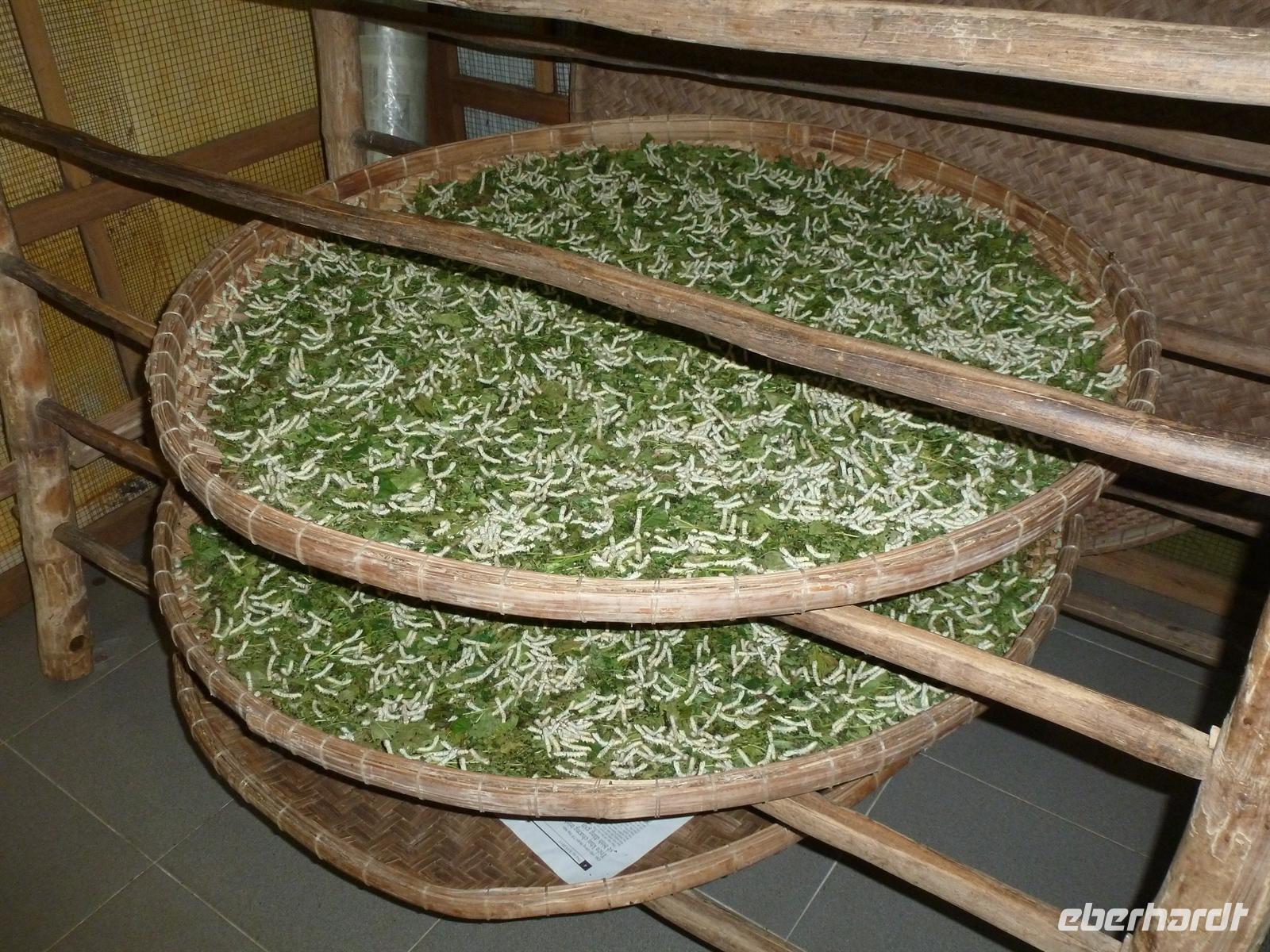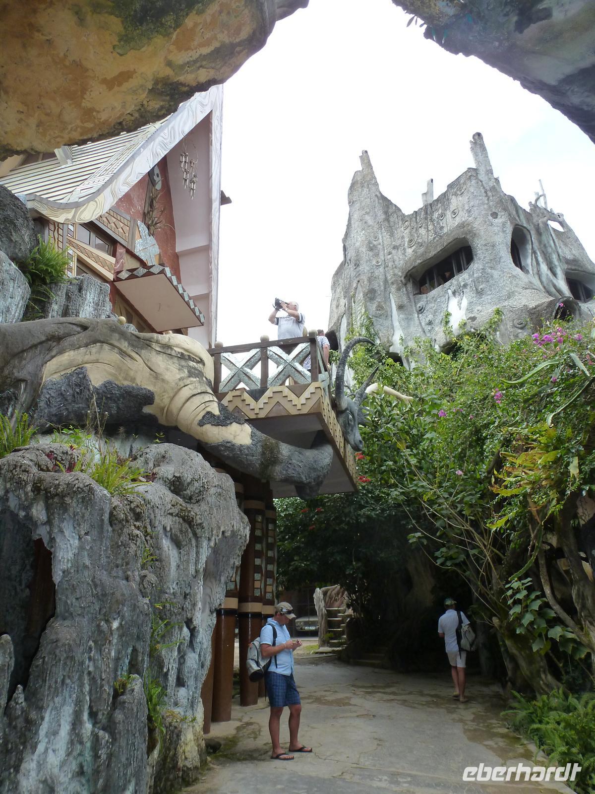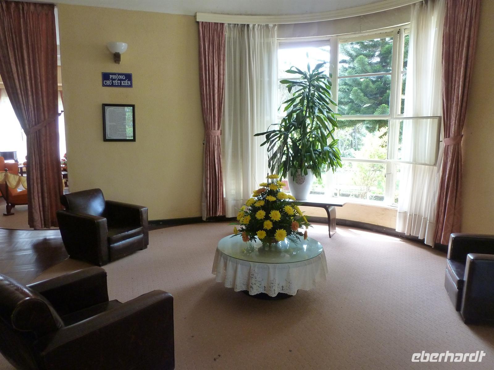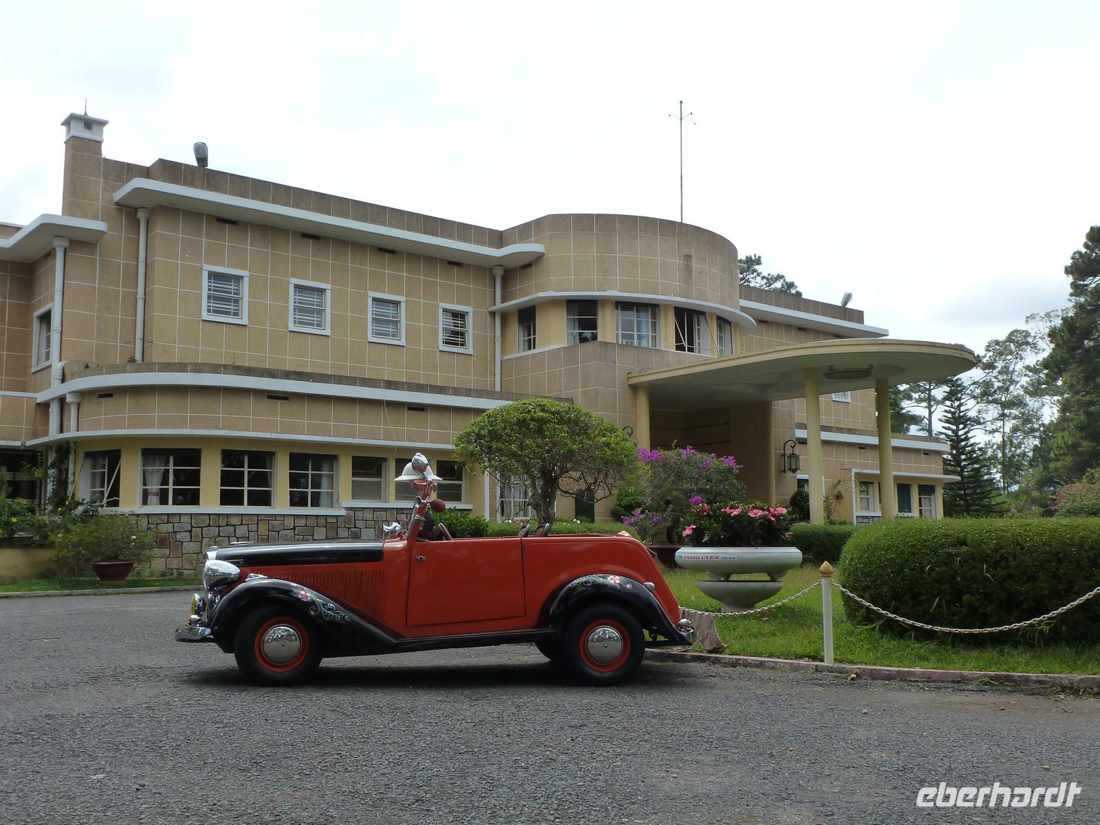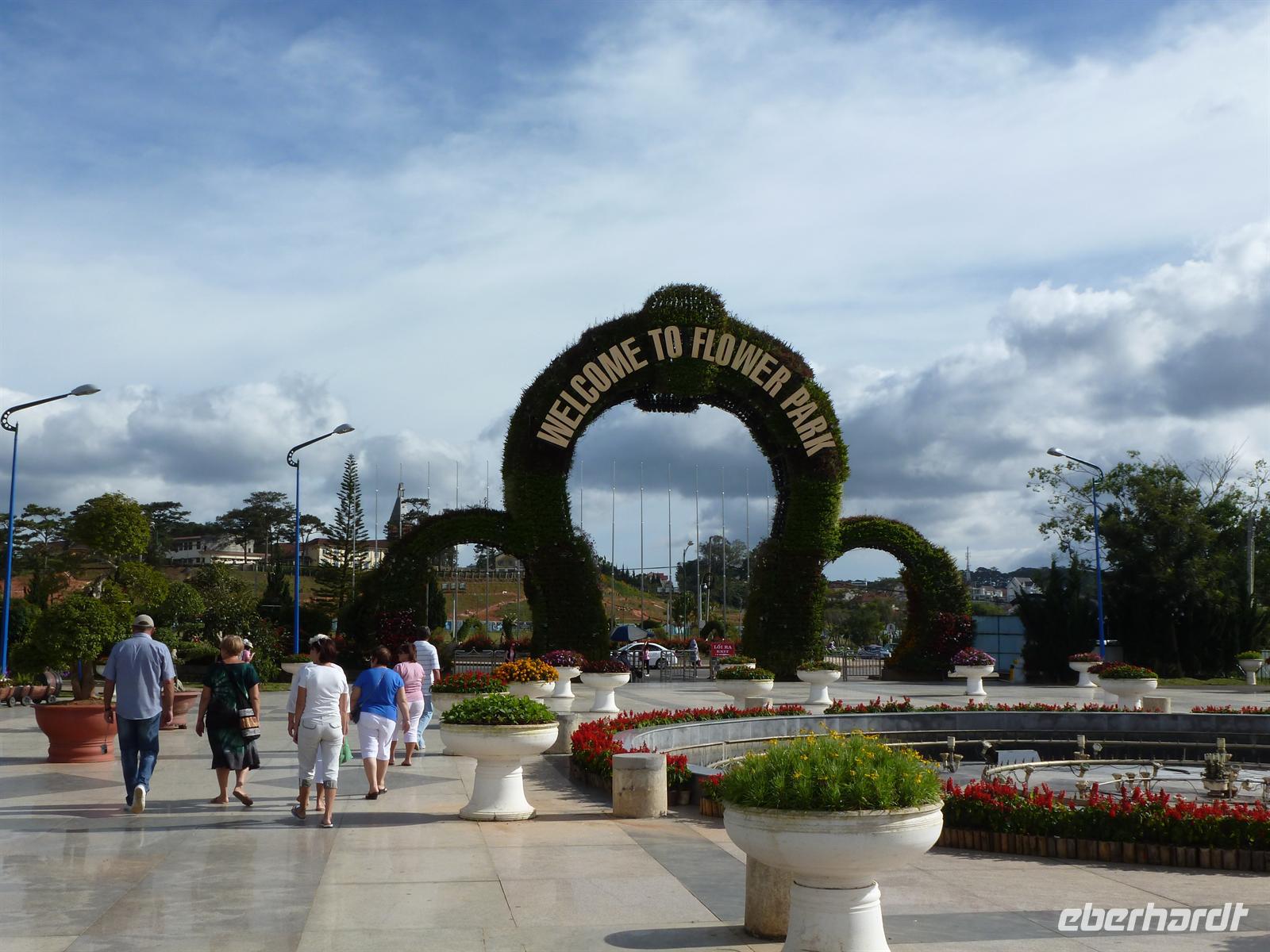 verzierten den Pagodenturm mit tausenden kleinen Keramiksteinchen, die aus buntem Porzellan durch schnödes zerdeppern gewonnen wurden. Und der ganze Schaffensprozess ging ohne Vorlage oder Zeichnung vonstatten, einzig Augenmaß und künstlerische Begabung waren vonnöten. Anschließend fuhren wir mit unserem Bus zum ehemaligen Sommerpalast des letzten vietnamesischen Kaisers, Bao Dai, der auf einer Anhöhe über der Stadt im Bauhaus bzw. Art-Deco-Stil beheimatet. Das eher funktional daherkommende Gebäude aus den dreißiger Jahren liegt in einer weitläufigen Gartenanalage und wirkt trotz oder gerade wegen der Schnörkellosigkeit seiner Inneneinrichtung zeitlos modern. Nach dem Besuch der ehemals kaiserlichen Gemächer wendeten wir uns nun einem ganz anders gearteten Gebäude zu, dem sogenannten Crazy House, dem verrückten Haus, gestaltet von der vietnamesischen Präsidententochter und Architektin Hang Nga. Das Gebäude wurde als Phantasieobjekt ohne Ecken und Kanten aus Beton gestaltet und ist ein steingewordener Kindheitstraum, ein willkürliches ineinander übergehen bunter Wohnhöhlen, verbunden durch abenteuerlich geschwungene Treppen und Pfade in lichten Höhen, ein wenig wie Hundertwasser unter dem Einfluss von Rauschmitteln. Nach einem kleinen Mittagessen ging es zur letzten Station unserer heutigen Tour, dem Botanischen Garten von Da Lat. Inmitten einer großen, gepflegten Anlage können wir viele einheimische Pflanzen und Bäume in voller Blüte bewundern und am schön angelegten See auch ein wenig die Seele baumeln lassen. Der Heimweg führt uns nochmal am großen Markt von Da Lat vorbei. Unser heutiges Abendessen genossen wir im „Art Cafe“, ein kleines, gemütliches Restaurant, betrieben von einem Künstler, der mit seinen „Fingern“ malt und der uns an seiner Kunst vor dem Dessert teilhaben lies, indem er von jedem die Initialen zu Papier brachte und uns dies zum Geschenk machte. Das Essen war auch sehr gut und lecker, in einer etwas anderen geschmacklichen Zusammenstellung als an den vorhergehenden Abenden, was zur Abwechslung beigetragen hat.
