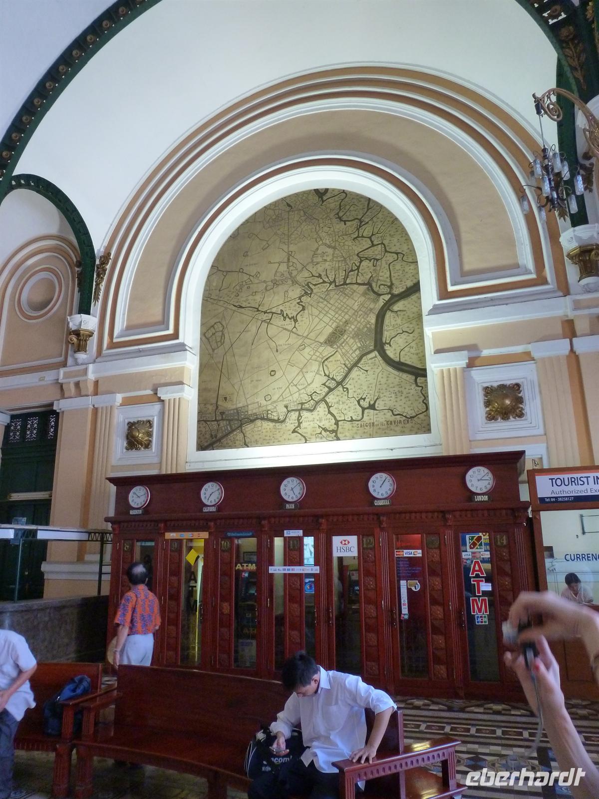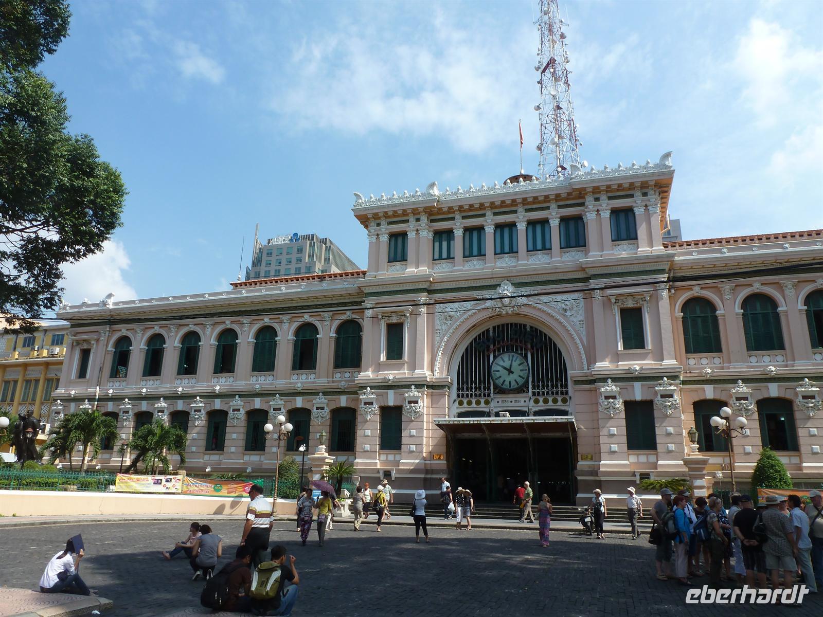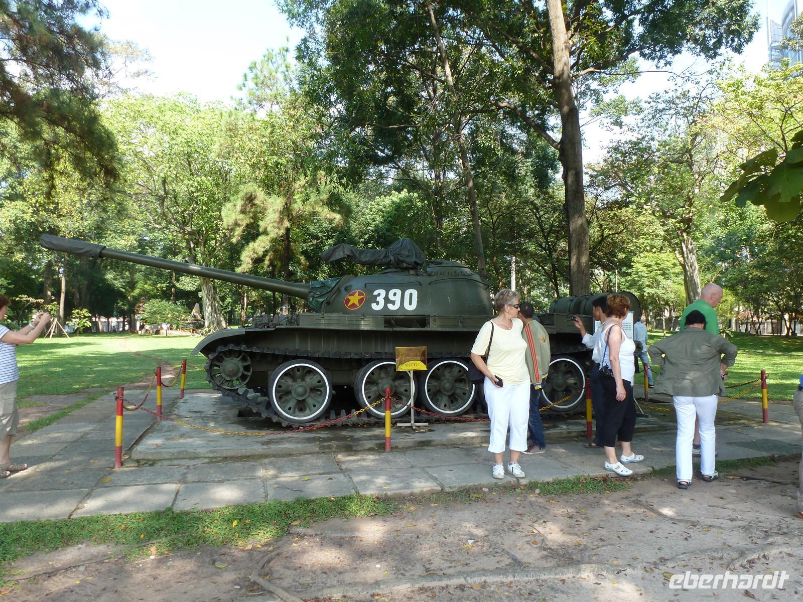 Nachdem wir uns am sehr reichhaltigen und leckeren Frühstücksbuffet gestärkt hatten, begannen wir mit unserer Stadtrundfahrt in Saigon. Unser erster Besichtigungspunkt an diesem Morgen war der ehemalige Präsidentenpalast, der am 30.04.1975 von den Nordvietnamesischen Streitkräften und ihrer südvietnamesischen Verbündeten eingenommen wurde und damit praktisch das Ende des Vietnamkrieges einherging. Anschließend besichtigten wir die Kathedrale Notre Dame und das architektonisch wunderschöne Hauptpostamt von Saigon. Bevor wir in den chinesischen Stadtteil Cho Lon weiterfuhren, besuchten wir das Kriegsmuseum, welches sich mit erschütternden Bildern, Fakten und zahlreichem Kriegsgerät mit den Gräuel des Vietnamkrieges auseinandersetzt. In Cho Lon angekommen, besichtigten wir zuerst den Thien Hau Tempel, bevor es auf dem größten Markt in Chinatown, dem Ben Than Markt, so manches zu entdecken, erfühlen und beschnuppern gab. Eine für uns Europäer fast unerträgliche Hitze, 35 Grad bei fast 90 Prozent Luftfeuchtigkeit, machten jede weitere Aktivität zur Tortur, so das wir nach dem Mittag im gut klimatisierten