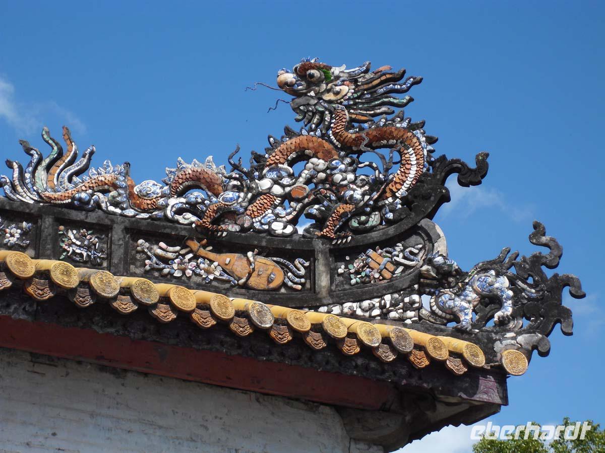 Unsere erste Bootsfahrt steht auf dem Plan. Wir besichtigen die Tien Mu Pagode, aus dem Jahr 1601 die älteste Pagode Hues. Und nun der Kaiserpalast. Vieles ist hier zerstört worden, doch es wird an allen Ecken und Enden restauriert. Was zu sehen ist, ist dennoch sehr prächtig. Nicht umsonst sdteht das Areal auf der Liste des Weltkulturerbes. Viele von uns schwitzen das erste mal.....die Temperaturen steigen. Unser Hotel hat einen schönen Pool, den viele in der freien Zeit am Nachmittag nutzen. Wir gehen später über den Dong Ba Markt, einem der bekanntesten in Zentralvietnam. Die Märkte sind der Mittelpunkt aller Städte in Vietnam und hier pulsiert das Leben. Fisch, Obst und Gemüse, Schmuck- und Kleidungsgeschäfte konkurrieren mit unzähligen Garküchen um die Gunst der Kunden. Abends erleben wir in einem halboffenen Restaurant einen sehr entspannten Abend mit traditioneller Musik in sehr romantischem Ambiente.
