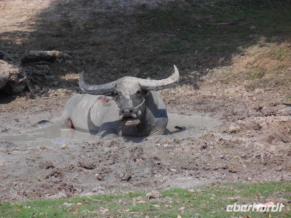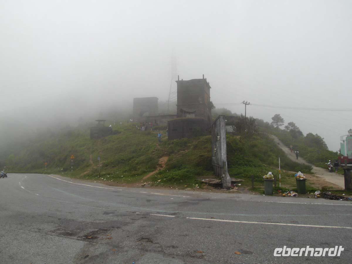 Wir besichtigen nun die riesige Grabanlage von Kaiser Khai Dinh, des letzten Kaisers, der nur noch eine Marionette der Franzosen war. Unverkennbar sind die europäischen Einflüsse der grandiosen Anlage. Nun treten wir die Fahrt über den Wolkenpass an. Nun endlich gibt es die Wasserbüffel direkt bei der Arbeit im Reisfeld zu sehen. Stimmungsvolle Bilder können wir beim Stop an einem Fischerdorf in der Nähe von Phu Loc machen. Der Wolkenpass macht seinem Namen alle Ehre. Aussicht keine, statt dessen viele Souvenierverkäuferinnen. Weitere Photostops legen wir an einer Destille für Eukalyptusöl, vor der Stadtsilhouette von Da Nang, und in einer Steinmetzfabrik direkt unterhalb der Marmorberge ein.