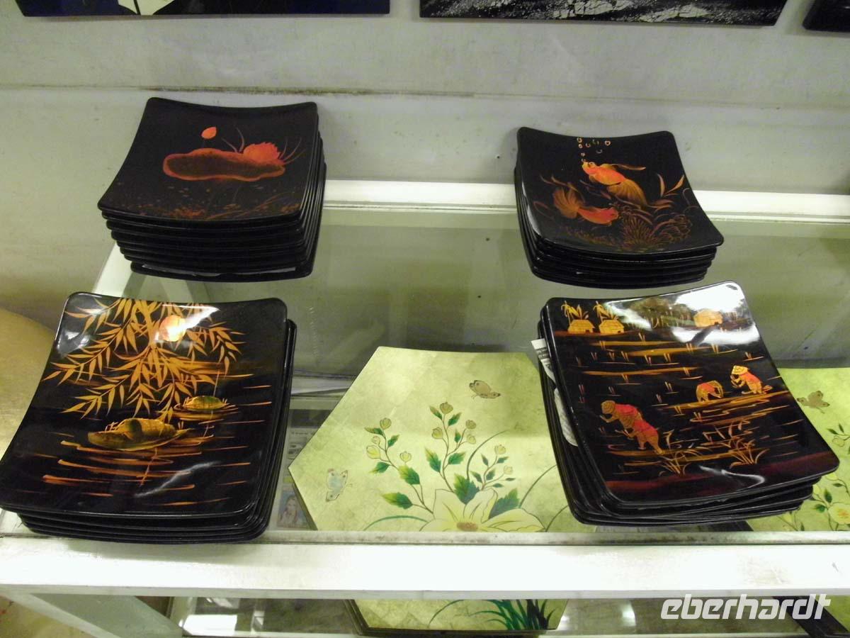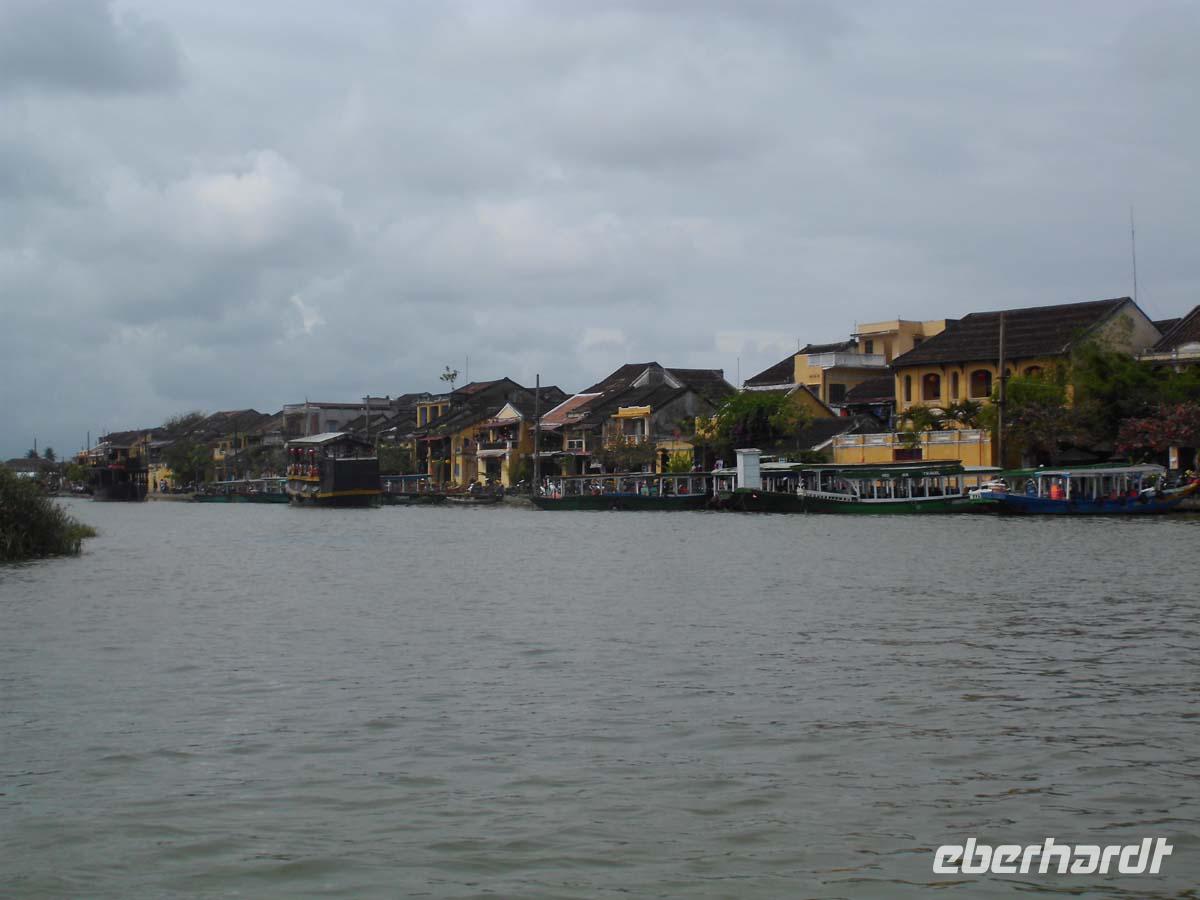 Weltkulturerbe Hoi An. Hier stimmt einfach alles. Hotel direkt neben der historischen Altstadt, die wir durchstreifen nebst japanischer Brücke aus dem 16 Jh. und dem Besuch eines der vielen historischen Häuser. Ich gebe mal ein paar unbekannte Früchte aus. Mangostanen diesmal, Rambutan beim nächsten mal. Wir besichtigen auch eine Seidenproduktionsstätte. Hier kann man auch schneidern lassen. Nebenan werden Holzschnitzereien und Seidenlampignons hergestellt. Eine Bootsfahrt auf dem Hoai Fluss führt uns in das Handwerkerdorf Kim Long, wo wir Holzschnitzereien, eine Reisschnapsdestille und Intarsienarbeiten begutachten. Nach dem Mittagessen können wir uns von der Arbeit von Töpfern mit Dorf Thanh Ha überzeugen. Hoi An hat von allen Destinationen auf dieser langen Reise das geschlossenste historische Stadtbild mit Häusern aus dem 16. -18. Jh. Und als wir nach dem Abendessen direkt am Fluss durch die Altstadt zum Hotel gehen, sind die Strassen über und über durch die Seidenlampignons illuminiert. Ein nochmals alle beeindruckendes Panorama.