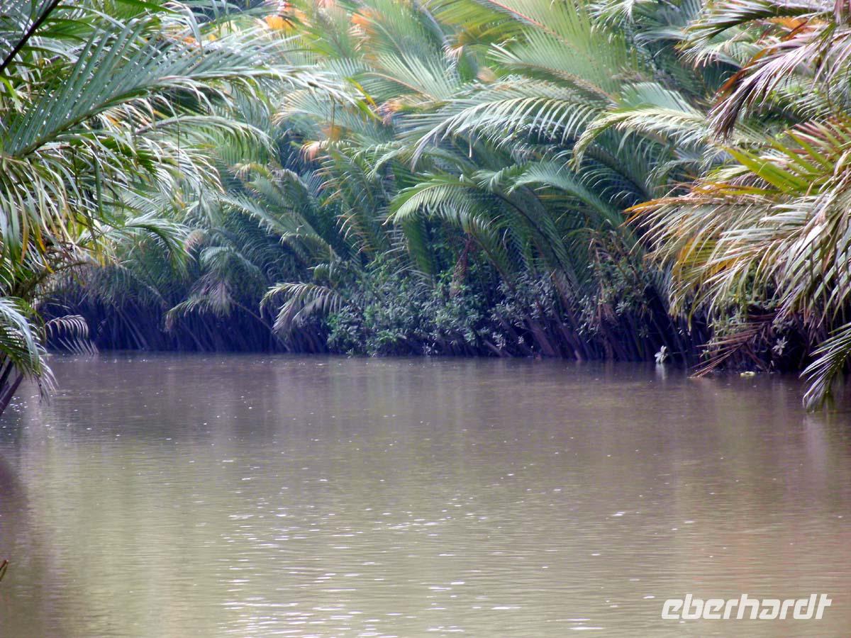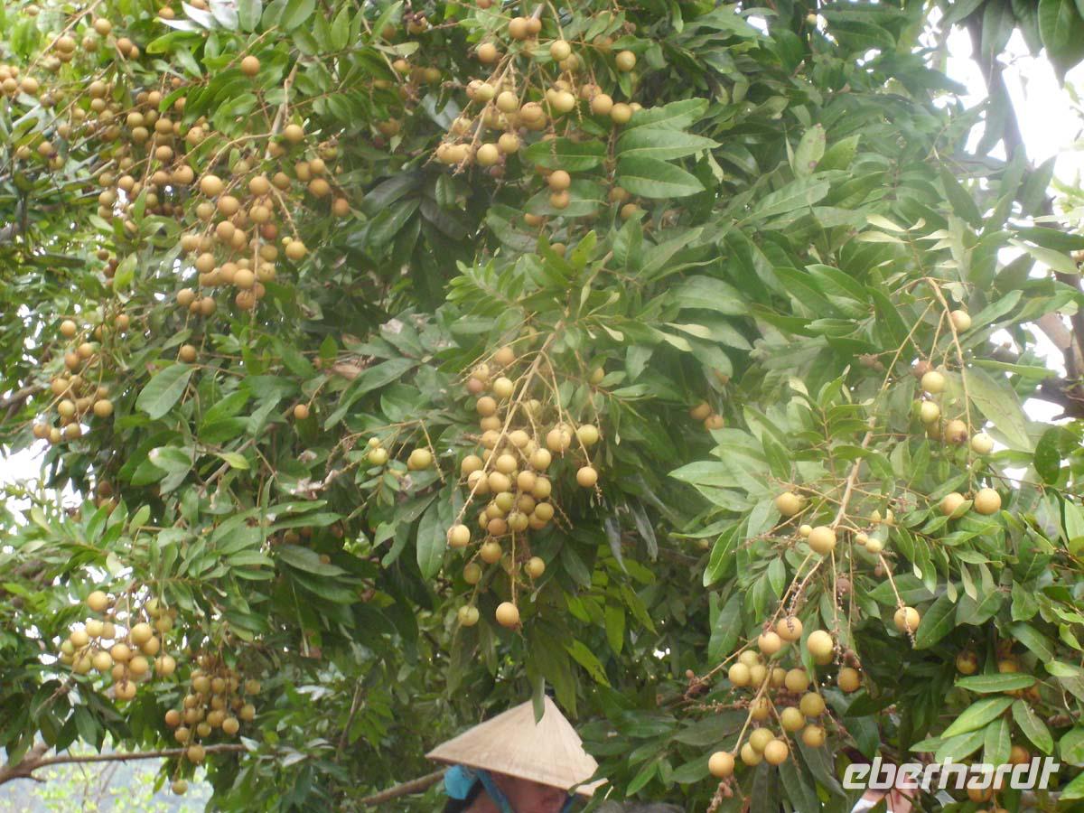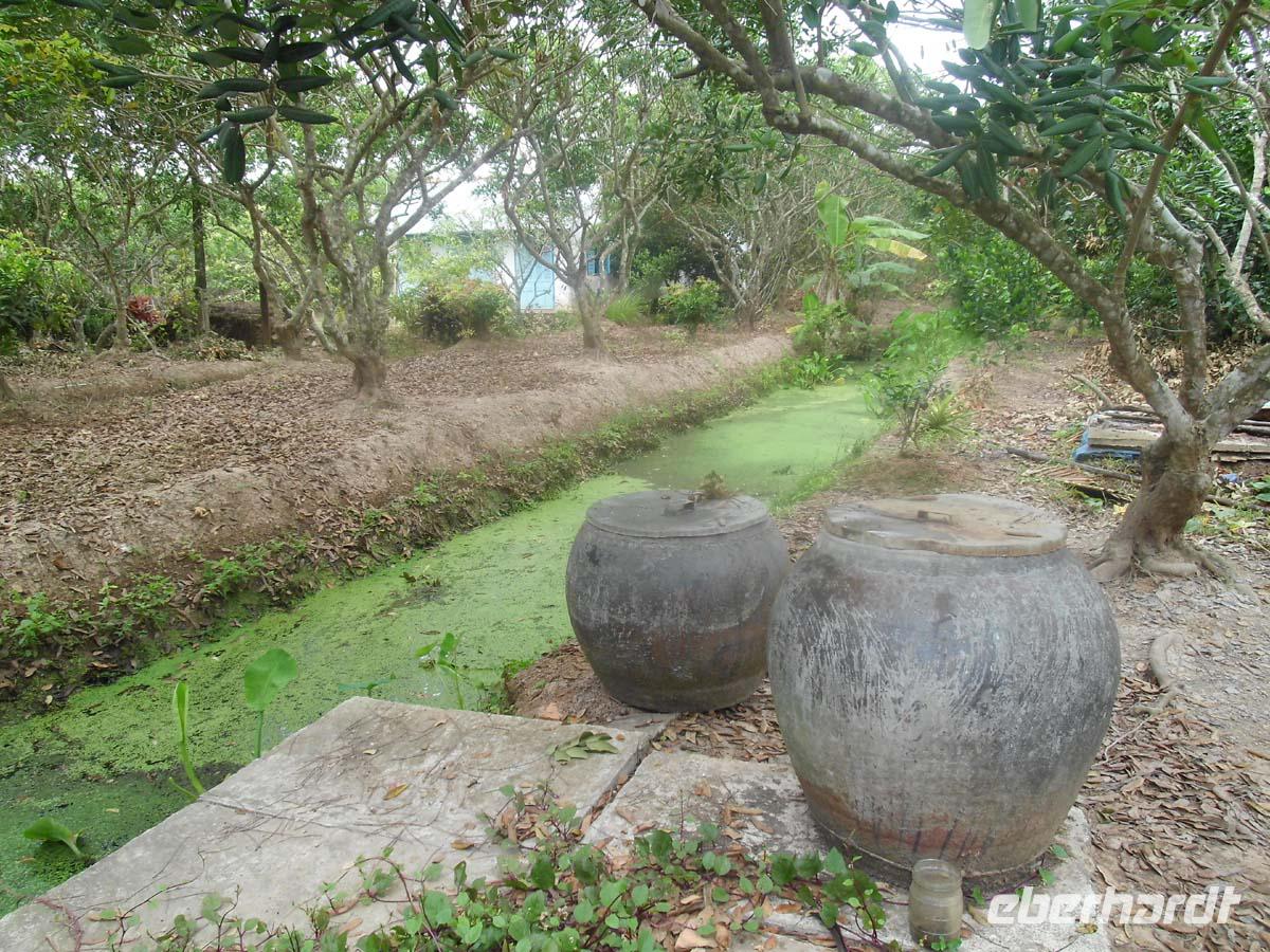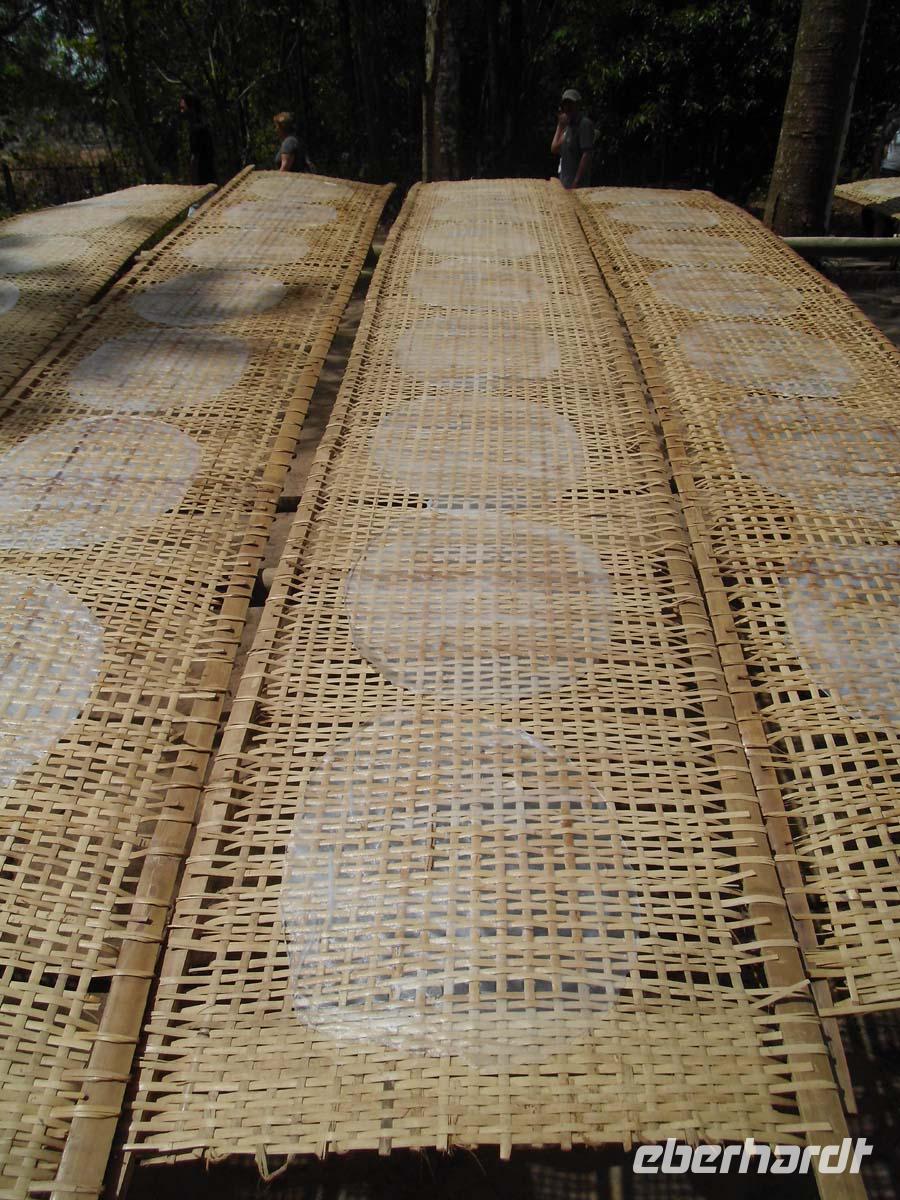 Unser Bus bringt uns zunächst nach My Tho, wo sich der Mekong schon in etliche Hauptarme aufgespalten hat. Hier besteigen wir ein Boot, mit welchem wir zunächst ein Obstbauerndorf erreichen, das wir streckenweise auf Pferdekutschen durchqueren. Viele Früchte, die hier an den Bäumen hängen kennen wir nun schon, so auch die wohlschmeckenden Drachenaugenfrüchte. Wir steigen nochmals um in winzige Boote und erreichen über enge Flussarme ein Dorf, wo Kokosbonbons produziert werden. Aber nicht nur die, auch Stinkfruchtbonbons kann man probieren. Wieder auf dem großen Boot erreichen wir die Phönixinsel vor My Tho, wo wir bei einer Bauerfamilie zum Elefantenohrfischessen zu Gast sind. Hinterher kann man zudem den großen Garten besichtigen, der nach Anlage und Bepflanzung nichts mit unseren gemein hat. Nun reisen wir nach Can Tho. Nachdem wir hier unsere Zimmer bezogen haben gehen wir in einem Restaurant zu Abend essen, indem man u. a. Schlange und Feldmaus bekommen kann. Die Maus schmeckt gar nicht schlecht. Heute lassen wir uns auch den Wein schmecken, den uns die Agentur zukommen lassen hat. Für ein wenig Korkengeld kann man im Restaurant die Gläser dazu bekommen.