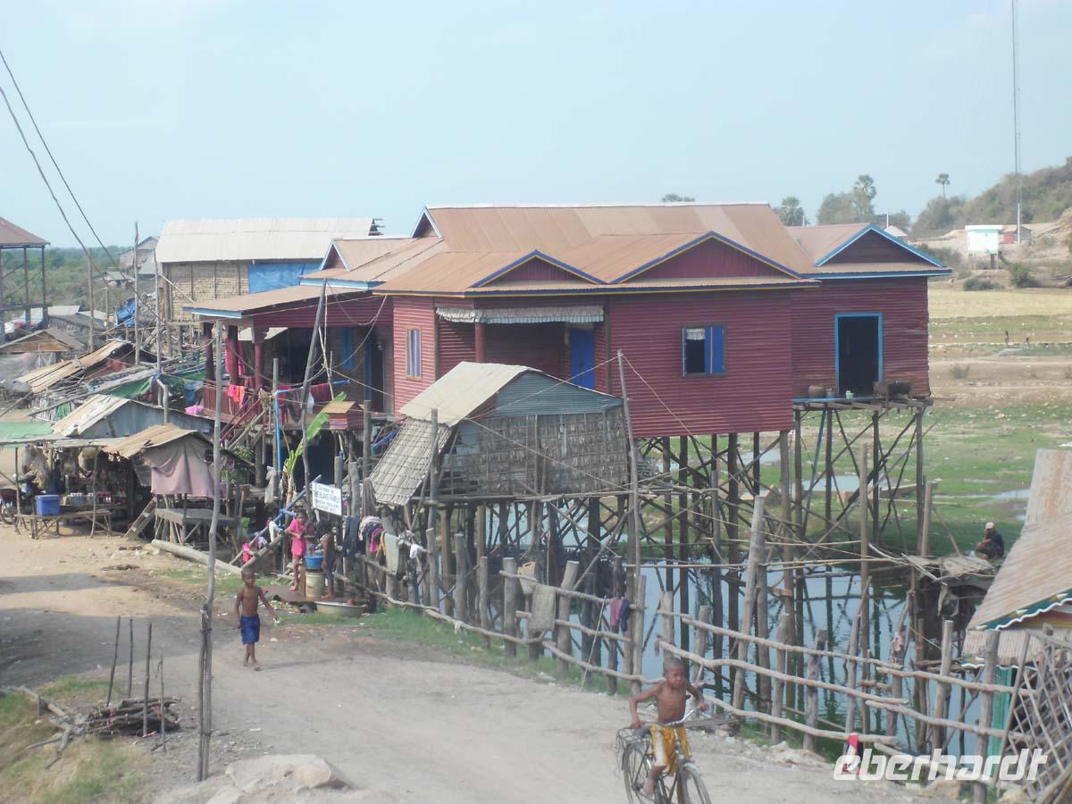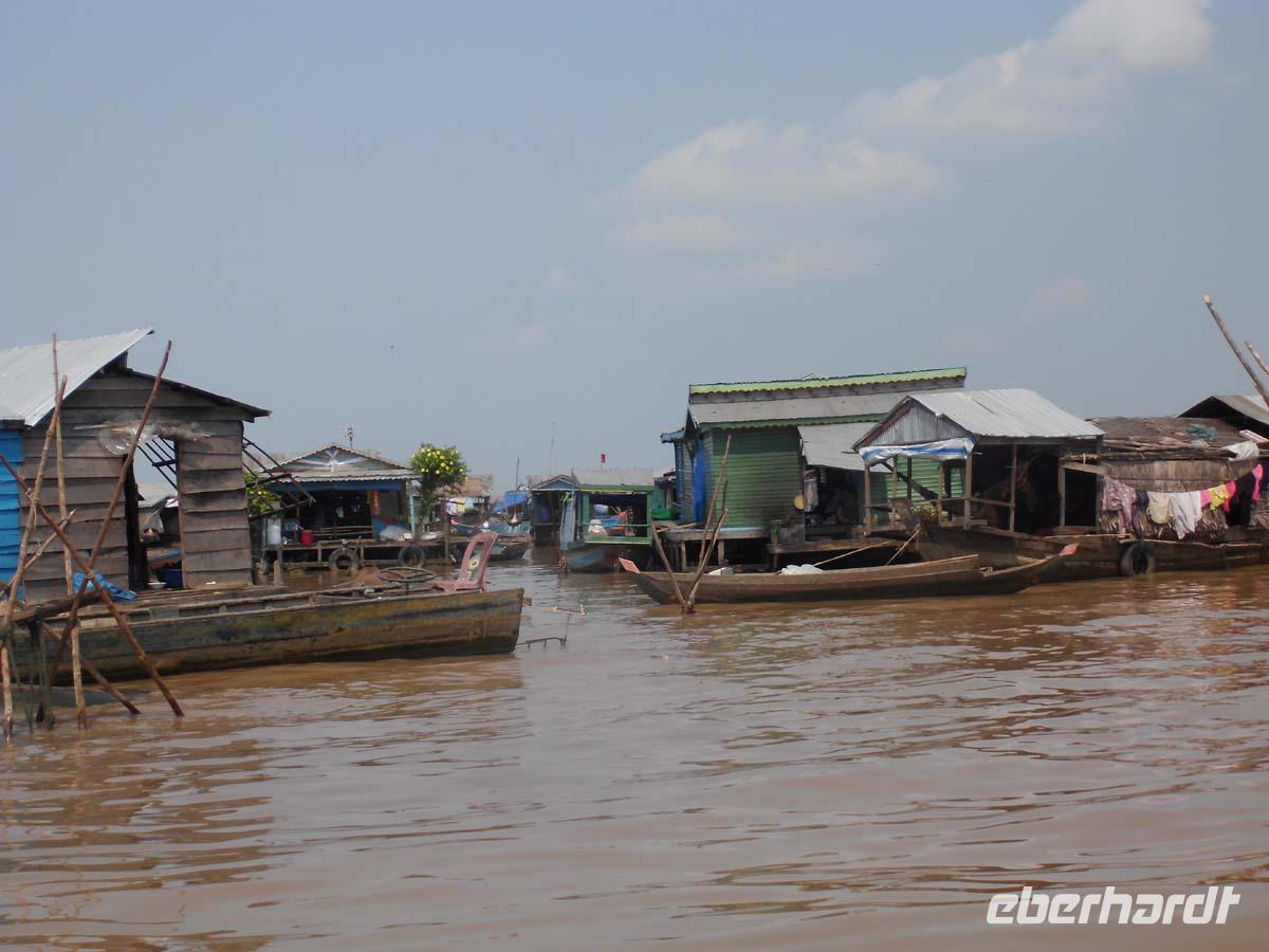 Unser letzter Tag in Ostasien beginnt nach dem Frühstück mit einer Bootsfahrt auf dem Tonle Sap See. Stelzenhäuser säumen die in der Regenzeit überfluteten Flächen an den Strassen. Fischer sind überall zu sehen, obwohl die Wassertiefe in der Trockenzeit nur 70 cm beträgt. In einem schwimmenden Dorf legen wir eine kurze Rast ein, bevor ich die ersten Gäste zum Flughafen begleite. Während dessen sind die anderen Gäste zum Mittag. Gegen Abend besteigen wir den Flieger nach Bangkok, wo wir pünktlich landen und auch nicht weit laufen müssen. Wir landen wohlbehalten in Frankfurt, wo sich unsere Wege zu den Zieldestinationen trennen. Drei Wochen waren wir zusammen unterwegs, haben die unterschiedlichsten Landschaften und Denkmale und Lebenswiesen gesehen, sind im Flieger, auf Booten, Schiffen und im Bus Tausende von Kilometern gereist und werden noch lange von den mannigfaltigen Eindrücken dieser hervorragenden und erlebnisreichen Reisen zehren.