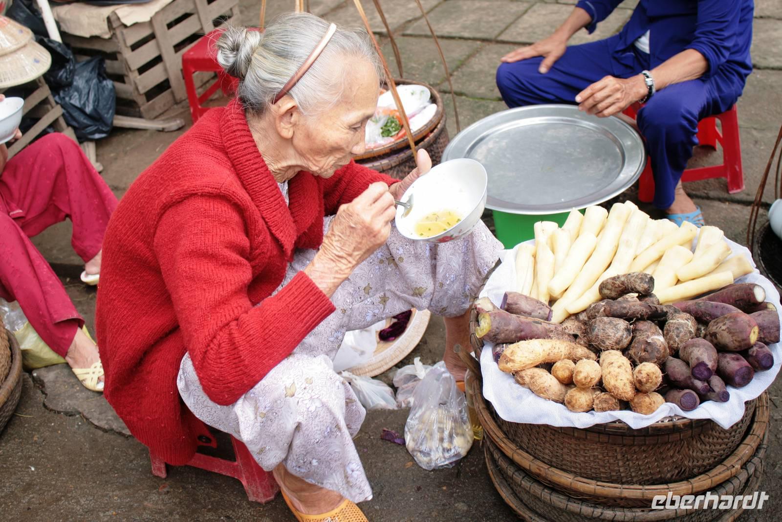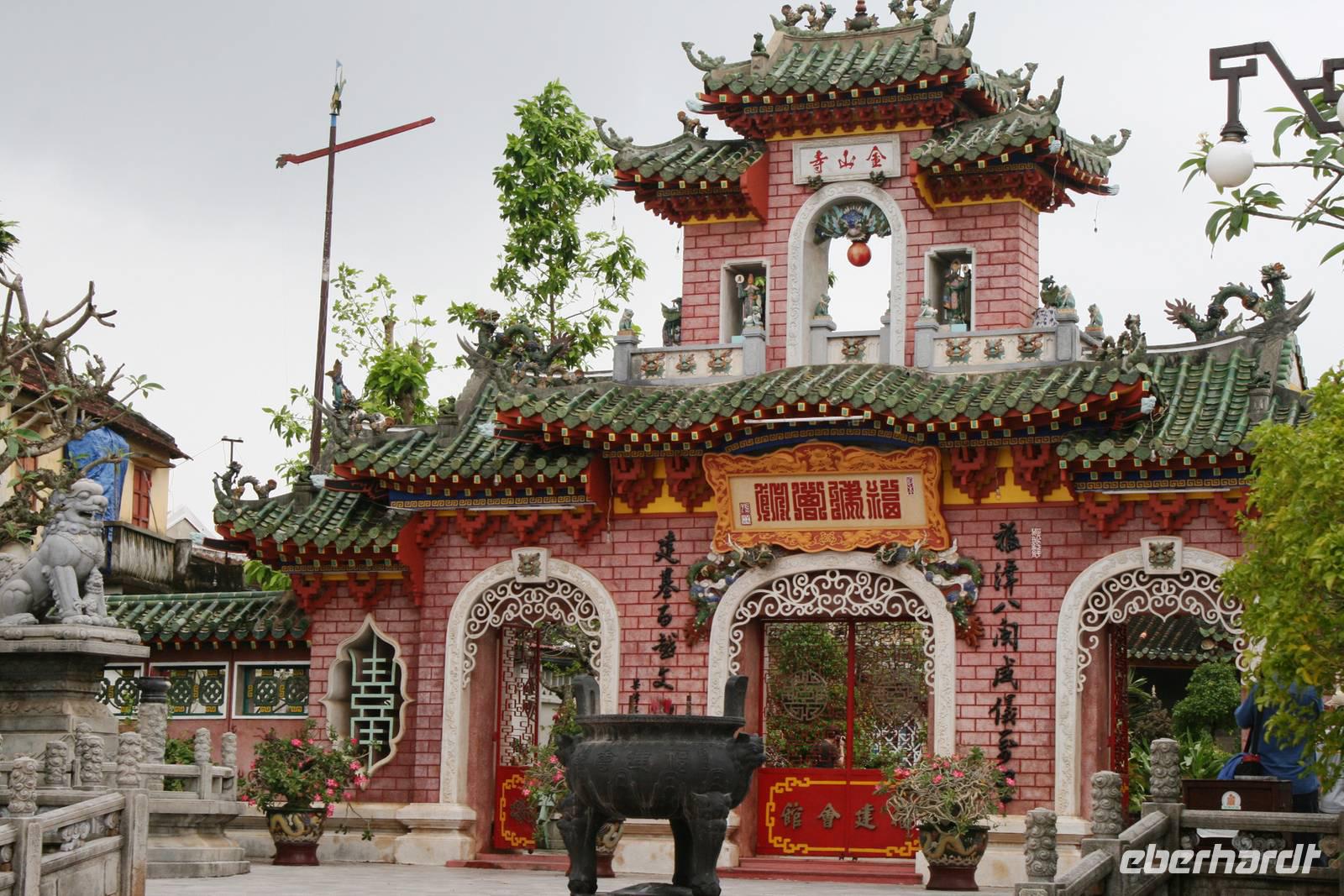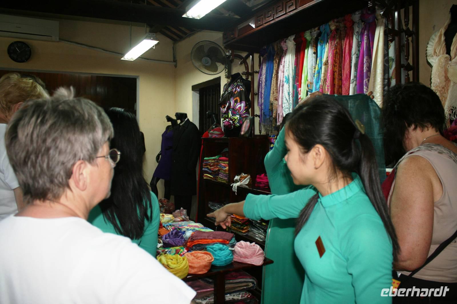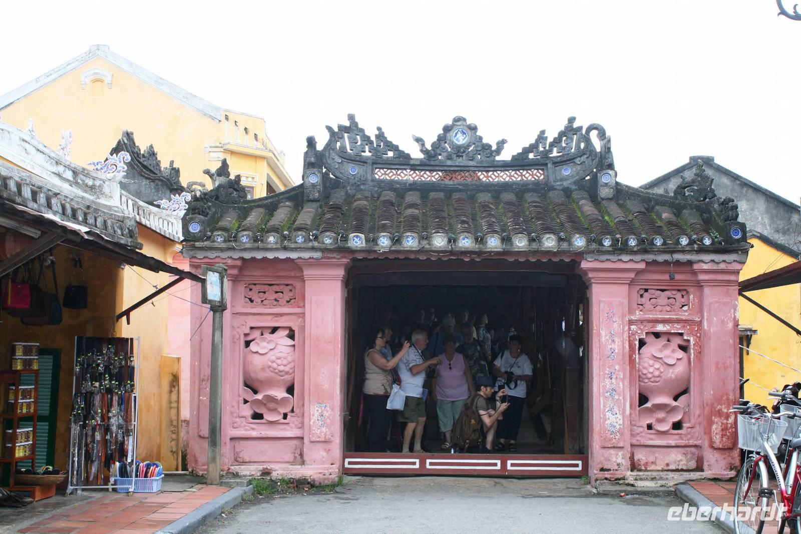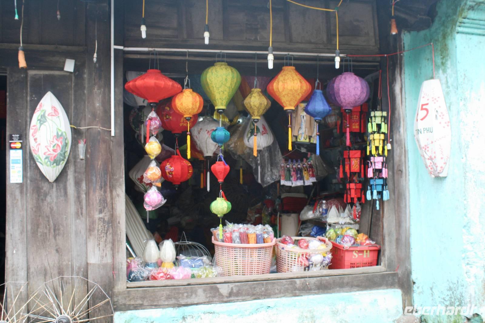 Nach einem reichhaltigen Frühstück begann unser Stadtrundgang durch das historische Handelstädtchen Hoi An. Die gesamte Altstadt gehört inzwischen zum Weltkulturerbe. Sofort zog uns das liebliche, bunte Städtchen in seinen Bann, trotz des etwas trüben Wetters.
