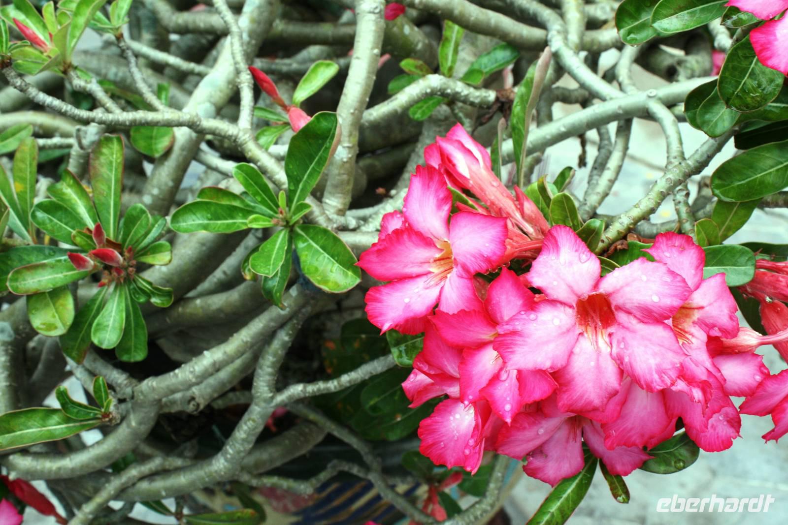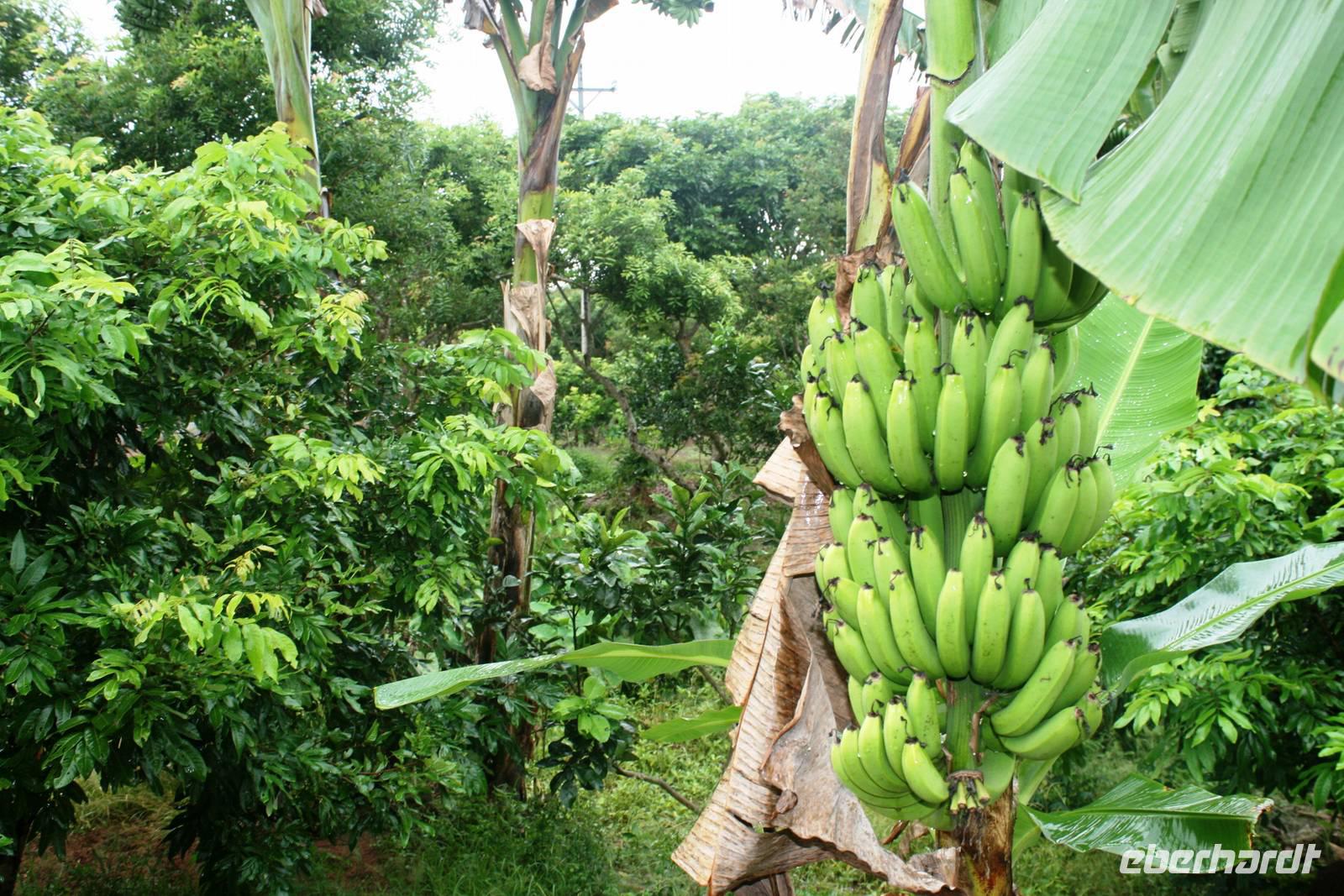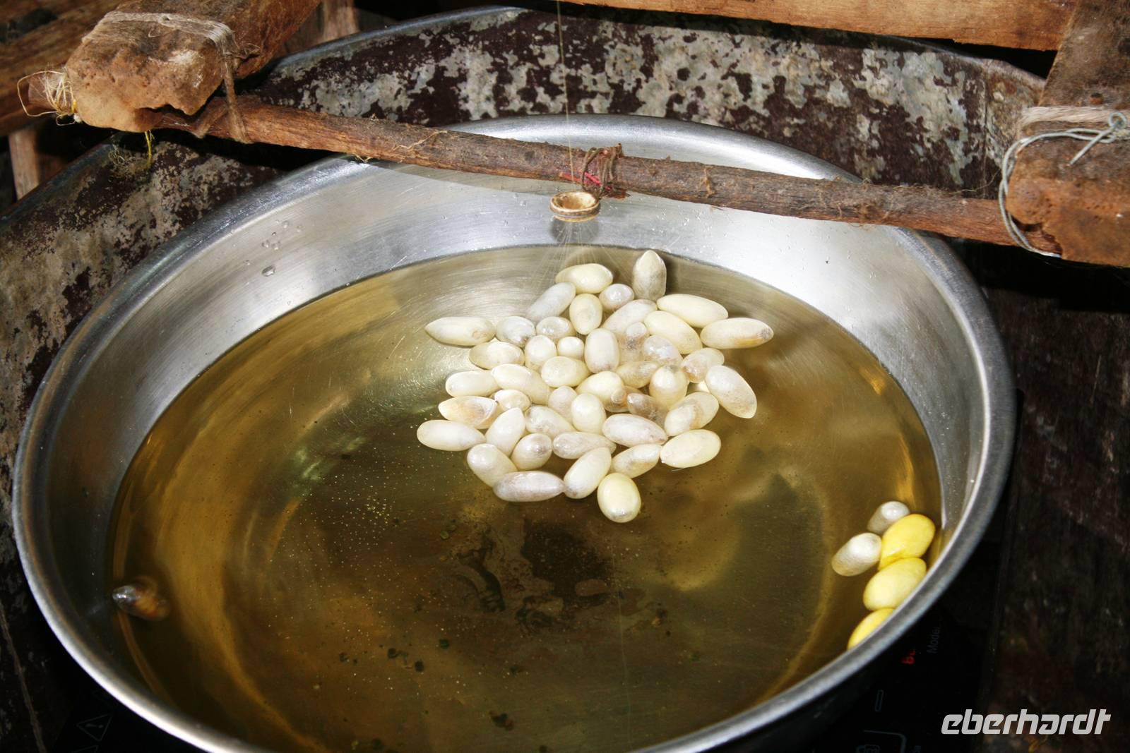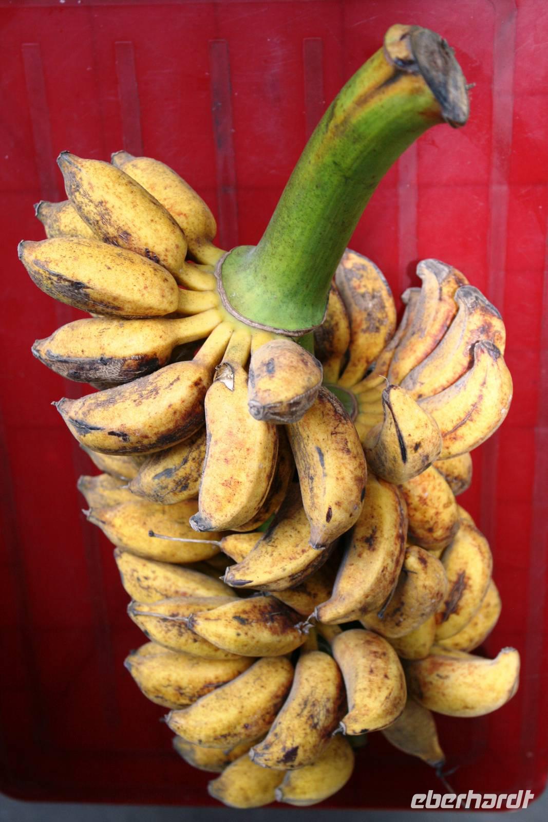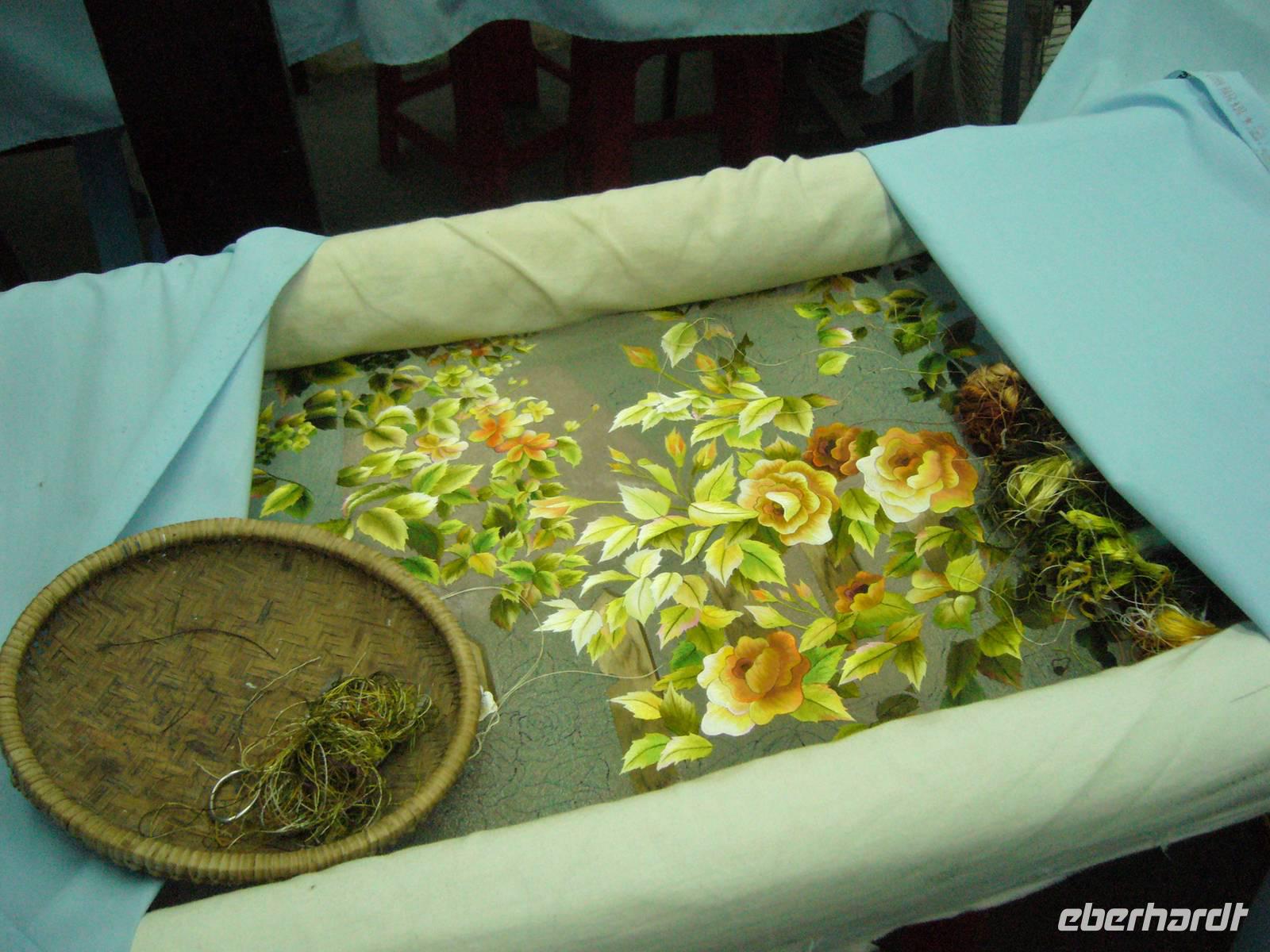 Nach einem begeisterten Frühstück begrüßte uns Huong mit Mütze und Schal. Bei 22° C am Morgen war ihr noch kalt. Wir mußten lachen. Mit dem Bus fuhren wir zum Bahnhof. Eigentlich hatten wir keine Lust mehr auf Zug fahren, aber die Eisenbahnfahrt in historischen Wagons wurde ein entspannendes Erlebnis. Die Bahnlinie zwischen Saigon und Da Lat wurde 1930 gebaut und ist heute größtenteils stillgelegt. Vorbei an Siedlungen, unzähligen Gewächshäusern, Erdbeerplantagen und riesigen Weihnachtssternstauden, die schon an das bevorstehende Fest erinnern, zuckelte die Eisenbahn ein kleines Stück zum Örtchen Trai Mat. Von hier bummelten wir zur Linh Phuoc Pagode, die erst in den 60er erbaut wurde. Bunte Mosaike aus Keramikscherben, überladende Ornamente, überdimensionale Statuen soweit unsere Augen blicken konnten. Beeindruckend und faszinierend, aber es ähnelte eher einem buddhistischen Jahrmarkt. Auf dem Rückweg zum Zug winkten uns fröhliche Schulkinder zu. Sie waren bestimmt so gut gelaunt, weil die Schule zu Ende war. Von Huong erfuhren wir, dass in Vietnam Schulpflicht besteht und Schuluniformen getragen werden. Aufgrund der Massen von Schülern wird an den Schulen sowohl vormittags als auch nachmittags unterrichtet. Nach einem Zwischenstopp am Happy House besichtigten wir den ehemaligen Sommerpalast des letzten Kaisers. Ein Hauch von Art Deko begleitete uns beim Rundgang durch die "Gemächer". Anschließend überraschten wir die Eberhardt Gäste mit dem Besuch des Crazy Houses. Hier hat die exzentrische Besitzerin Hang Nga (Tochter des ehemaligen Ministerpräsidenten) ihrer Fantasie ungezügelten Lauf gelassen und ein skurriles Gebäudekunstwerk entstehen lassen, welches noch lange nicht fertig ist. Wer will, kann hier auch im Kürbis- oder Spinnenzimmer übernachten. Wir waren uns einig, der Besuch des asiatischen "Hundertwasserhauses" war ein außergewöhnliches Erlebnis. Beim anschließenden Spaziergang durch die wunderschöne, bunte Anlage des Blumengartens fing es leider zu regnen an. Am Nachmittag genossen alle ihre Freizeit, durchstöberten den lokalen Markt auf der Suche nach Trockenfrüchten, kandierten Ingwer sowie Da Lat Wein und verweilten in einem der kleinen Cafes bei einem starken Kaffee und leckerer Pho Suppe. Am Abend gab es eine weitere, leckere Spezialität: Flambierte Bananen. Bei der Zubereitung wurde es unserem sympathischen Kellner spürbar heiss!