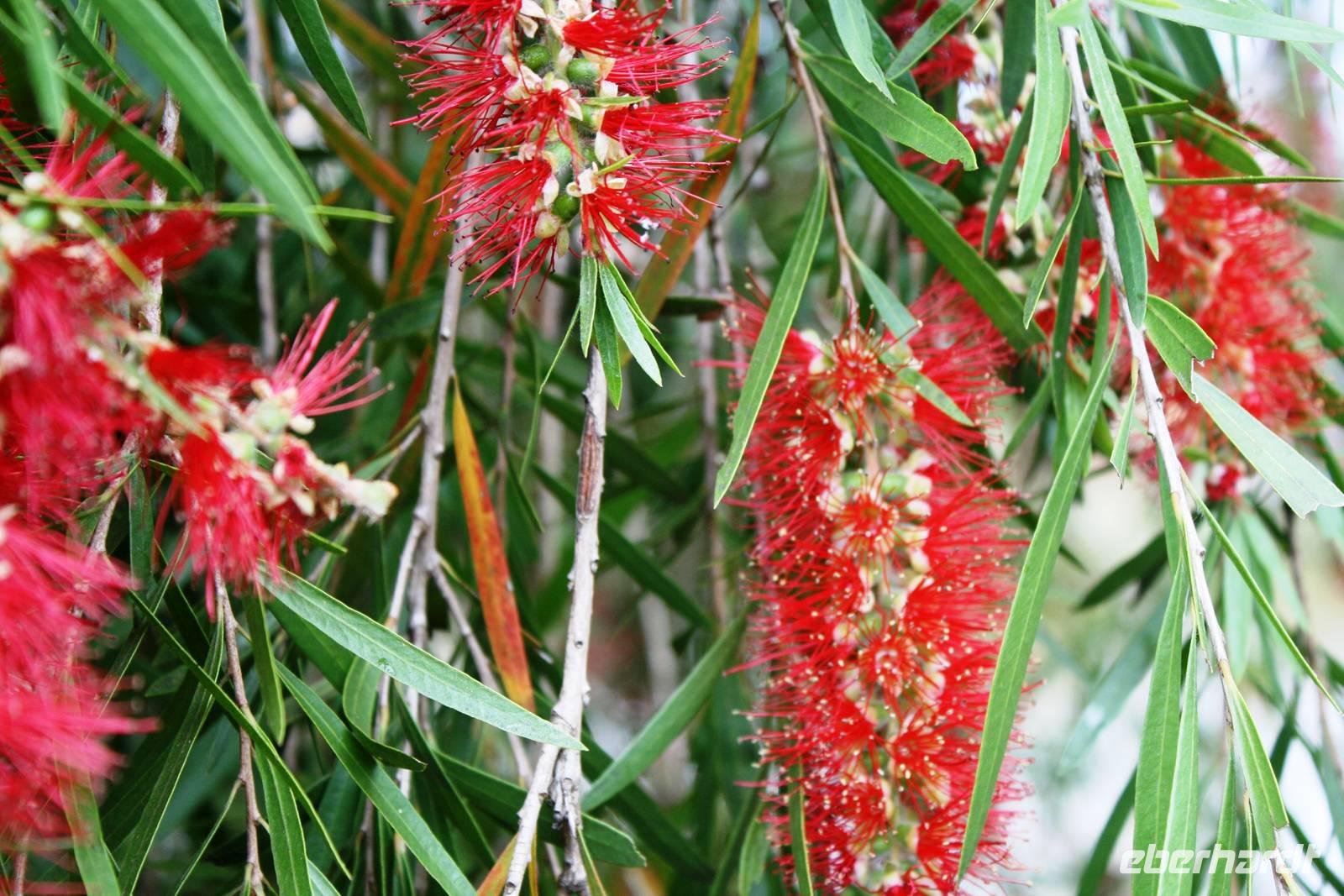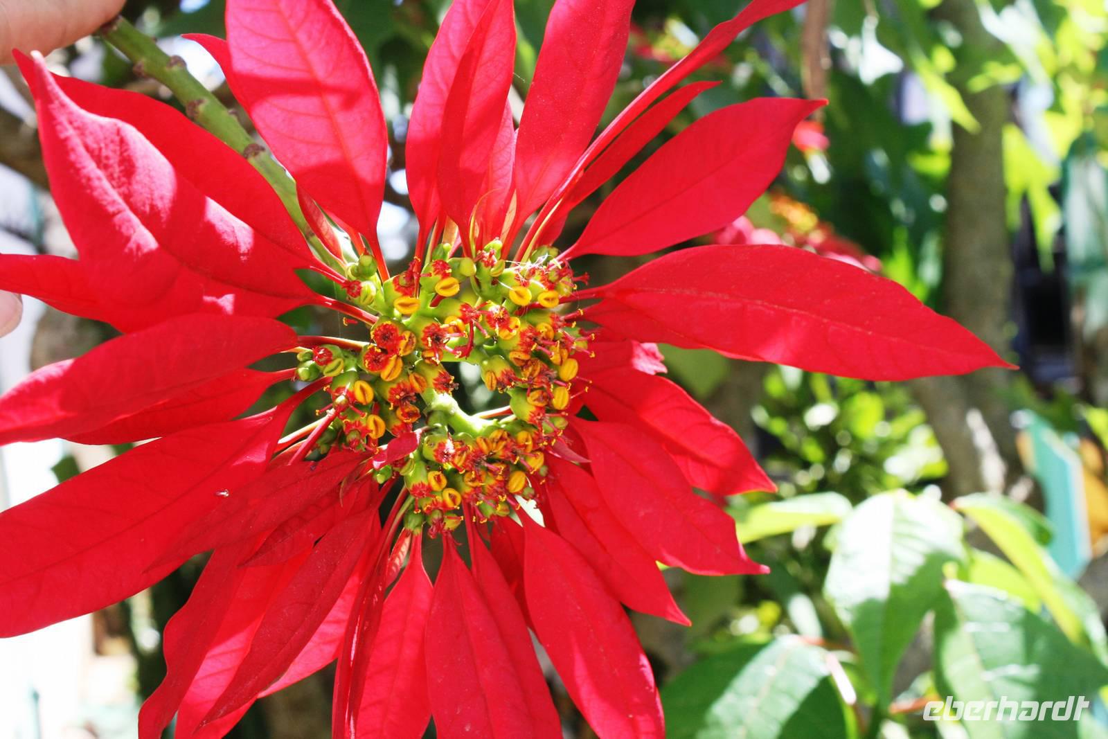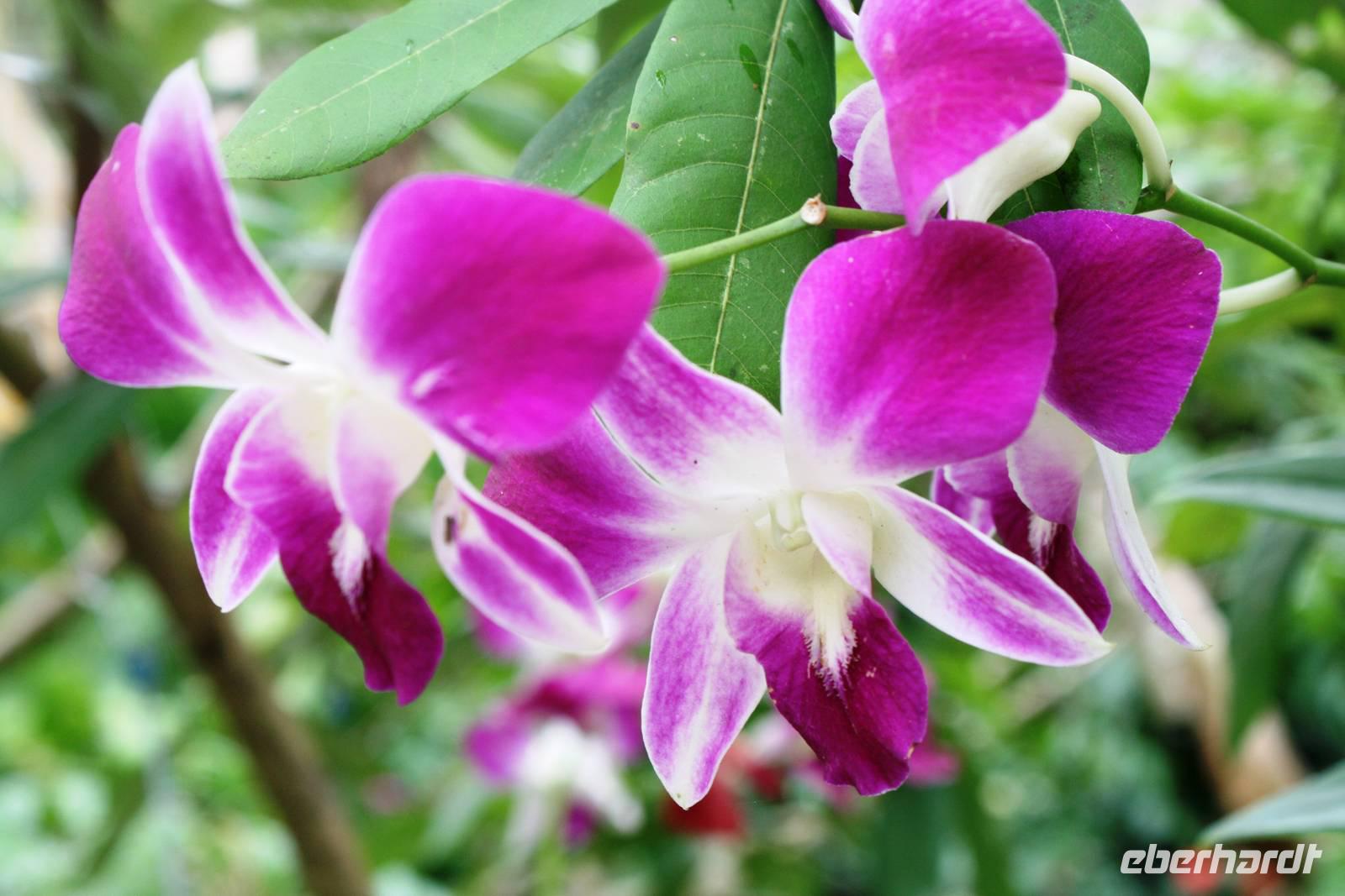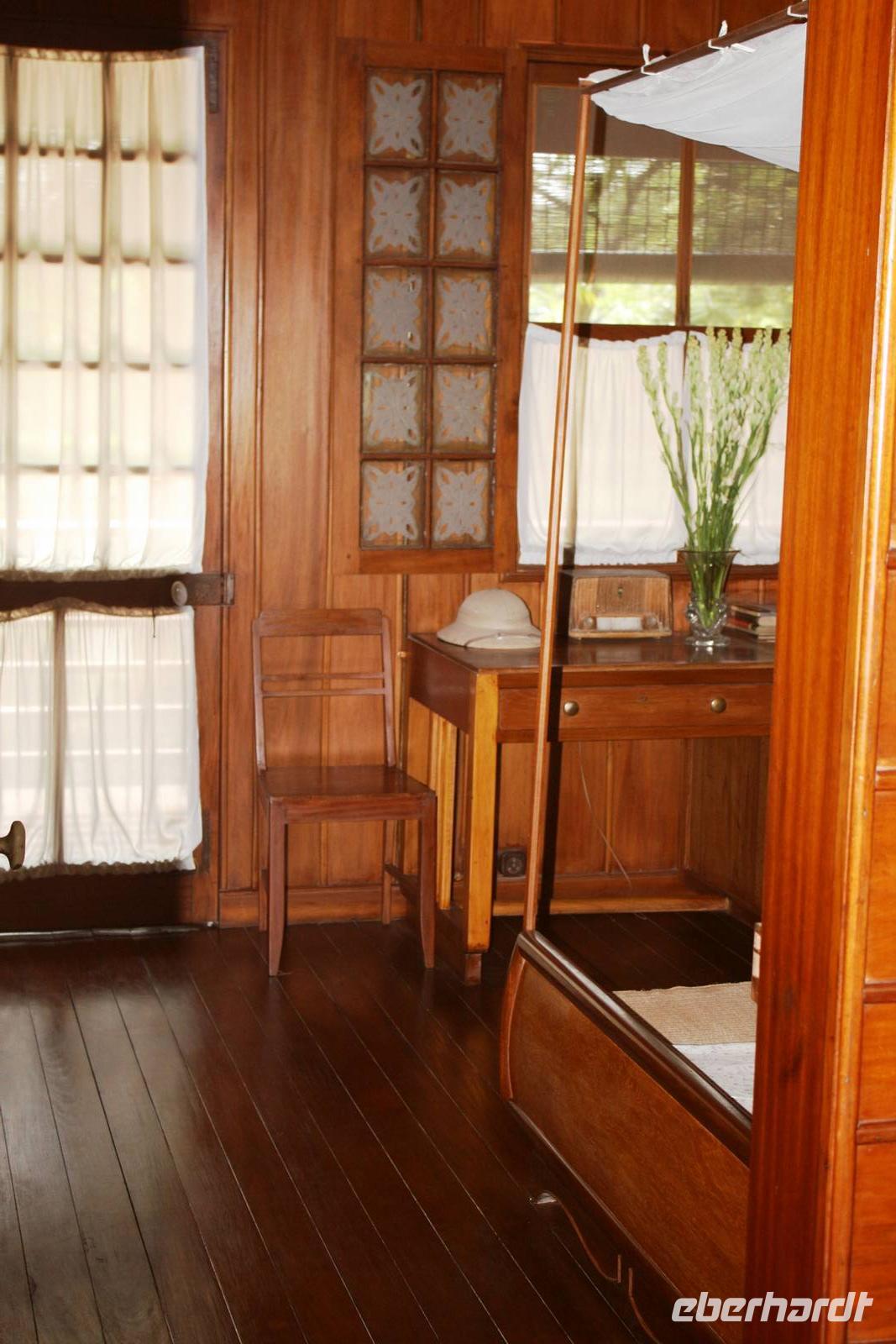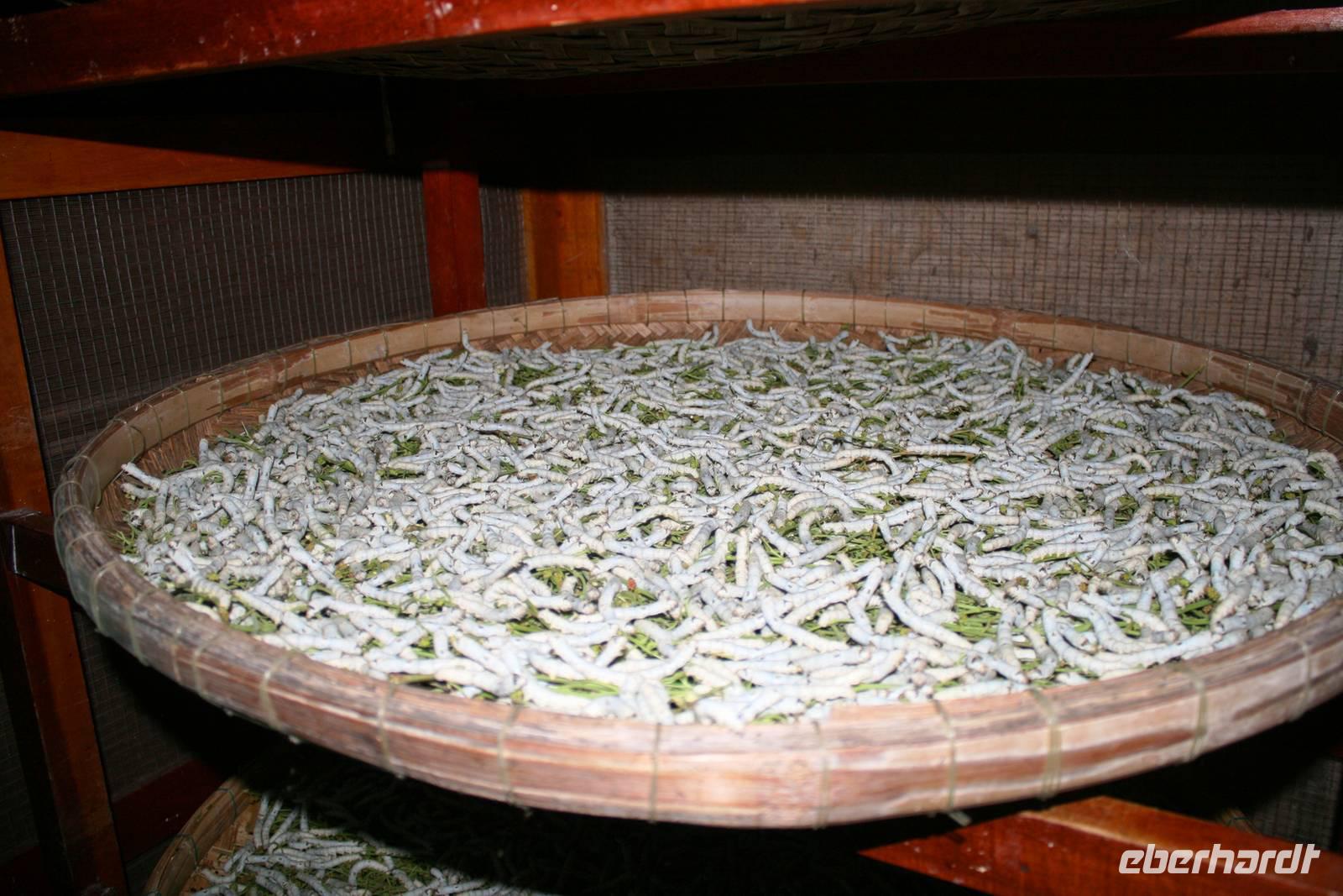 Nach einem begeisterten Frühstück begrüßte uns Huong mit Mütze und Schal. Bei 22° C am Morgen war ihr noch kalt. Wir mußten lachen. Mit dem Bus fuhren wir zum Bahnhof. Eigentlich hatten wir keine Lust mehr auf Zug fahren, aber die Eisenbahnfahrt in historischen Wagons wurde ein entspannendes Erlebnis. Die Bahnlinie zwischen Saigon und Da Lat wurde 1930 gebaut und ist heute größtenteils stillgelegt. Vorbei an Siedlungen, unzähligen Gewächshäusern, Erdbeerplantagen und riesigen Weihnachtssternstauden, die schon an das bevorstehende Fest erinnern, zuckelte die Eisenbahn ein kleines Stück zum Örtchen Trai Mat. Von hier bummelten wir zur Linh Phuoc Pagode, die erst in den 60er erbaut wurde. Bunte Mosaike aus Keramikscherben, überladende Ornamente, überdimensionale Statuen soweit unsere Augen blicken konnten. Beeindruckend und faszinierend, aber es ähnelte eher einem buddhistischen Jahrmarkt. Auf dem Rückweg zum Zug winkten uns fröhliche Schulkinder zu. Sie waren bestimmt so gut gelaunt, weil die Schule zu Ende war. Von Huong erfuhren wir, dass in Vietnam Schulpflicht besteht und Schuluniformen getragen werden. Aufgrund der Massen von Schülern wird an den Schulen sowohl vormittags als auch nachmittags unterrichtet. Nach einem Zwischenstopp am Happy House besichtigten wir den ehemaligen Sommerpalast des letzten Kaisers. Ein Hauch von Art Deko begleitete uns beim Rundgang durch die "Gemächer". Anschließend überraschten wir die Eberhardt Gäste mit dem Besuch des Crazy Houses. Hier hat die exzentrische Besitzerin Hang Nga (Tochter des ehemaligen Ministerpräsidenten) ihrer Fantasie ungezügelten Lauf gelassen und ein skurriles Gebäudekunstwerk entstehen lassen, welches noch lange nicht fertig ist. Wer will, kann hier auch im Kürbis- oder Spinnenzimmer übernachten. Wir waren uns einig, der Besuch des asiatischen "Hundertwasserhauses" war ein außergewöhnliches Erlebnis. Beim anschließenden Spaziergang durch die wunderschöne, bunte Anlage des Blumengartens fing es leider zu regnen an. Am Nachmittag genossen alle ihre Freizeit, durchstöberten den lokalen Markt auf der Suche nach Trockenfrüchten, kandierten Ingwer sowie Da Lat Wein und verweilten in einem der kleinen Cafes bei einem starken Kaffee und leckerer Pho Suppe. Am Abend gab es eine weitere, leckere Spezialität: Flambierte Bananen. Bei der Zubereitung wurde es unserem sympathischen Kellner spürbar heiss!