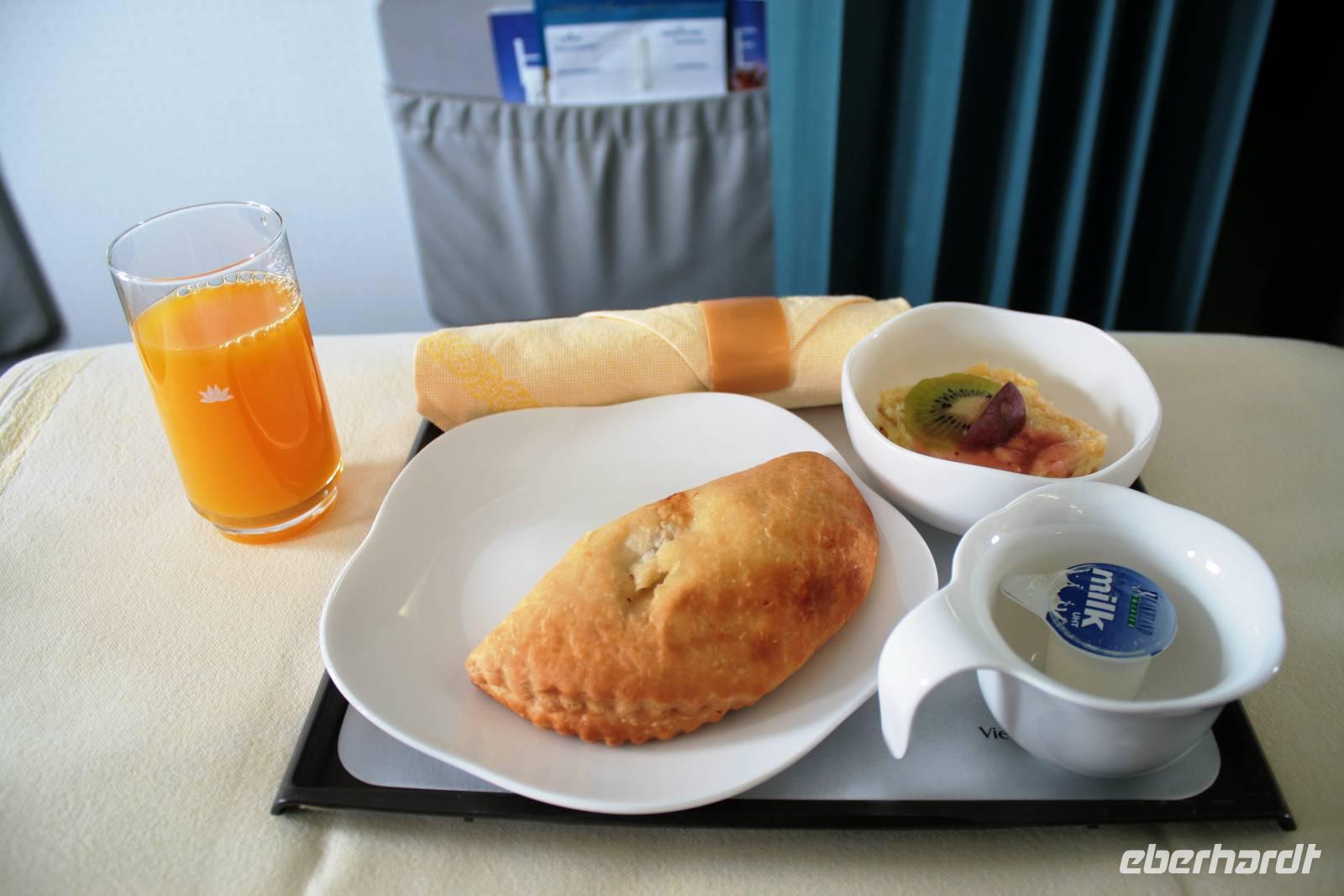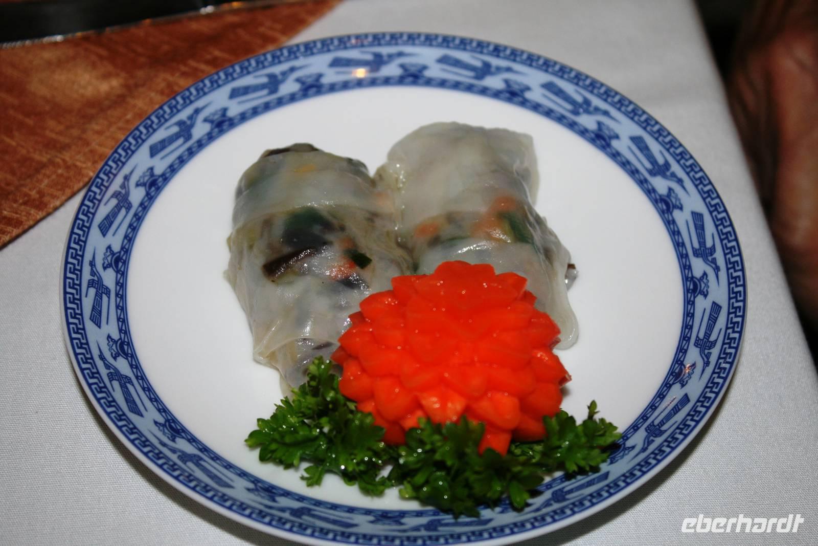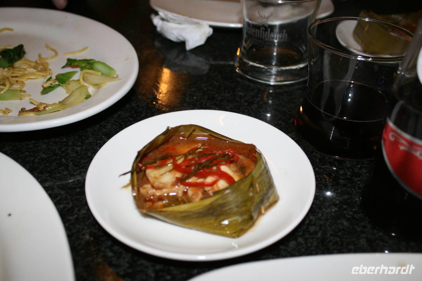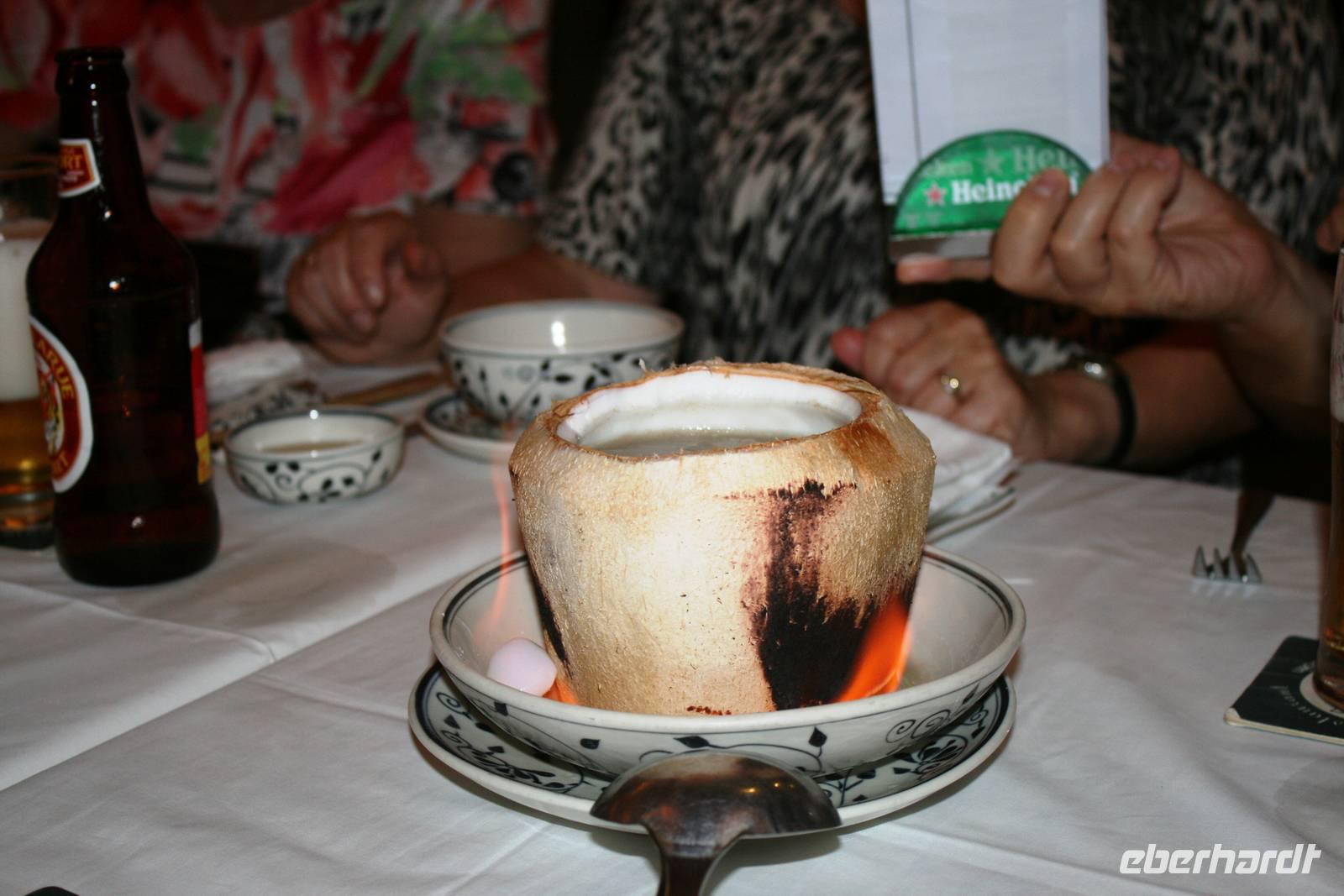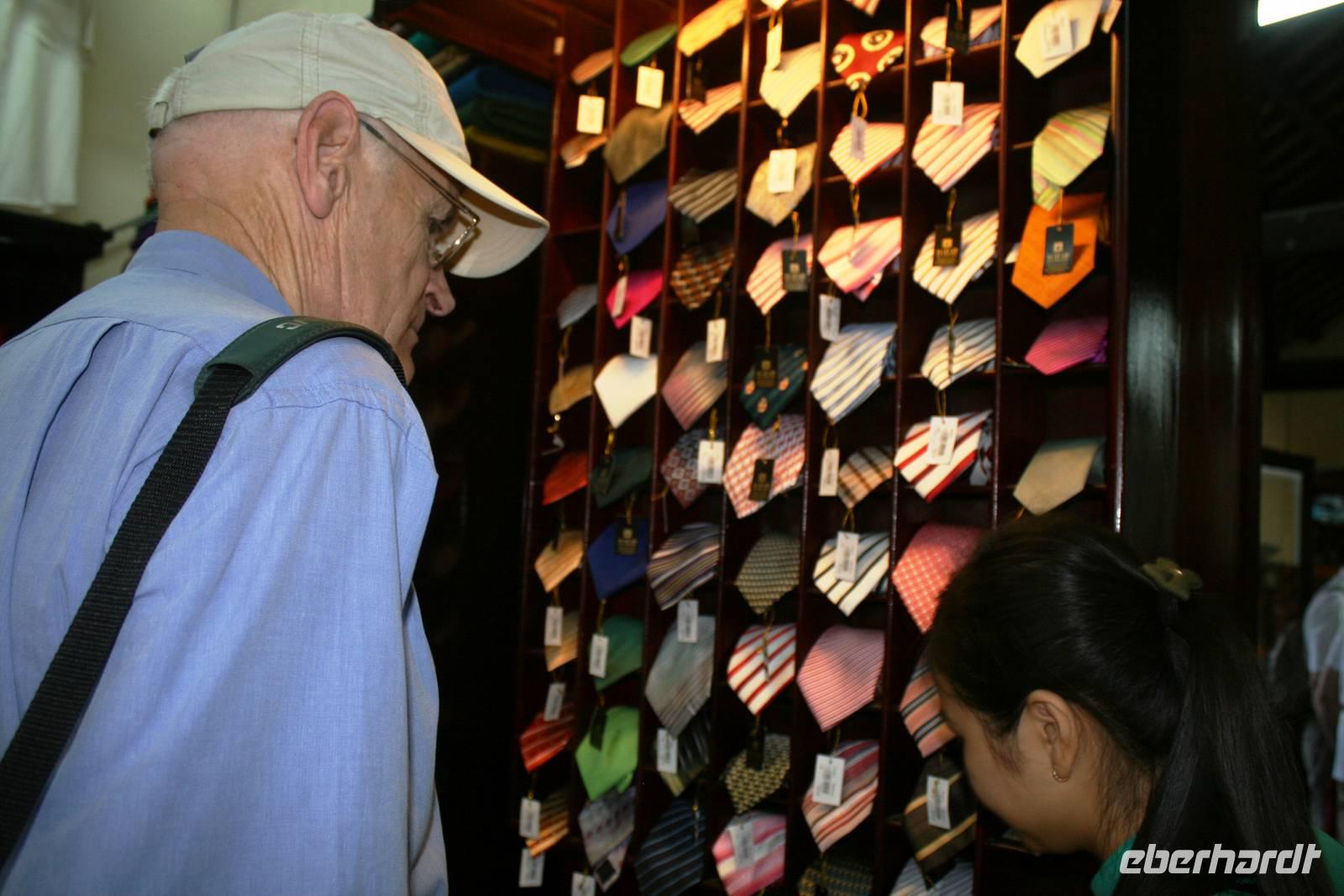 Nach Sonnenaufgang nahmen wir ein kleines Frühstückchen ein und unsere Dschunkenfahrt ging weiter. Später fuhren wir mit dem Tender in die Luang-Bucht und stiegen auf Ruderboote um. Nur ein kleiner Durchbruch in der umschließenden Felswand war unsere Einfahrt in die Lagune: Natur pur mit grünbewachsenen Felsen, fremdartigen Geräuschen und putzigen Äffchen, die keine Scheu zeigten und sich begierig auf unsere Bananen stürzten. An diesem Morgen hatten sich die unzähligen Dschunken fein gemacht und ihre rostbraunen Segel aufgezogen. Zurück an Bord erwartete uns ein ausgiebiger Brunch, der nix zu wünschen übrig ließ. Die Sonne war hervor gekommen und so genossen wir die Rückfahrt an Deck. Faszinierend, wie im Laufe von Jahrmillionen diese landschaftliche Pracht entstand. Innerhalb geschützter Buchten sehen wir kleine, schwimmende Dörfer. Die Menschen leben das ganze Jahr hier und haben sich der Natur angepasst. Laut Onkel Ot gibt es 1996 Inseln in der Ha Long Bucht. Wir glauben ihm das mal, obwohl wir sie nicht gezählt haben. Viele Insel haben fantasievolle Namen, die sie nach ihren Formen erhalten haben. Wir haben auch noch passende Namensvorschläge. Am Mittag verabschiedeten wir uns von dieser beeindruckende Naturlandschaft und fuhren mit dem Bus nach Hanoi zurück. Unterwegs besichtigten wir eine Perlenzuchtstation und erfrischten uns bei fruchtigen Leckereien wie Ananas mit Chilisalz und Babybananen. Wir besuchten einen alten Friedhof, wo uns Ot über die Bestattungsrituale aufklärte und durchstöberten das ABC-Center nach Souveniren. Am Flughafen Hanoi verabschiedeten wir uns von Ot und checkten für den Flug nach Hue ein. Keiner ahnte zu diesem Zeitpunkt, dass wir uns noch an diesem Abend wiedersehen. Später im Sicherheitsbereich, wir warteten bereits auf das Boarding, ereilte uns die Nachricht, dass alle Flüge von und nach Hue wegen Sturm gecancelt waren. Also Ot und Bus wieder an den Flughafen bestellt und Koffer geholt. In der Zwischenzeit hatte sich unsere Agentur um ein neues Hotel gekümmert, so dass wir die Nacht nicht auf dem Flughafen verbringen mußten. Ot und Annett bemühten sich unterdessen bei Vietnam Airlines, um verbindliche Infos für den Flug am nächsten Tag, doch mehr als Warteliste war nicht drin. In Stand By Position fuhren wir zum Hotel nach Hanoi und checkten 21 Uhr schnell ein. Anschließend ging fast die gesamte Gruppe noch aus! Im benachbarten Restaurant liessen wir den Tag bei Pasta ausklingen und Eberhardt spendierte Freigetränke.