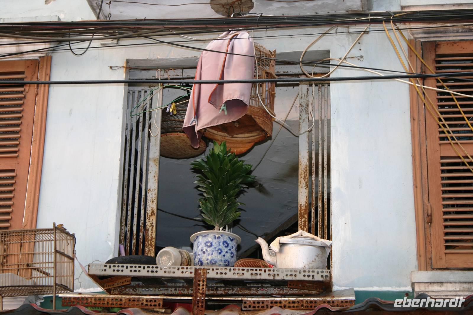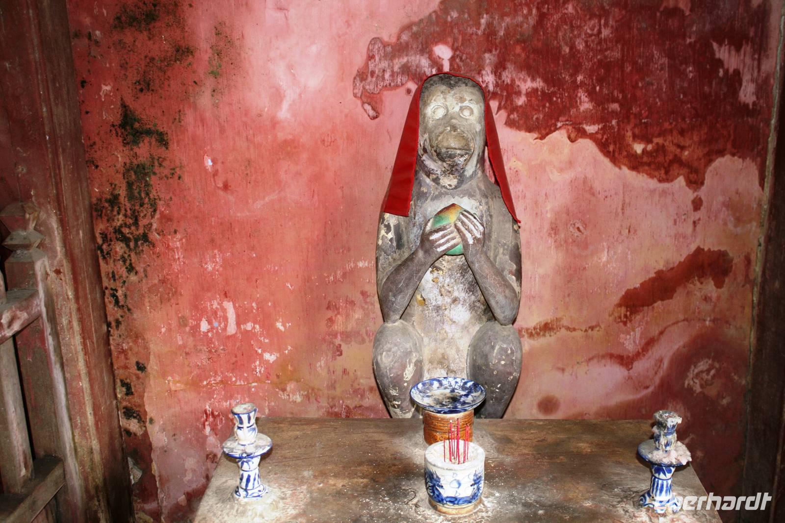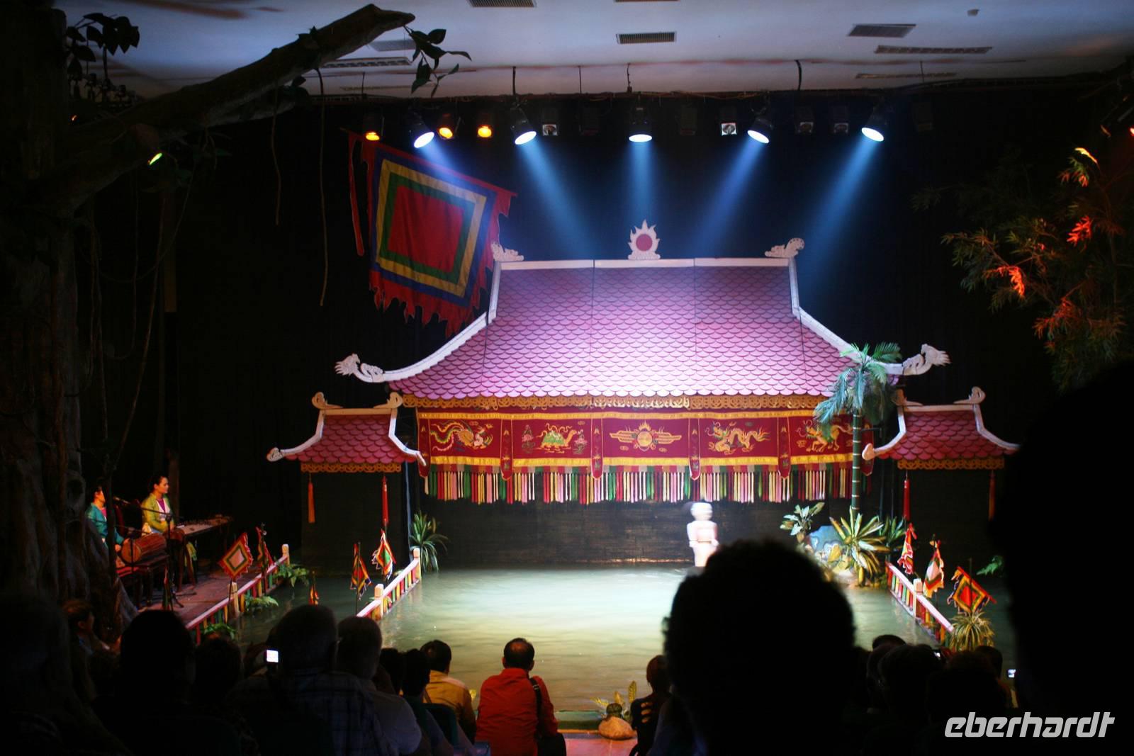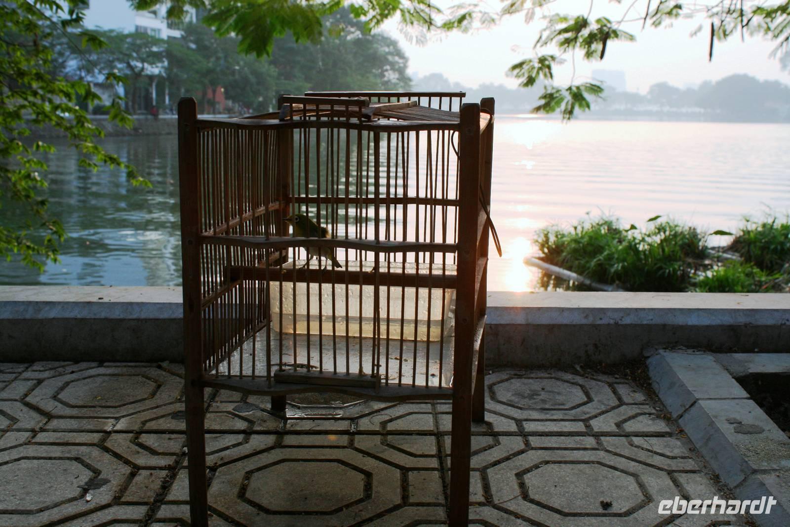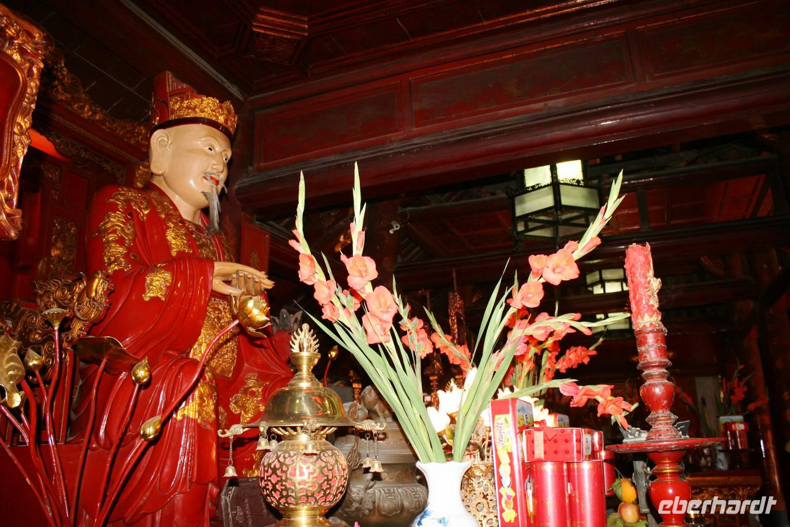 Mit einem reichhaltigem Frühstück waren wir gestärkt, um die alte und neue Hauptstadt Vietnams näher kennenzulernen. Bevor wir in den Bus stiegen, erprobten sich einige Gäste im Kurs "Mornig Business" und erhandelten preiswerte Souvenire. Nun konnte es endlich losgehen: Hanoi, wir kommen! Zunächst beobachteten wir vom Bus das lebhafte Treiben auf den Strassen von Hanoi und bewunderten unseren Busfahrer, der uns sicher durch das asiatische Strassenchaos chauffierte. Gefühlte 1.000 Mopeds, teilweise mit 5 Mitfahrern und prall bepackt mit Allerlei fuhren an uns vorbei, in den Garküchen am Straßenrand wurde gefrühstückt und auf den vielen Märkten eifrig gefeilscht. Das Wirrwarr der unzähligen Stromkabel gab uns Rätsel auf. Wie man in den schmalen, nach oben schießenden Röhrenhäuser, die an den Seiten keine Fenster haben, leben kann, war uns ebenso fremd. Lustig fanden wir die Freiluft Frisöre, die in den Morgendstunden auf Kundschaft warteten. Am Ho Chi Minh Mausoleum stiegen wir aus und gingen zu Fuß weiter. Wir spazierten durch den Park des Präsidentenpalast zum Pfahlhaus von Onkel Ho. Im Garten vor dem Haus entdeckten wir Pomelos, die wie dicke "Klopse" an zierlichen Bäumen wuchsen. Unweit befindet sich die Ein-Säulen-Pagode, die wir besichtigten. Sie gehört zu den meistbesuchten Sakralbauten Hanois. Der Legende nach soll im Traum einem kinderlosen König die Göttin der Barmherzigheit erschienen sein und ihm auf einer Lotosblüte sitzend einen Sohn überreicht haben. Kurze Zeit später wurde der König wirklich Vater eines Sohnes und aus Dankbarkeit errichtete er die Pagode in Form einer Lotusblüte. Auch heute noch pilgern viele Buddhisten zur Pagode und opfern der Göttin, damit sich ihr Kinderwunsch erfüllt. Legenden und Sagen werden uns auf dieser Reise weiter begleiten, denn sie sind untrennbar mit der Geschichte verbunden. Weiter ging es zur Van Mieu-Pagode, dem Literaturtempel, der zu Ehren des Philosophen Konfuzius errichtet wurde. Die wunderschöne Anlage ist nicht nur das konfuzianische Hauptheiligtum, sondern auch erste Universität Vietnams. Onkel Ot erzählte uns Interessantes über den Literaturtempel und dessen Geschichte. Wir erfuhren, dass Schildkröten als ein Symbol für langes Leben und Kraft gelten. So ist es nicht verwunderlich, dass wir hier viele herausgeputzte, gut gelaunte Studenten und Schüler antrafen, die ihren erfolgreichen Abschluss traditionell feierten. Anschließend mußten wir unsere vielen Eindrücke erst mal verarbeiten und pausierten in einem kleinem Restaurant, wo wir freundlich bedient wurden und lecker zu Mittag assen. Das Restaurant ist gleichzeitig Schule und Bildungsprojekt, wo Mädchen aus ärmeren Familien eine Ausbildung erhalten. Dass dies für die Mädchen eine besondere Ehre und keine Selbstverständlichkeit ist, spürten wir an der Herzlichkeit sofort. Anschließend fuhren wir ins Zentrum zurück. Hier unternahmen wir eine spannende Rikschafahrt durch die Gassen der Altstadt. Am Anfang waren wir nicht ganz entspannt, da Busse, Mopeds und vollbeladene Fahrräder unsere Wege kreuzten, aber noch einigen Minuten hatten wir uns daran gewöhnt und genoßen die Fahrt. Unser nächstes Ziel war der Hoan Kiem See (Schwertsee). Die Sage von der goldenen Schildkröte mit dem Schwert, die auch heute noch im See wohnen soll, kennt jeder Vietnamese und nun auch wir. Über eine kleine, rote Holzbrücke gelangten wir zum Jadebergtempel, der sich auf einer kleinen Insel im Schwertsee befindet. Danach besuchten wir eine Aufführung des zentralen Wasserpuppentheaters, welches in Vietnam eine uralte Tradition hat. Dargestellt wurden das bäuerliche Leben und Götterlegenden, wobei die studierten Akteure, welche die hölzernen, bis zu 5 kg schweren Puppen steuern, die ganze Zeit bis zu den Hüften im Wasser stehen mußten. Den Tag beschloß ein schmackhaftes Abendessen im Garten des Restaurant Le Tonkin und der obligatorische Reisschnaps.