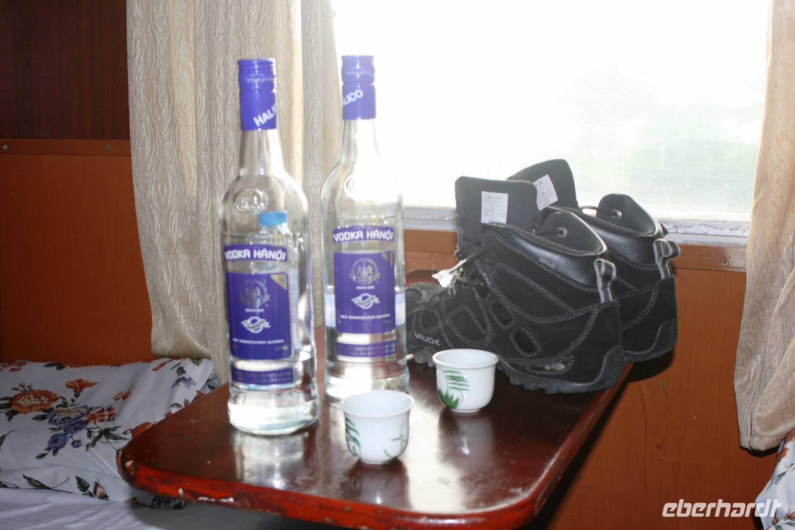 Am Nachmittag dann die Information, dass der Flughafen weiterhin geschlossen bleibt und wir die letzten Tickets für den Nachtzug nach Nha Trang ergattern konnten. Die Zugfahrt war die beste Alternative, um den geplanten Reiseverlauf, nur mit kleineren Abstrichen, weiter führen zu können. Wann wir hätten fliegen können, stand in den Sternen und eine 12stündige Busfahrt auf vietnamesischen Strassen wäre keine passende Alternative. Das ungewisse Abwarten hatte nun endlich ein Ende und wir packten unsere Koffer. Am frühen Abend begrüßte uns dann wieder Ngoc und wir fuhren nach Da Dang. Aufgrund des Taifuns war in der Stadt noch vieles geschlossen. In einem der wenigen geöffneten Restaurants aßen wir zu Abend. Hier war es ziemlich laut und beim Servieren der angekündigten Speisenfolge war das Personal total überfordert. So drangen wir in eine lokale, jugendlich besetzte Kaffeestube am Bahnhof ein, um die Wartezeit zu überbrücken. Annett verteilte die Zugtickets für die bereits bestehenden Schlafgemeinschaften und spendierte Kaffee oder andere Getränke. Schnell dann noch "Schlaftrunk und Betthüpferl" besorgt. Auf dem Bahnhof verabschiedeten wir uns von Ngoc. Erst nachdem der Zug einfuhr, wurden die Türen zu den Gleisen geöffnet und Eberhardt enterte die Wagons. Etwas verspätet setzte sich ca. 22:40 Uhr der Zug in Bewegung. Annett drehte noch eine "Gute Nacht" Runde durch die von Eberhardt besetzten Abteile, bewaffnet mit Schlaftrunk und Teppichklebeband gegen zugige Klimaanlagen.