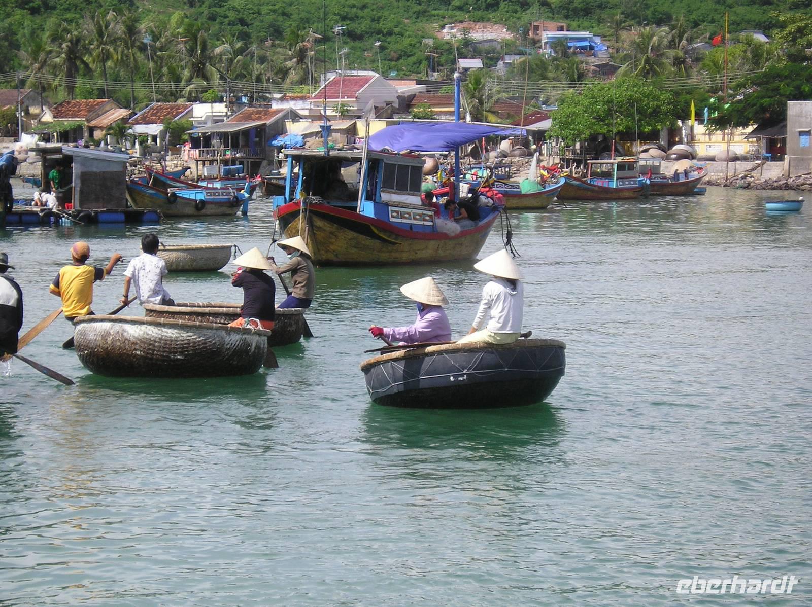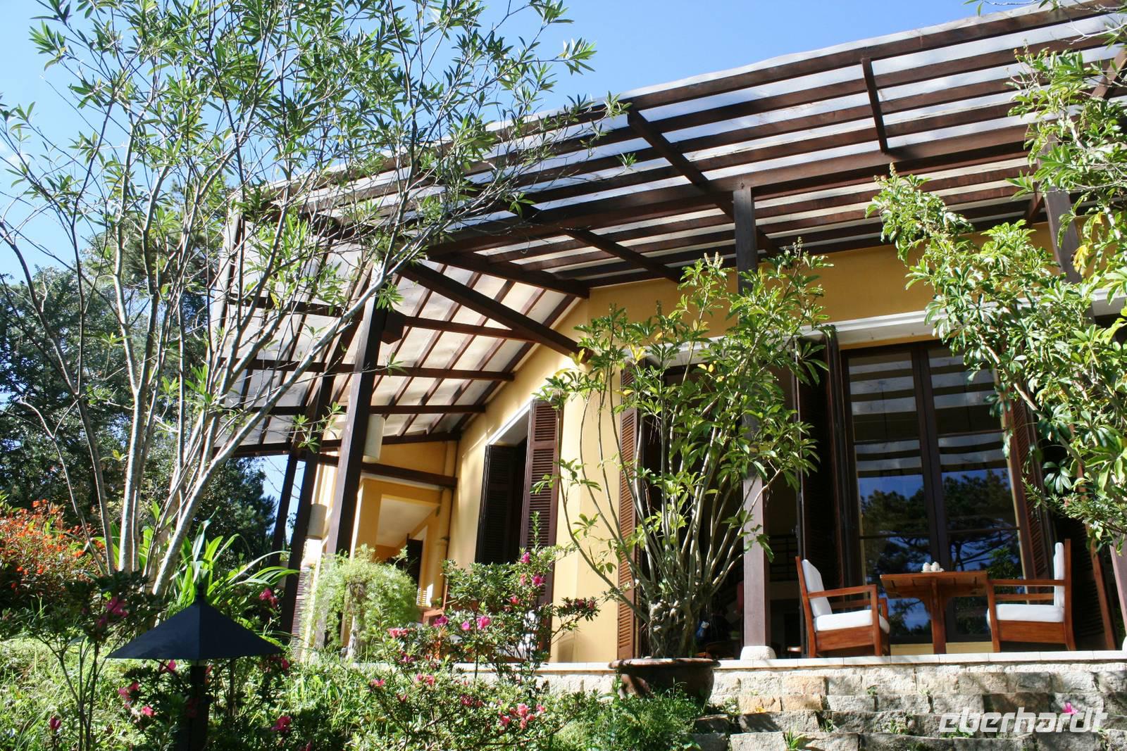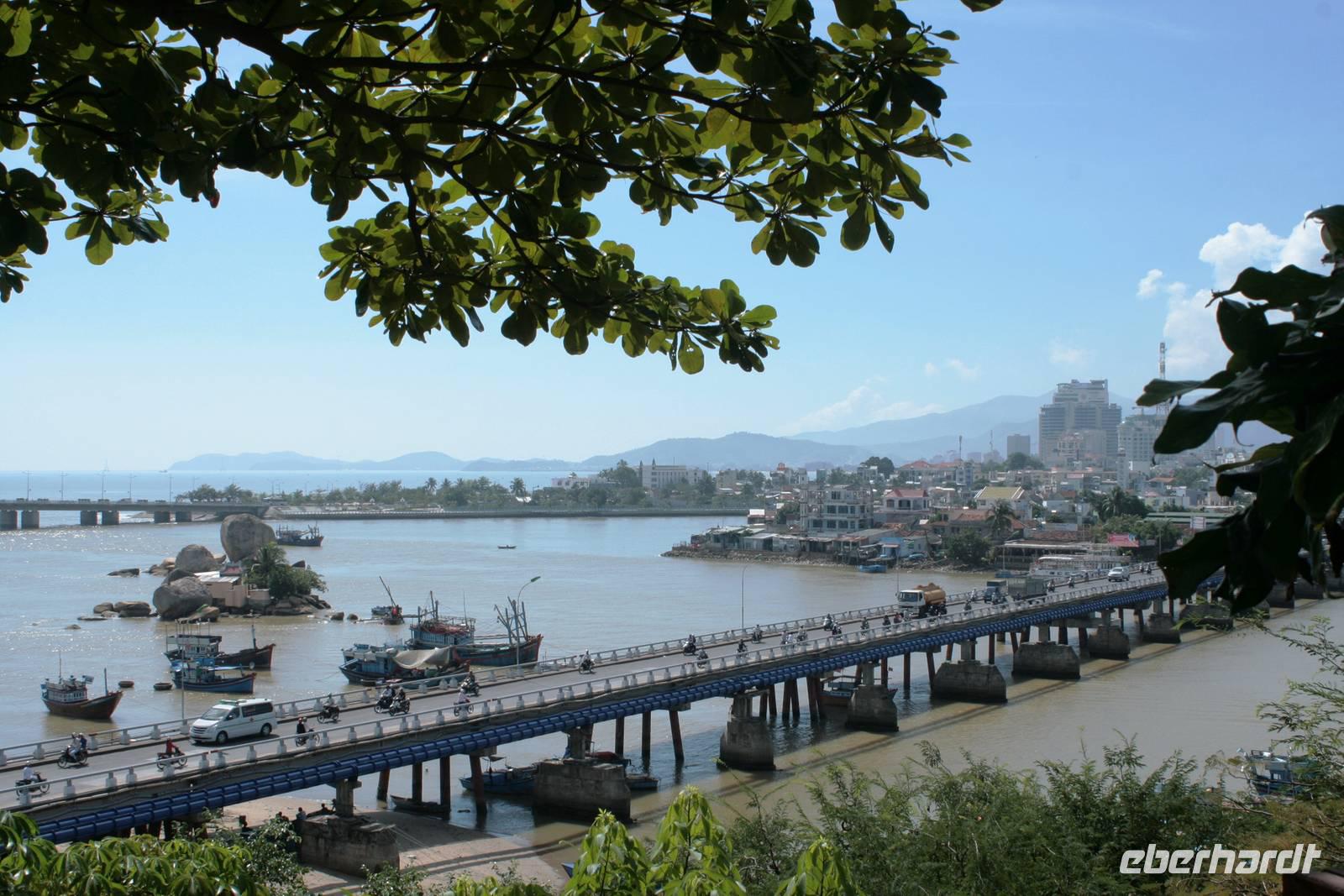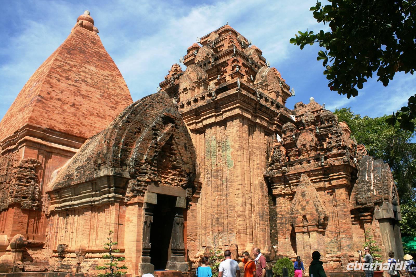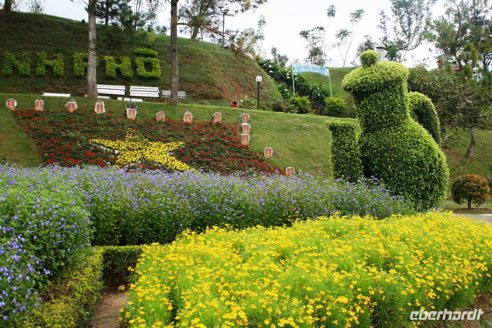 Kurz nach 7 Uhr startete Annett zum "Weckruf". Alle hatten, besser als gedacht, die Nacht überstanden. 8 Uhr fuhren wir in Nha Trang ein und eine strahlende Huong (unsere neue Reiseleiterin) und viel Sonnenschein begrüßten uns. In einem Hotel an der Strandpromenade konnten wir uns ein wenig frisch machen und am großen Buffet bedienen. Der Kaffee war dabei das Wichtigste. Gegenüber befindet sich der lange, belebte Sandstrand, der gesäumt wird von unzähligen Hotels. Irritiert bemerkten wir, dass viele Vietnamesen russisch sprechen. Kein Wunder, Nha Trang ist seit einigen Jahren Badehochburg reicher, russischer Touristen. Gern wären wir mal kurz ins Meer gesprungen, aber unsere Reise ging weiter. Wir besichtigten den berühmten hinduistischen Cham-Tempel Po Nagar, der zwischen 7. und 12. Jhd. erbaut wurde und der Mutter- und Schutzgöttin gewidmet ist. Von hier oben hat man einen schönen Blick auf Nha Trang. Die Hitze machte vielen bereits am Morgen zu schaffen. Von Norden nach Süden wir es ja immer wärmer. Deshalb entschieden wir, auf den Besuch der Long Son Pagode und deren weissen Buddha (der nur über viele, viele Stufen erreichbar ist) zu verzichten und später als Ersatz die Vinh Trang Pagode mit ihren 3 weissen Buddhas in My Tho zu besuchen. So fuhren wir im klimatisierten Bus weiter, denn eine etwas längere Fahrt ins zentrale Hochland in die Heimat des Volkes der Lats, mußte heute noch geschafft werden. Auf der neuen Strasse, deren Strecke kürzer ist, ging es relativ zügig voran. Bis auf ca. 1.600 m mußten wir noch hinauf. Die Vegetation wurde waldreicher und das Klima angenehmer. Unterwegs fuhren wir an Kaffeeplantagen, Pinienwälder und Dörfern ethnischer Minderheiten vorbei und pausierten in einem gemütlichen Cafe am Fluss. Wer wollte, konnte seinen starken Kaffee mit süßer Kondensmilch "hängend" genießen. Da Lat, die „Stadt des ewigen Frühlings" kündigte sich schon von Weitem an: Endlose Gewächshäuser, deren Plastikdächer kaum Platz für anderes lassen. Da Lat ist zweifelsohne DAS Zentrum für Blumen-, Gemüse- und Obstanbau. Am frühen Nachmittag erreichten wir Da Lat und erfreuten uns an den angenehmen Temperaturen. Nach einem späten Mittagessen und ein wenig freier Zeit fuhren wir zum wunderschönen Hotelresort Ana Mandara Da Lat, wo wir durch ein Upgrate in originalen Kolonialvillen die nächsten 2 Tage wohnen durften. Das Resort befindet sich einer weitläufigen, sehr gepflegten Parkanlage an einem Berg. Zu unseren Villen wurden wir wie einst die Kolonialherren chauffiert. Das schmackhafte Abendessen genossen wir im Restaurant des Hotels.