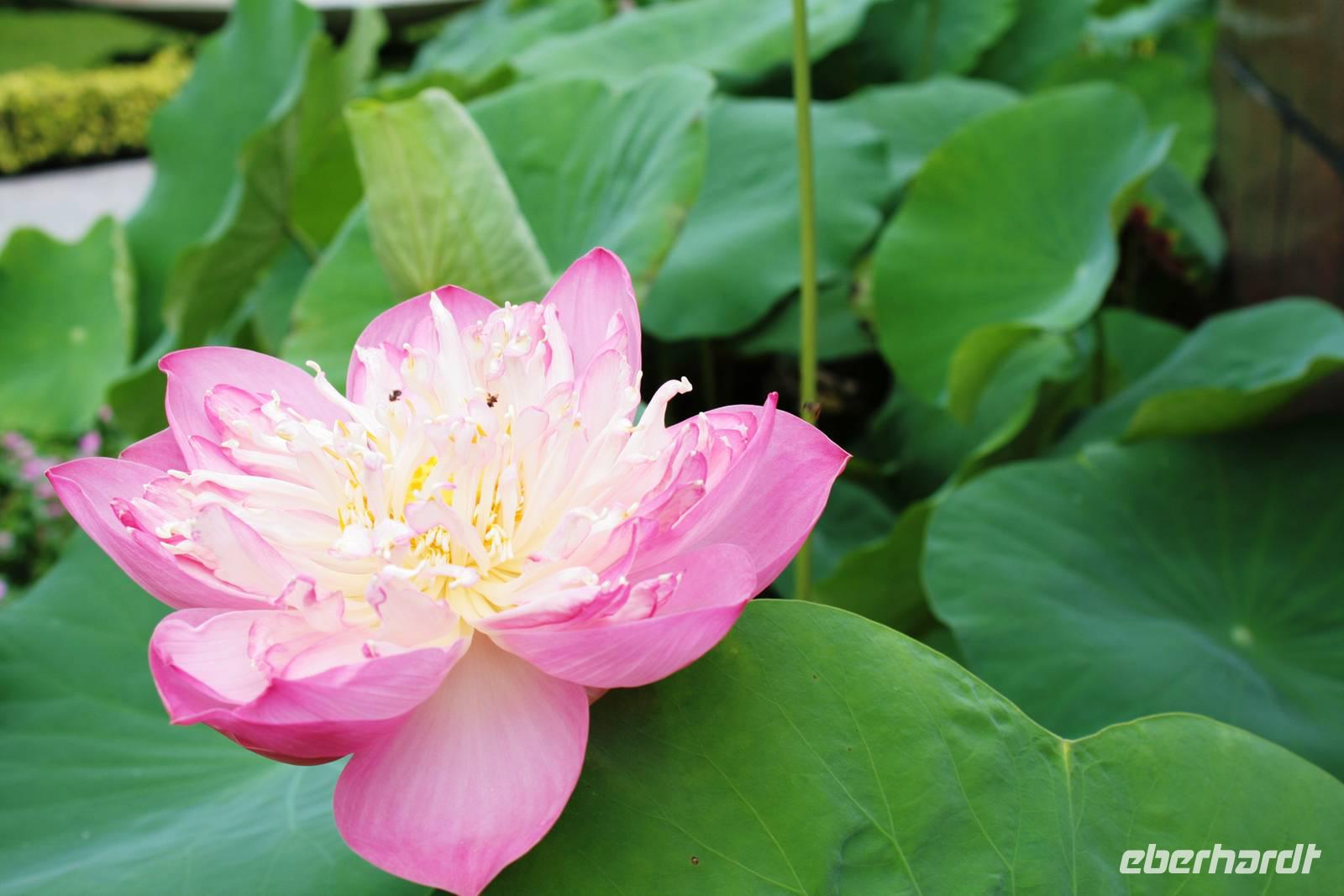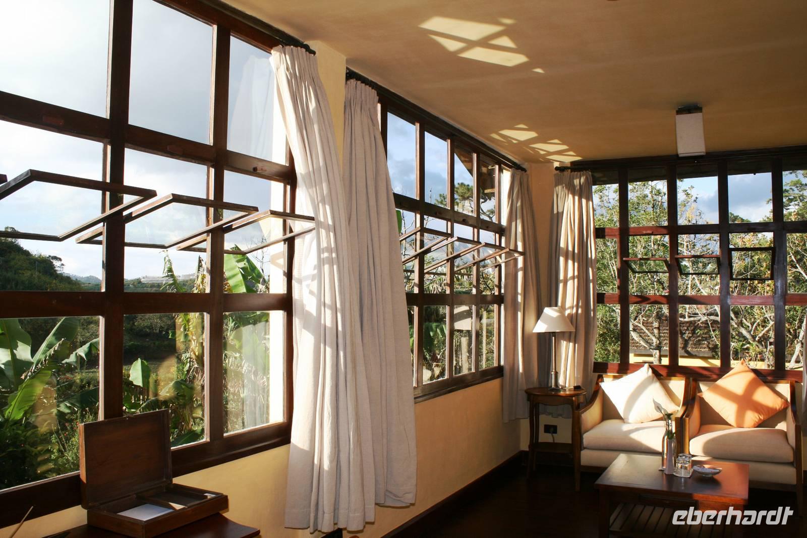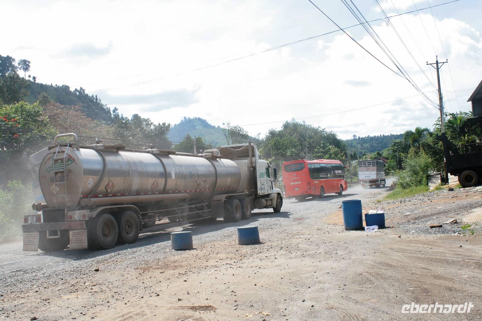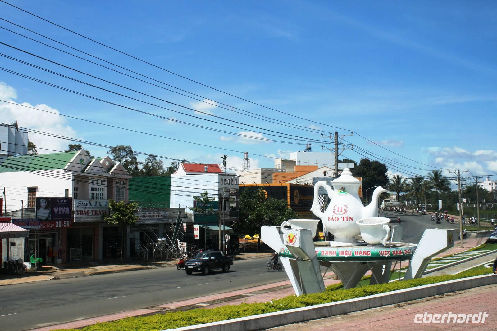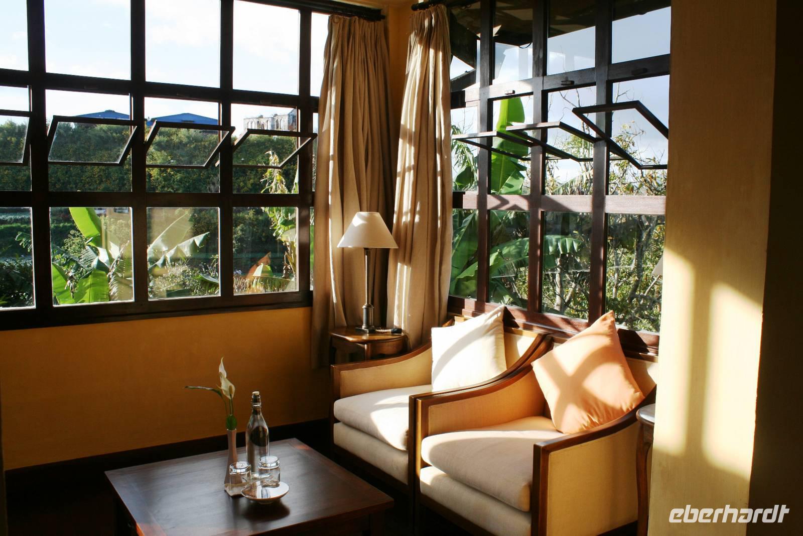 Kurz nach 7 Uhr startete Annett zum "Weckruf". Alle hatten, besser als gedacht, die Nacht überstanden. 8 Uhr fuhren wir in Nha Trang ein und eine strahlende Huong (unsere neue Reiseleiterin) und viel Sonnenschein begrüßten uns. In einem Hotel an der Strandpromenade konnten wir uns ein wenig frisch machen und am großen Buffet bedienen. Der Kaffee war dabei das Wichtigste. Gegenüber befindet sich der lange, belebte Sandstrand, der gesäumt wird von unzähligen Hotels. Irritiert bemerkten wir, dass viele Vietnamesen russisch sprechen. Kein Wunder, Nha Trang ist seit einigen Jahren Badehochburg reicher, russischer Touristen. Gern wären wir mal kurz ins Meer gesprungen, aber unsere Reise ging weiter. Wir besichtigten den berühmten hinduistischen Cham-Tempel Po Nagar, der zwischen 7. und 12. Jhd. erbaut wurde und der Mutter- und Schutzgöttin gewidmet ist. Von hier oben hat man einen schönen Blick auf Nha Trang. Die Hitze machte vielen bereits am Morgen zu schaffen. Von Norden nach Süden wir es ja immer wärmer. Deshalb entschieden wir, auf den Besuch der Long Son Pagode und deren weissen Buddha (der nur über viele, viele Stufen erreichbar ist) zu verzichten und später als Ersatz die Vinh Trang Pagode mit ihren 3 weissen Buddhas in My Tho zu besuchen. So fuhren wir im klimatisierten Bus weiter, denn eine etwas längere Fahrt ins zentrale Hochland in die Heimat des Volkes der Lats, mußte heute noch geschafft werden. Auf der neuen Strasse, deren Strecke kürzer ist, ging es relativ zügig voran. Bis auf ca. 1.600 m mußten wir noch hinauf. Die Vegetation wurde waldreicher und das Klima angenehmer. Unterwegs fuhren wir an Kaffeeplantagen, Pinienwälder und Dörfern ethnischer Minderheiten vorbei und pausierten in einem gemütlichen Cafe am Fluss. Wer wollte, konnte seinen starken Kaffee mit süßer Kondensmilch "hängend" genießen. Da Lat, die „Stadt des ewigen Frühlings" kündigte sich schon von Weitem an: Endlose Gewächshäuser, deren Plastikdächer kaum Platz für anderes lassen. Da Lat ist zweifelsohne DAS Zentrum für Blumen-, Gemüse- und Obstanbau. Am frühen Nachmittag erreichten wir Da Lat und erfreuten uns an den angenehmen Temperaturen. Nach einem späten Mittagessen und ein wenig freier Zeit fuhren wir zum wunderschönen Hotelresort Ana Mandara Da Lat, wo wir durch ein Upgrate in originalen Kolonialvillen die nächsten 2 Tage wohnen durften. Das Resort befindet sich einer weitläufigen, sehr gepflegten Parkanlage an einem Berg. Zu unseren Villen wurden wir wie einst die Kolonialherren chauffiert. Das schmackhafte Abendessen genossen wir im Restaurant des Hotels.