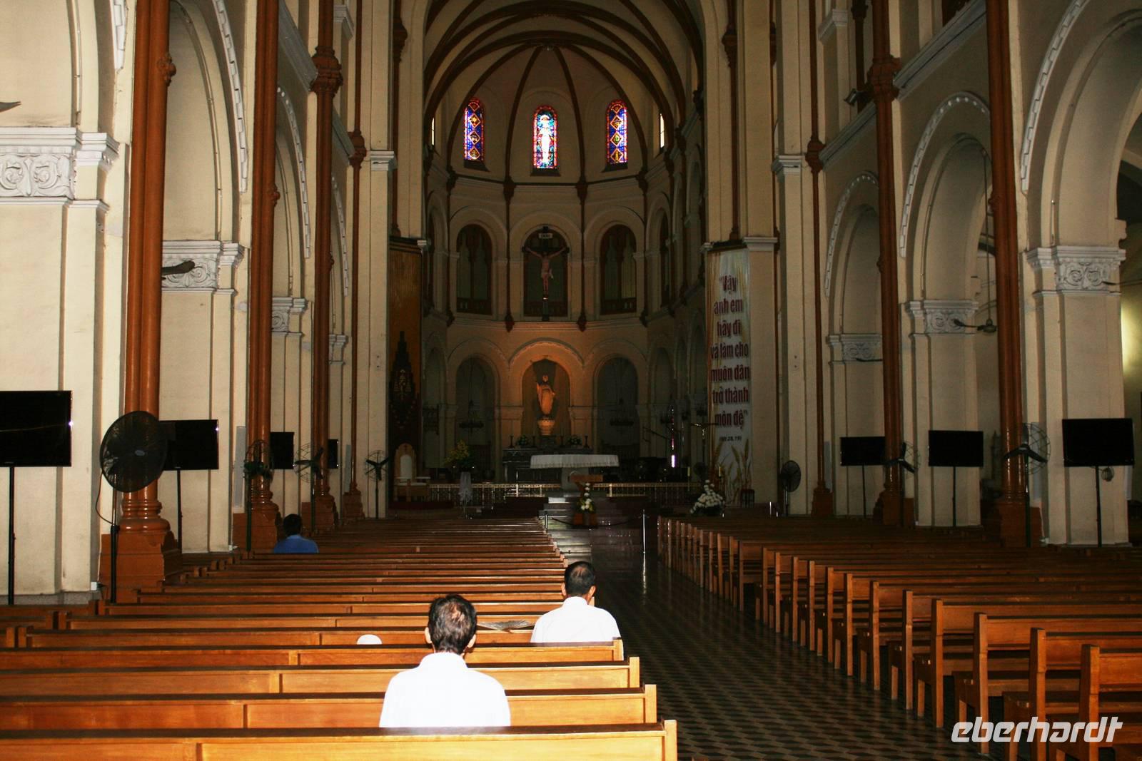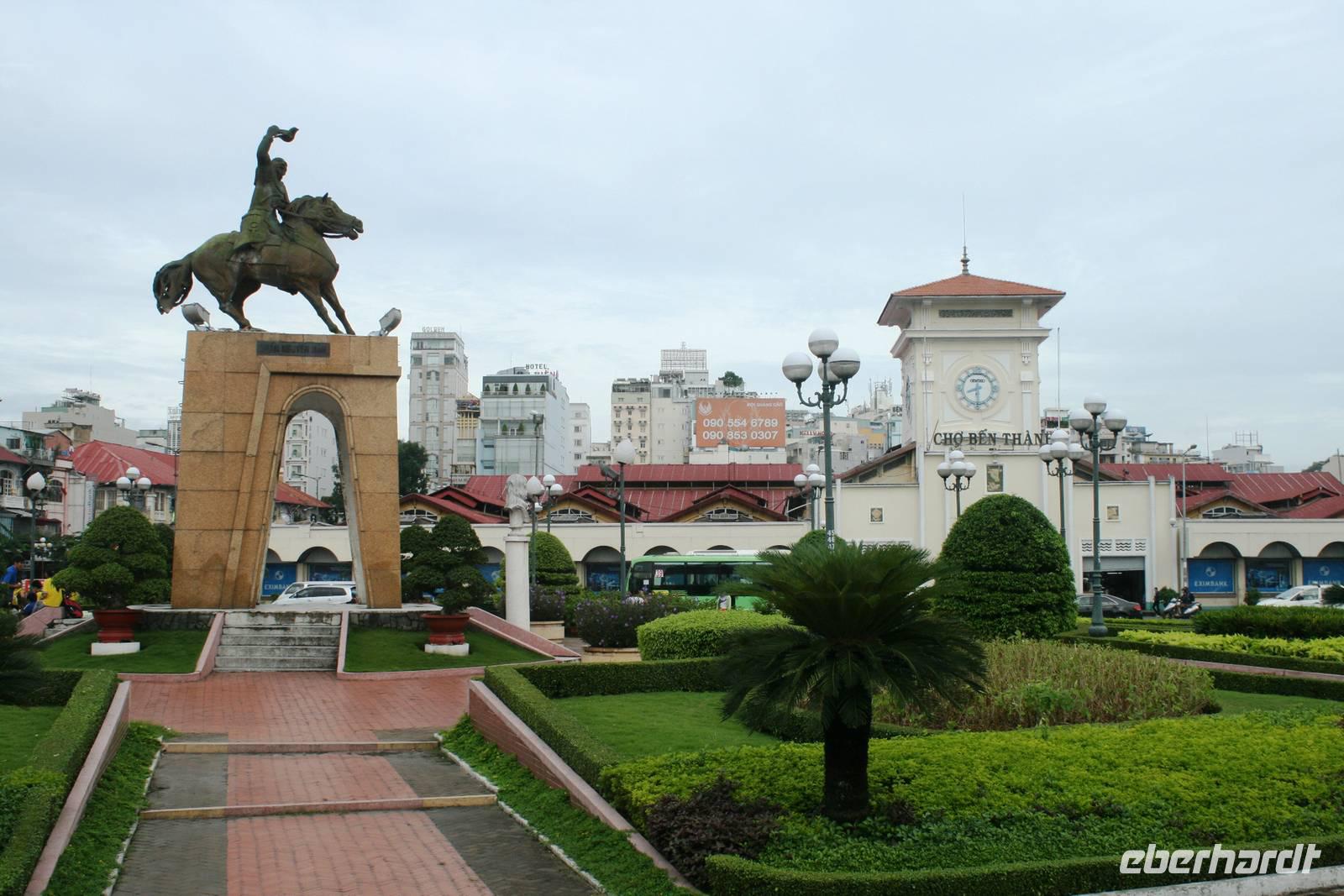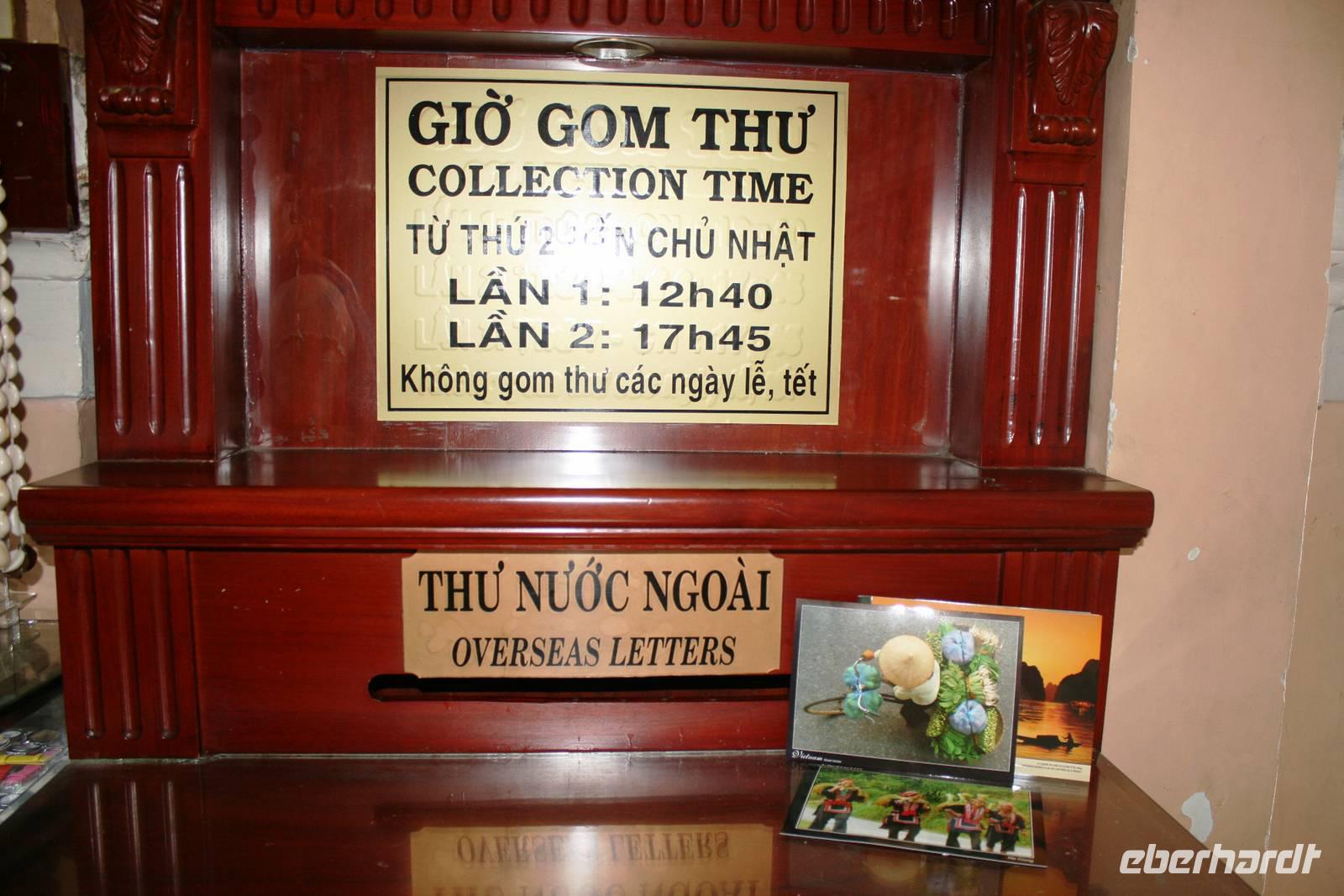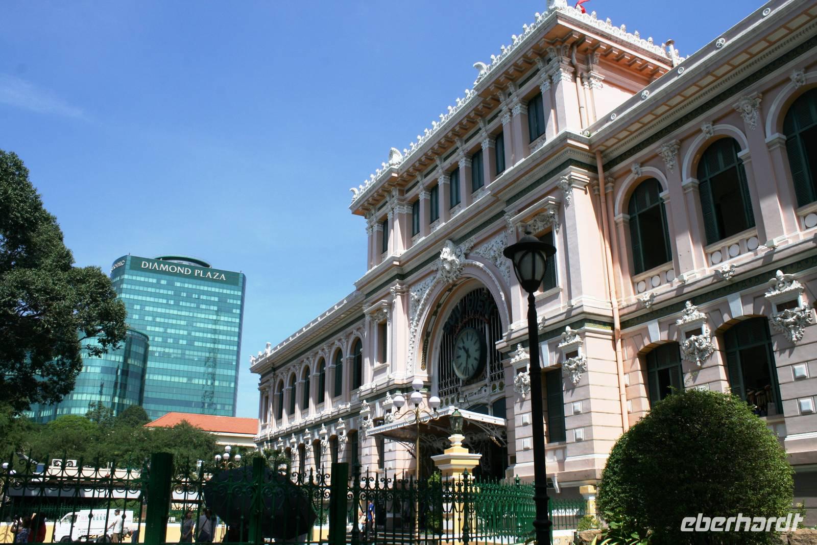 Nach einem guten Frühstück begannen wir unsere Besichtigungstour durch Saigon. Als erstes stand der ausführliche Besuch des Präsidantenpalastes auf dem Programm. Anschließend fuhren wir zur berühmten Kathedrale "Notre Dame". Doch unsere Aufmerksamkeit richtete sich mehr auf die vielen Hochzeitspaare an der Kirche, die hier ihre Fotoshootings zelebrierten. Warum nicht mal grazil an die Kirchenmauer lehnen oder auf dem Zebrastreifen posieren! Visavis befindet sich das alte Postamt, ein wunderschönes Kolonialgebäude. Hier wurden Postkarten und Briefmarken gekauft, gleich geschrieben und in den großen Postkasten geworfen (meine sind übrigens schon zu Hause angekommen). Wir begrüßten den 95jährigen Übersetzer und Briefeschreiber, der wie seit vielen, vielen Jahren auch an diesem Tag an seinem angestammten Platz im Postamt saß und seine Dienste anbot. Nach Altem folgte Neues: Gleich um die Ecke befindet sich das "Hard Rock Cafe", wo alle ausgiebig shoppten. Anschließend besuchten wir die Pagode des Jadekaisers, einer der aktivsten und bedeutendsten Tempel des Daoismus in Vietnam. Am Eingang wurden Schildkröten zum Kauf angeboten, die sich dann meist im Teich des Tempels zu Gleichgesinnten gesellten. Dieser Ritus verspricht ein langes Leben, aber sicher nicht für die Schildis.