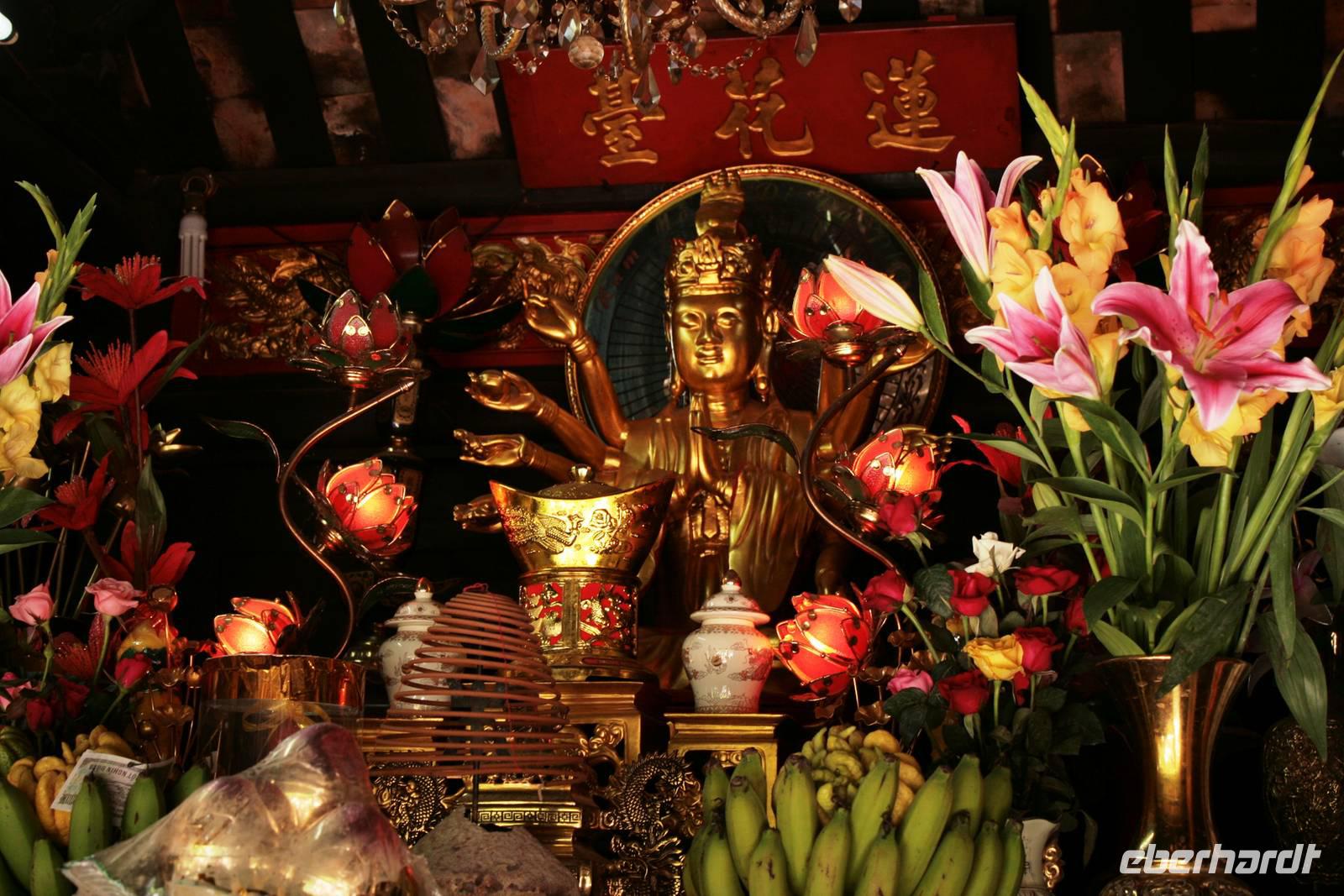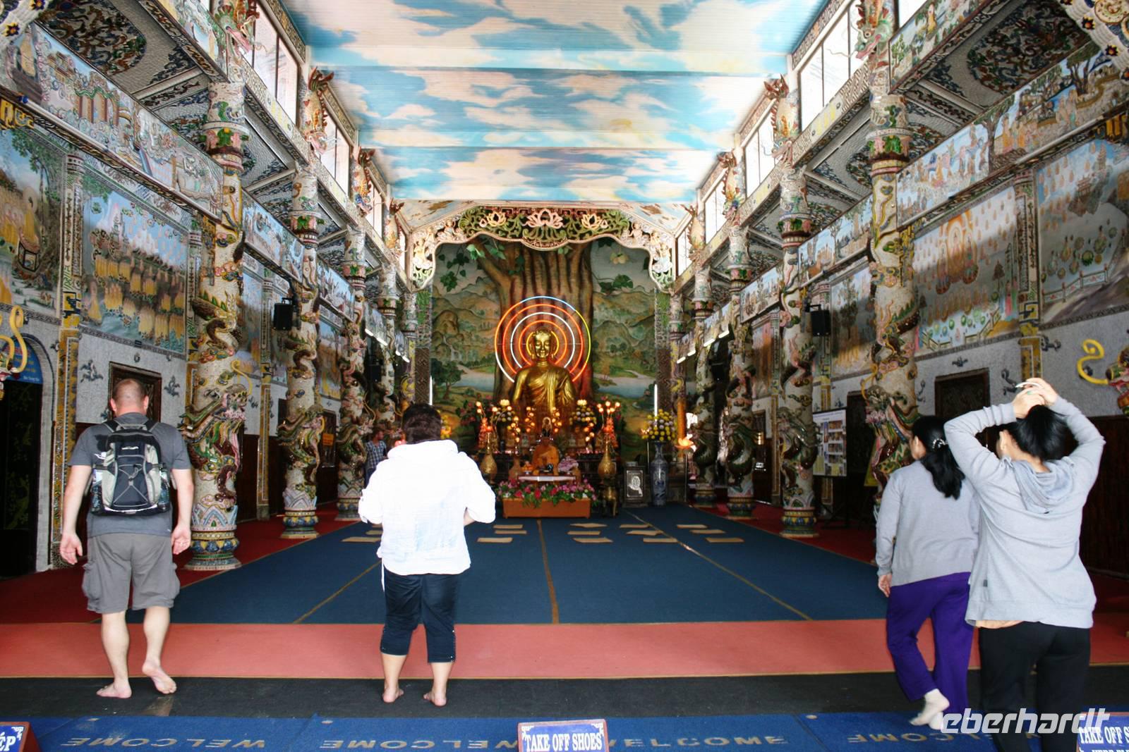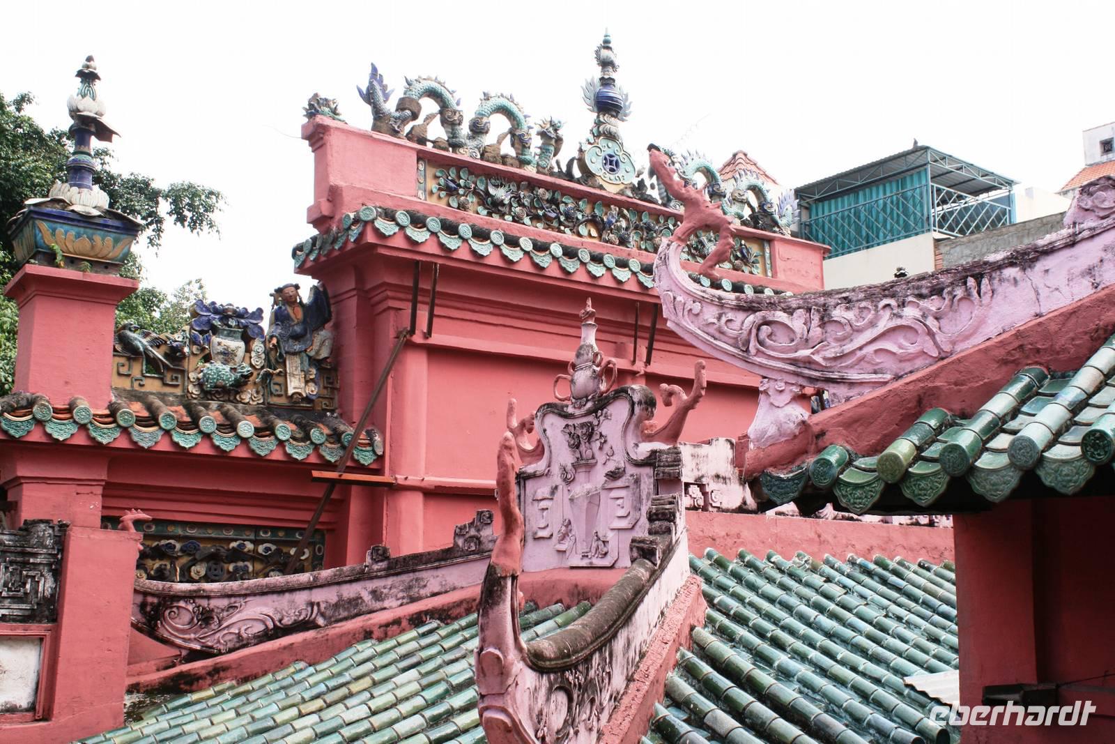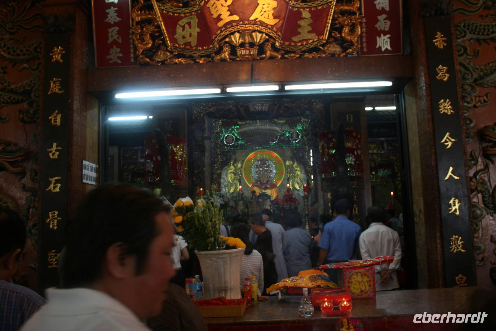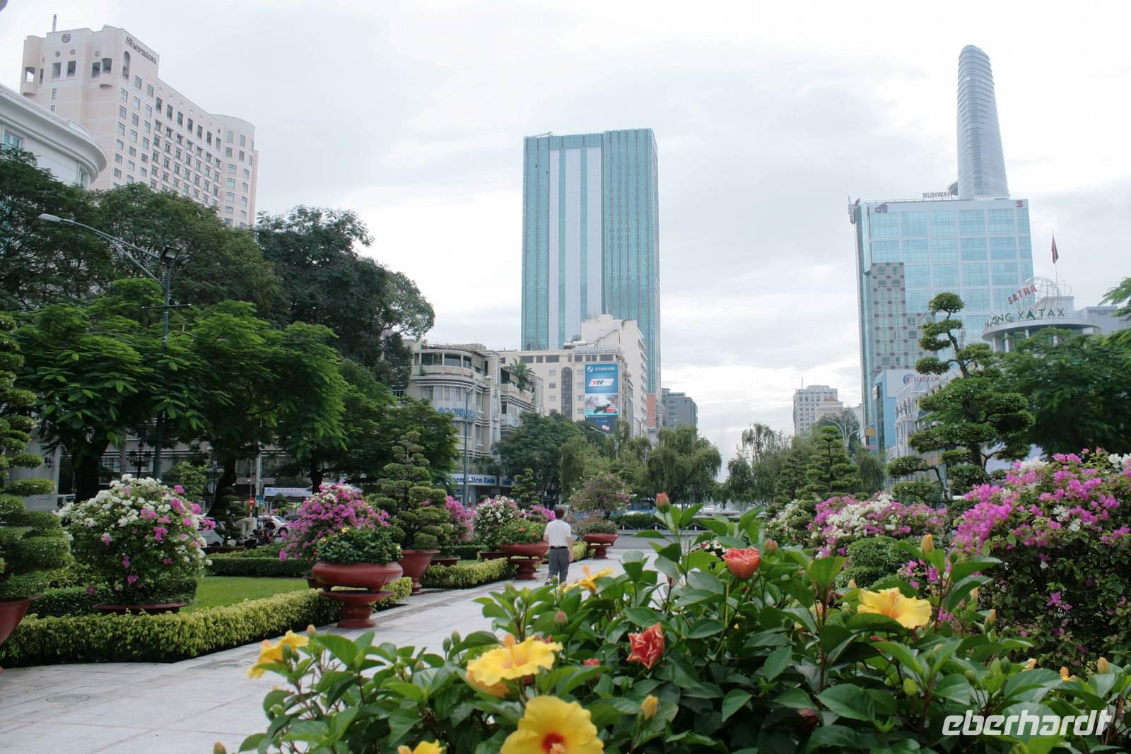 Nach einem guten Frühstück begannen wir unsere Besichtigungstour durch Saigon. Als erstes stand der ausführliche Besuch des Präsidantenpalastes auf dem Programm. Anschließend fuhren wir zur berühmten Kathedrale "Notre Dame". Doch unsere Aufmerksamkeit richtete sich mehr auf die vielen Hochzeitspaare an der Kirche, die hier ihre Fotoshootings zelebrierten. Warum nicht mal grazil an die Kirchenmauer lehnen oder auf dem Zebrastreifen posieren! Visavis befindet sich das alte Postamt, ein wunderschönes Kolonialgebäude. Hier wurden Postkarten und Briefmarken gekauft, gleich geschrieben und in den großen Postkasten geworfen (meine sind übrigens schon zu Hause angekommen). Wir begrüßten den 95jährigen Übersetzer und Briefeschreiber, der wie seit vielen, vielen Jahren auch an diesem Tag an seinem angestammten Platz im Postamt saß und seine Dienste anbot. Nach Altem folgte Neues: Gleich um die Ecke befindet sich das "Hard Rock Cafe", wo alle ausgiebig shoppten. Anschließend besuchten wir die Pagode des Jadekaisers, einer der aktivsten und bedeutendsten Tempel des Daoismus in Vietnam. Am Eingang wurden Schildkröten zum Kauf angeboten, die sich dann meist im Teich des Tempels zu Gleichgesinnten gesellten. Dieser Ritus verspricht ein langes Leben, aber sicher nicht für die Schildis.