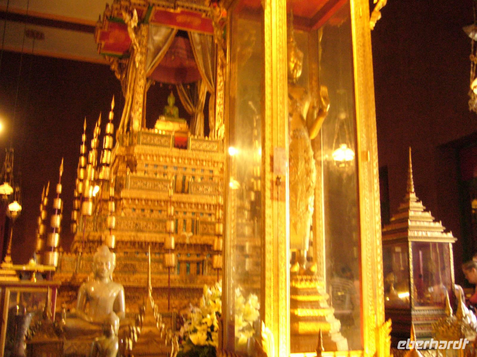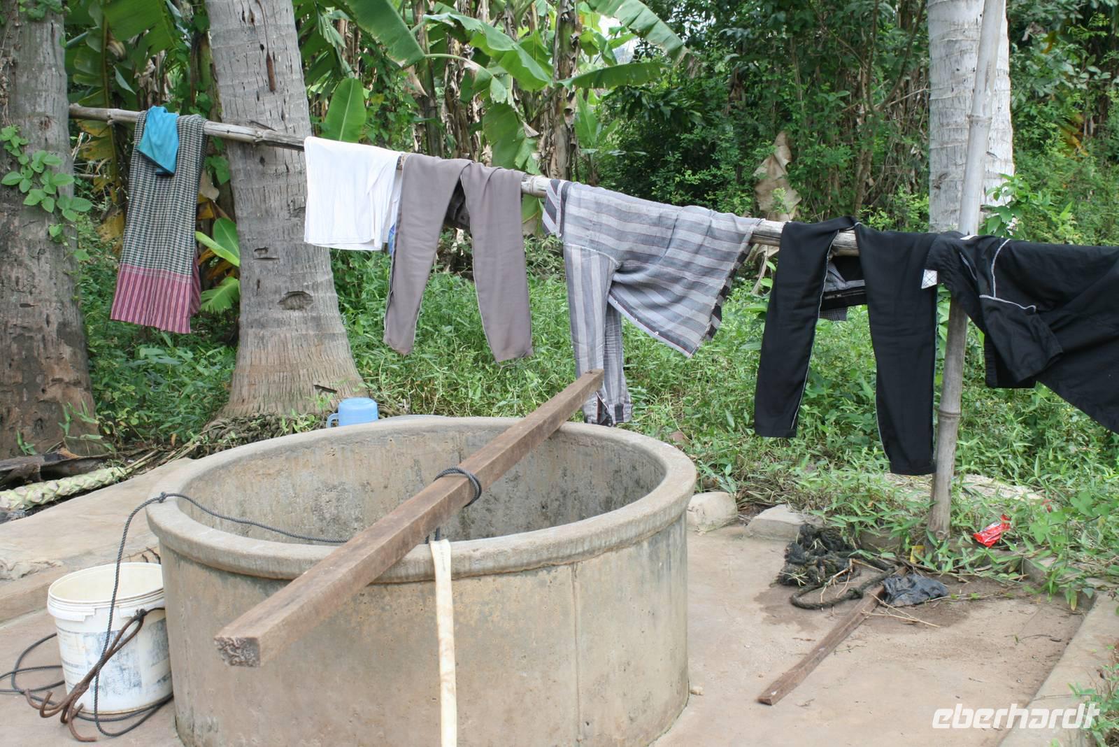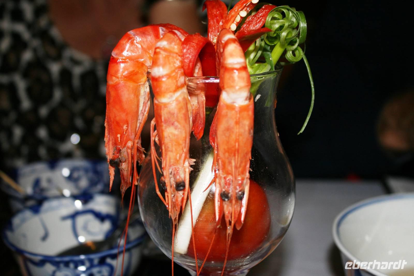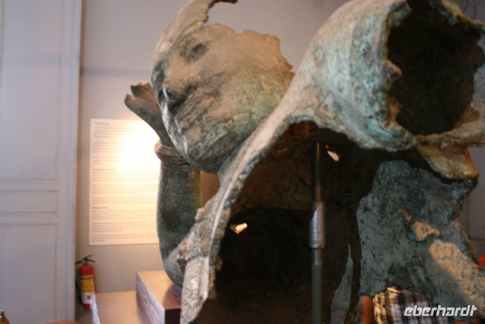 Der frühe Vogel fängt den Wurm - Heute mußten wir zeitig aufstehen, denn wir hatten eine fast 5stündige Fahrt mit dem Schnellboot auf dem Mekong nach Phnom Penh in Kambodscha vor uns. Mit einem musikalischen Ständchen verabschiedeten wir uns offiziell von unserer liebgewonnen Huong und unseren Busfahrern. Dann ging es zum Hafen, wo uns die nette Hang, die uns bis Phnom Penh gegleitete, bereits erwartete und in Schwimmwesten hüllte. Unsere Koffer wurden unter Deck verladen, noch ein kurzes WinkeWinke und schon starteten wir. Ca. 140 km Wasserweg trennten uns von der kambodschanischen Hauptstadt. Das Boot war relativ komfortabel und neben 4 anderen Gästen hatten wir das Schiff fest in Eberhardt-Hand. Dann der Schreck an Deck, ein blass gewordener Reisegast vermisste seine Kamera. Also schnell unsere Huong angerufen, dass sie gleich im Bus und Hotel nachschaute. Danke auch für das Verständnis der Crew, die sofort zum Hafen zurück düste. Am Kai stand eine aufgeregte Huong ohne Kamera. Annett sprang von Bord und überzeugte sich noch einmal selbst im Bus, während dessen Huong noch einmal mit dem Hotel telefonierte. Alles ohne Erfolg. Zurück an Bord sahen wir einen glücklich strahlenden Reisegast mit seiner Kamera, die sich in den Tiefen seiner Hosentasche versteckt hatte. Puh, alles paletti und die bildhaften Urlaubsbilder der vergangenen Tage waren gerettet. Ja, die moderne Technick wird immer kleiner, früher waren die Kameras noch eine zu tragende "Last" und hätten nie in Hosentaschen gepasst! Also nun begann die Fahrt von neuem. Unterwegs wurden wir mit Getränken, Obst und einem leckeren Imbiss bewirtet. Hang und Annett übernahmen den Bordservice. An der vietnamesischen Grenze mußten alle kurz aussteigen, die Pause nutzten wir gleich für einen Besuch in der "Halle der Harmonie". Dann ein kleines Stück zur kambodschanischen Grenze, wo wir Dank der perfekten vorabendlichen Vorbereitungen unser Boot nicht verlassen und nicht an den Schaltern anstehen mußten. Hang holte nur unsere abgestempelten Pässe, die wir dann an Bord verteilten. Kurz nach 12 Uhr erreichten wir Phnom Penh, wo uns unser neuer Guide Chan Thou in Empfang nahm. Nach kurzer Fahrt waren wir bereits in unserem Hotel. Aufgrund der frühen Anreisezeit mußten einige Gäste noch etwas auf ihre Zimmer warten. Bis zum Abendessen hatten wir freie Zeit, die wir auch zum Entspannen am Swimming Pool nutzen konnten. Doch fast die gesamte Gruppe entschied sich, das berüchtigte Völkermordgefängnis Tuol Sleng zu besuchen, wo die für uns nicht vorstellbare Schreckensherrschaft der roten Khmer sehr bildlich dokumentiert ist. Vorher war es eine höhere Schule, bis es Diktator Pol Pot in seinem Wahn zur Folterkammer ausbaute. Unser Guide Chan Tou hat die Schreckensherrschaft der roten Khmer selbst erlebt: schwerste Kinderzwangsarbeit, getrennt von seinen Eltern, leisten müssen und viele Verwandte verloren. Seine authentischen Erzählungen während der Besichtigung gingen uns sehr unter die Haut, ebenso die persönliche Begegnung mit Chum Mey, einem der wenigen Überlebenden des KZs. Was da, Ende der 80er Jahre, keine 15 Jahre vor dem Mauerfall unter dem Deckmantel "Kommunismus" geschah, ist schwer begreifbar. Über 3 Mio Kambodschaner kamen ums Leben. Wir waren tief bewegt. Das Abendessen nahmen wir im bekannten Restaurant "Khmer Surin" ein. Das Essen schmeckte, aber die Getränkepreise gefielen uns weniger. Am Ende des erlebnisreichen Tages stossen wir mit "Bing Bing, Bing" und Mekong Whisky an.