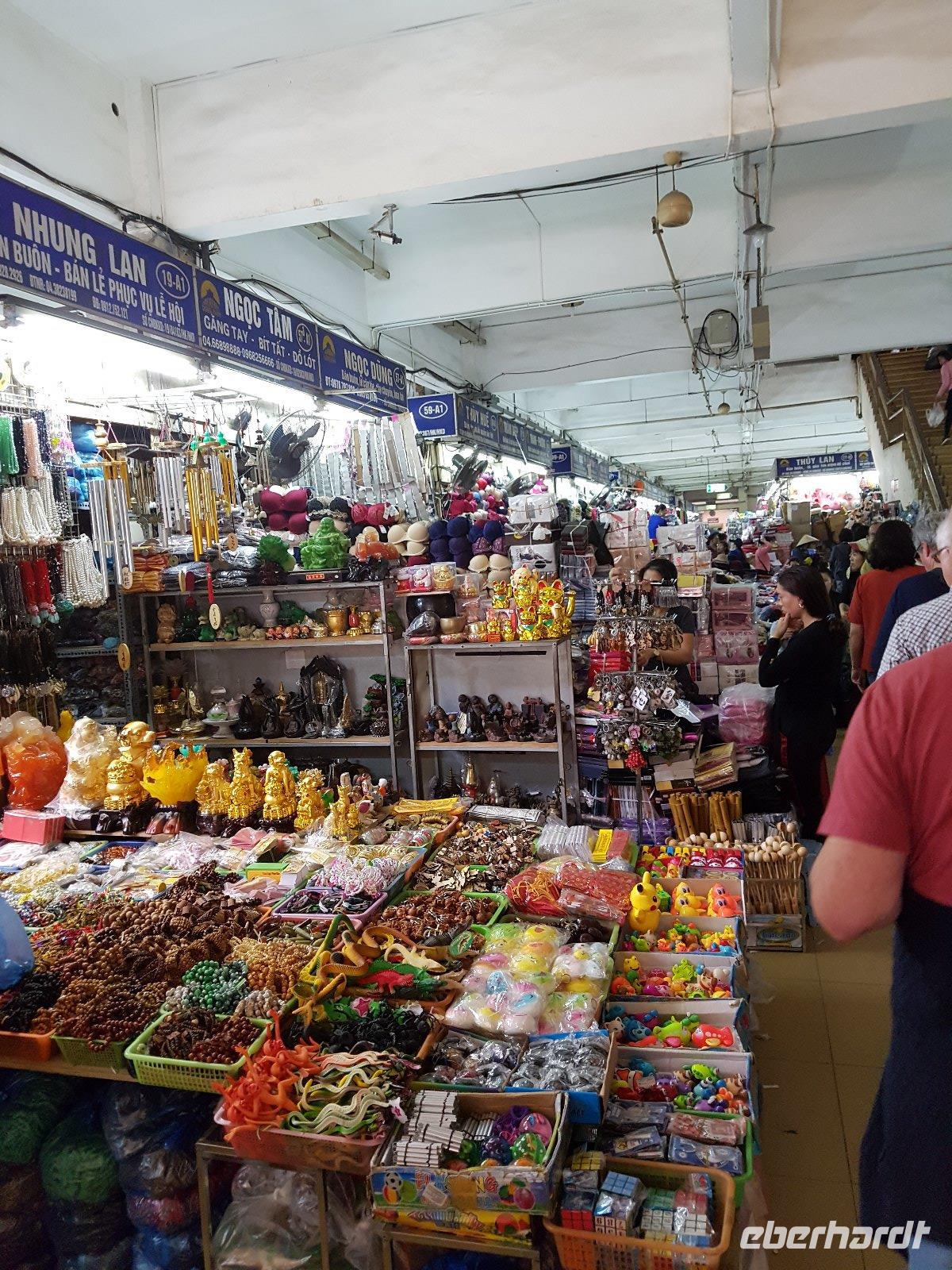 Trong nahm uns am Flughafen in Empfang und zeigt uns zunächst den chinesischen Stadtteil Cho Lon. Obgleich wir nun schon einige Märkte in Vietnam besucht haben, überwältigt uns der hiesige Markt; laut, turbulent, farbenfroh und wahrscheinlich nur mit europäischen Augen betrachtet chaotisch.