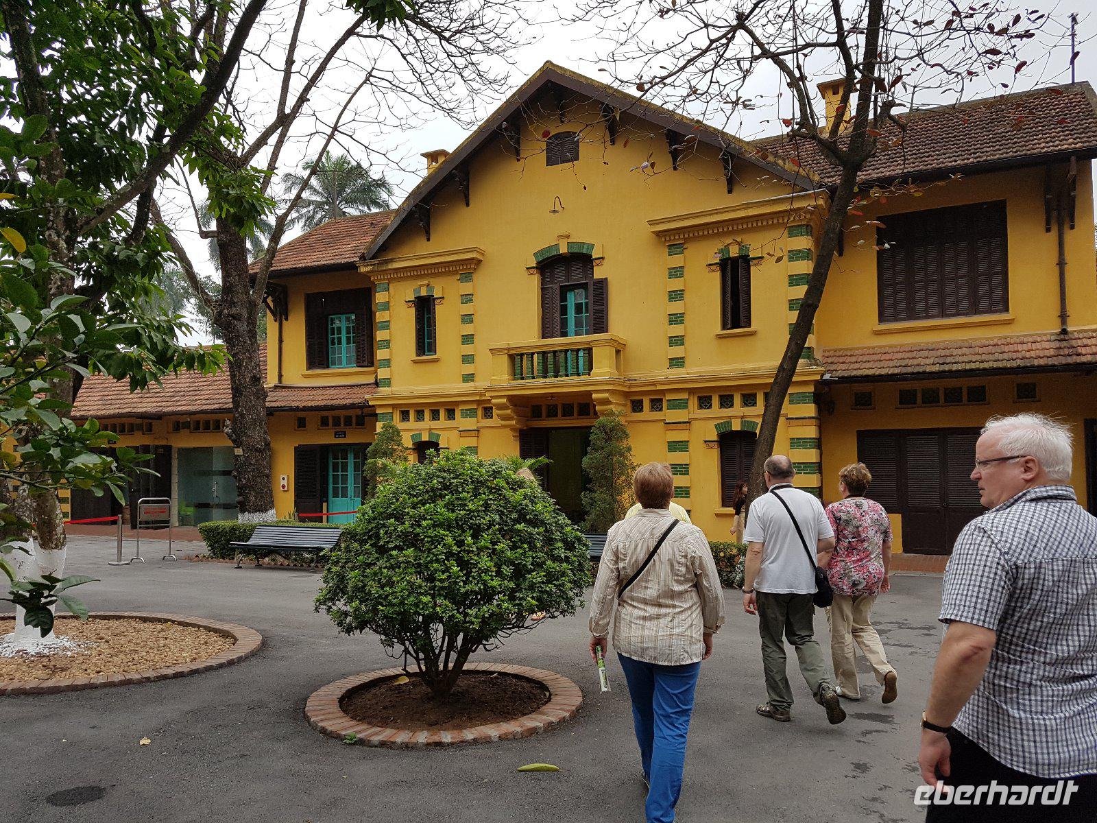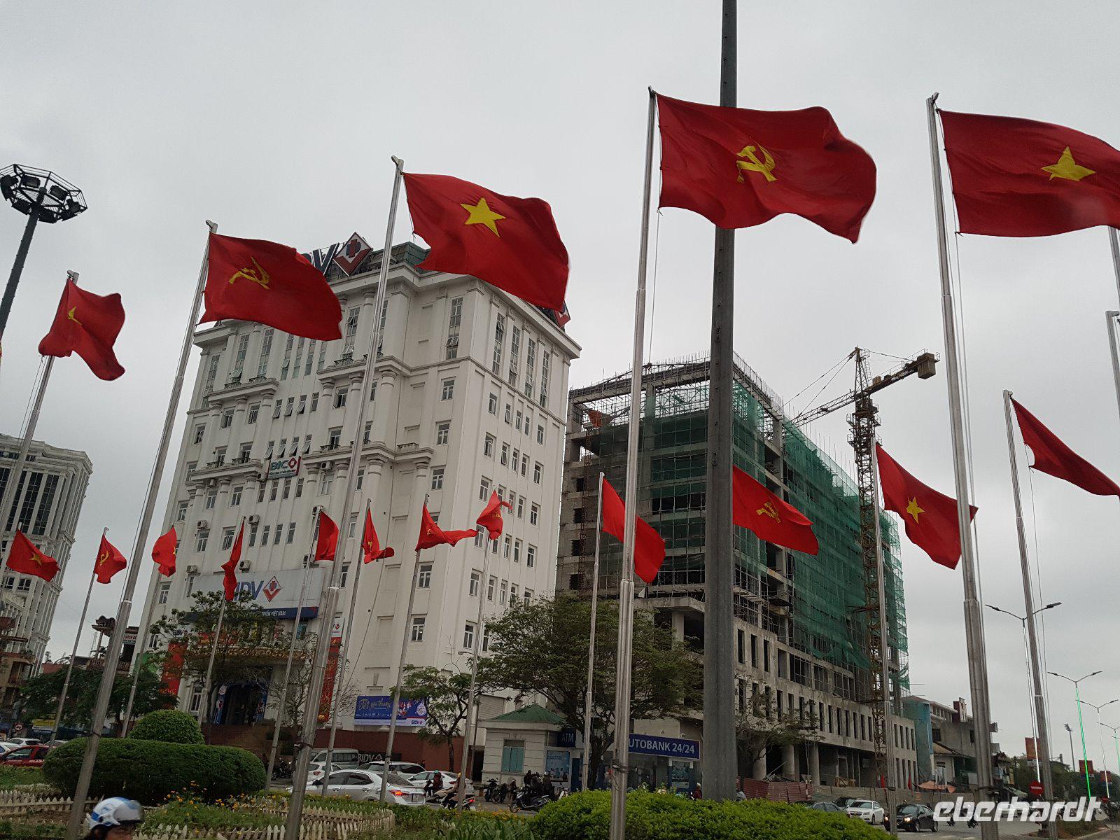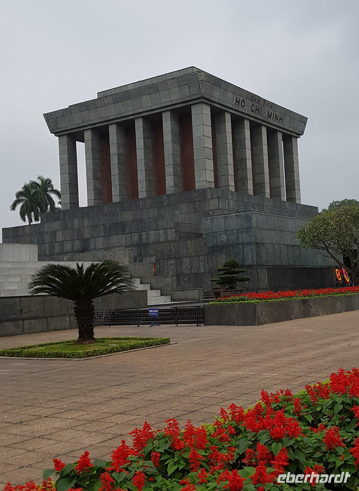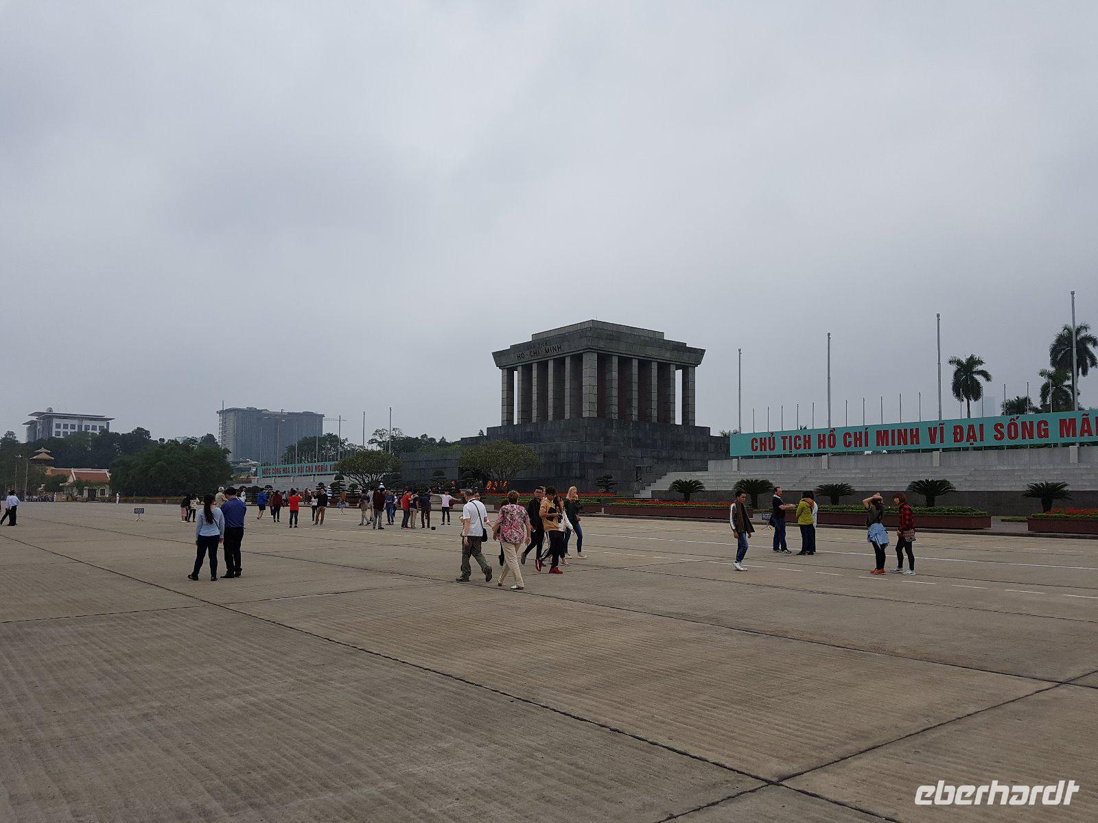 Zunächst zum meistbesuchten Bauwerk Hanois, dem Ho Chi Minh-Mausoleum. Brav in die Schlange gestellt und mit ernstem Gesicht an „Onkel Ho" vorbeimarschiert. Wirkt auf uns etwas wie Pflichttermin und irgendwie seltsam, die vielen Vietnamesen die ebenso in der Schlange gehen, zeigen aber welche herausragende Bedeutung der Gründungsvater des sozialistischen Vietnam auch heute noch hat.
