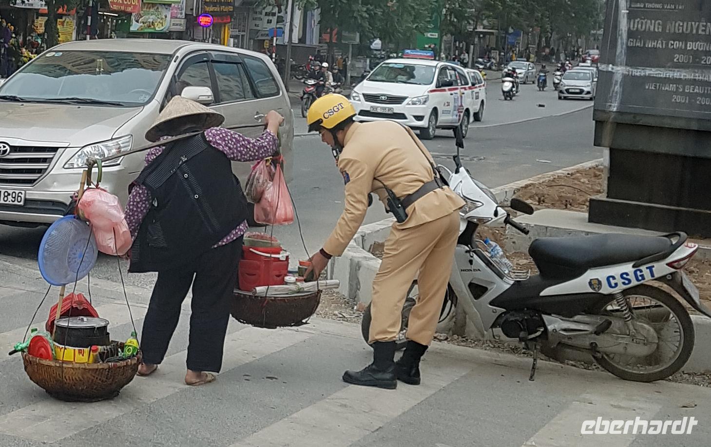Aber „leerer Bauch studiert nicht gern"; freudig nehmen wir daher das Angebot unseres Guides an ein Bun Cha Straßenrestaurant aufzusuchen. Neben Touristen sieht man auch viele Einheimische hier bei preiswerter, äußerst leckerer Nudelsuppe auf niedrigen Stühlen sitzend eine Pause einlegen.