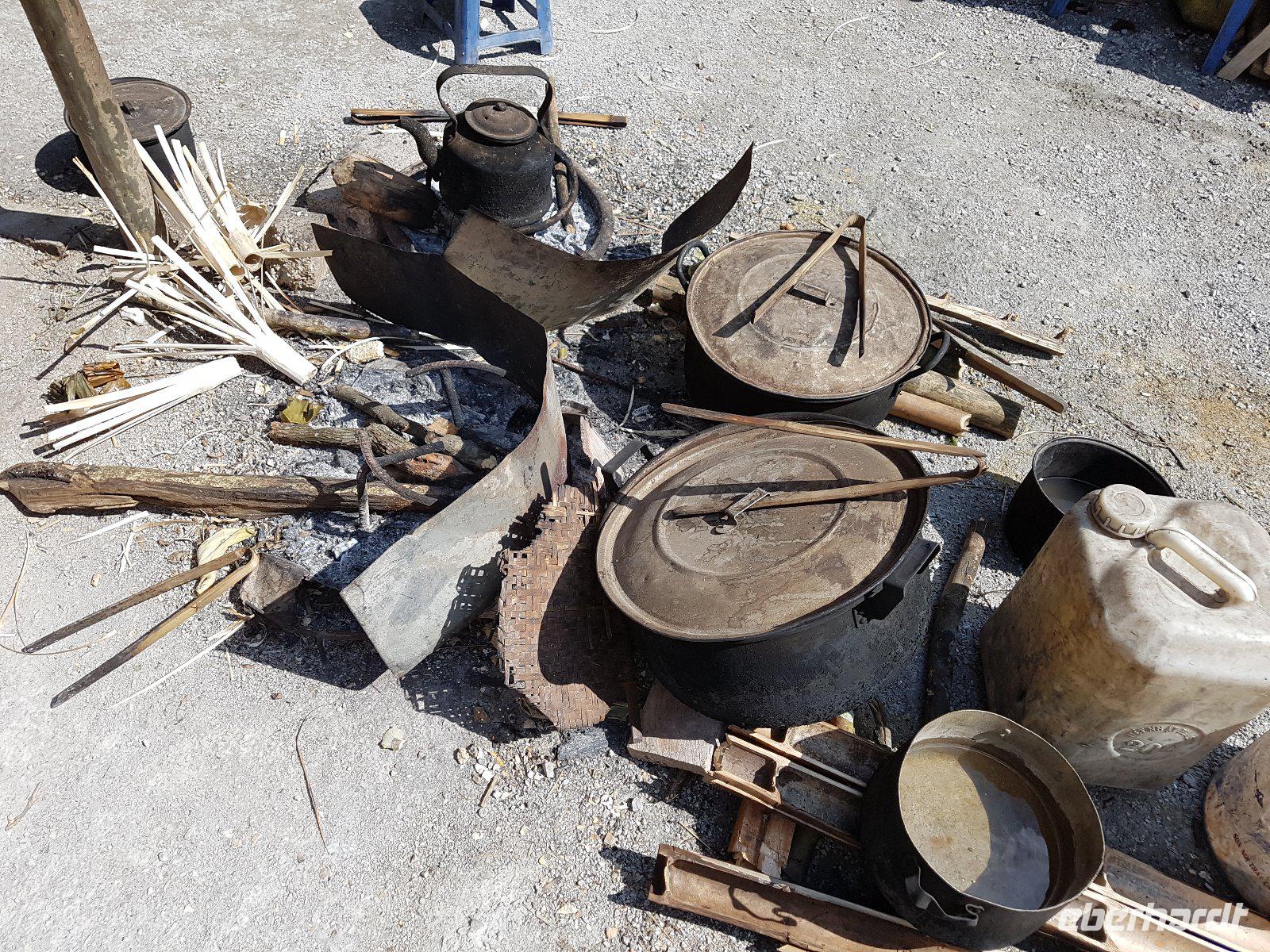 Wir fahren zu einem Dorf in welchem man sich der Gewinnung von Palmzucker verschrieben hat. Min Thol mutiert vom Kunsthistoriker zum „Palmzuckerzapfer".