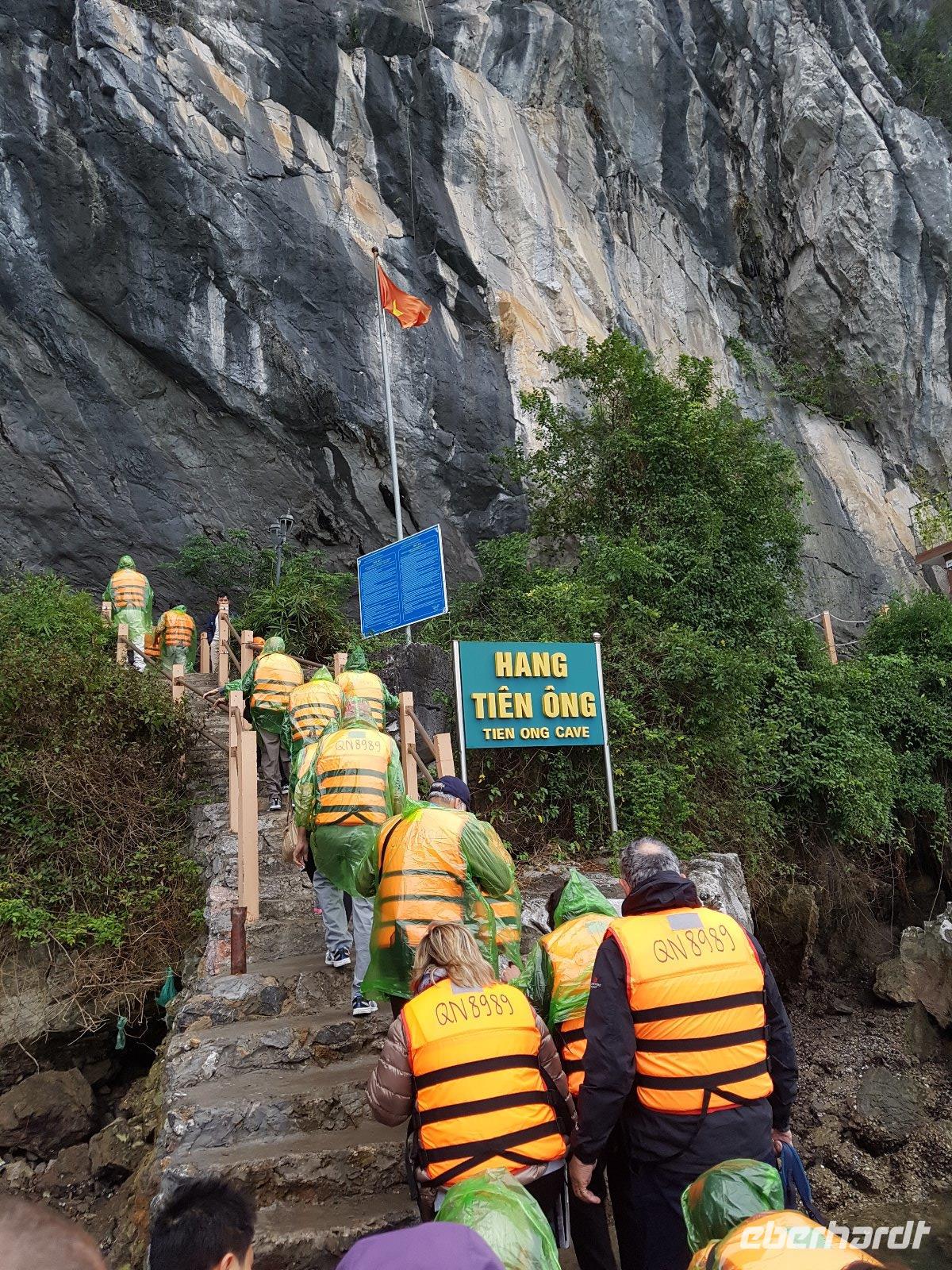 Die bizarre Welt tausender Inseln mit bis zu 100 Meter hohen Karstfelsen und unzähligen Grotten ist die malerische Kulisse unserer Bootsfahrt, die Besichtigung einer dieser Höhlen sollte also nicht fehlen. Das Beiboot bringt uns zur Tien Ong Höhle.