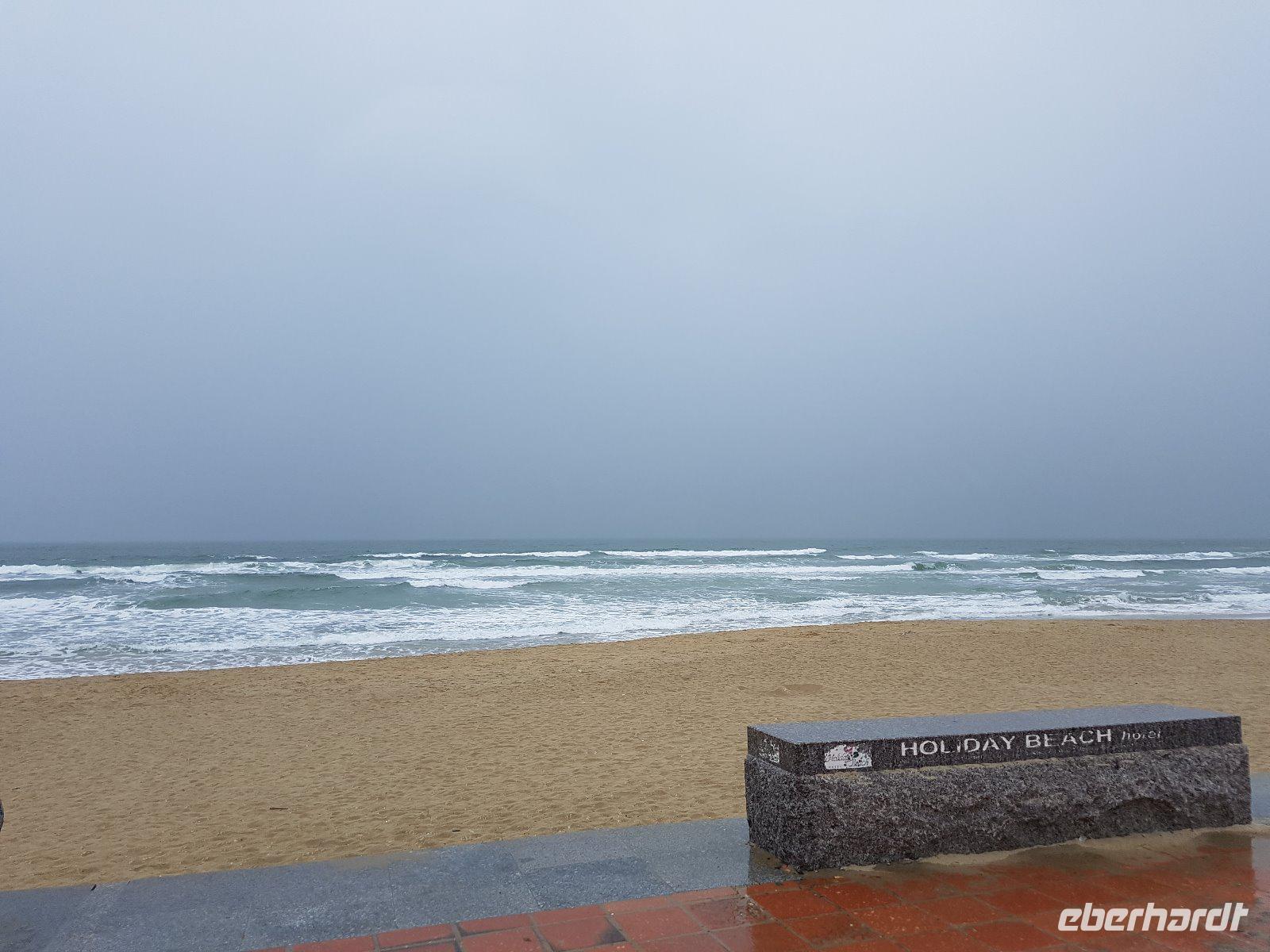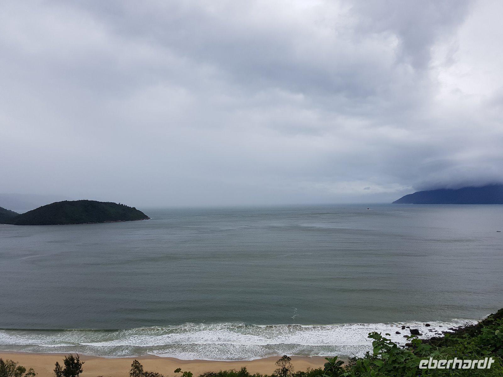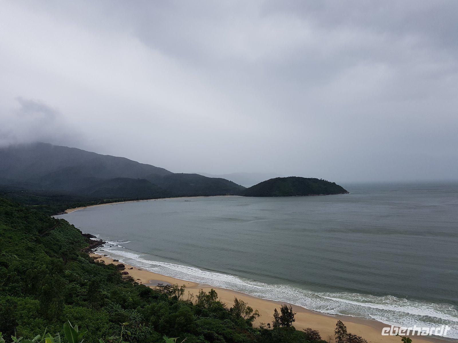 Auf der Fahrt nach Hu? geht es vorbei an den Marmorbergen, später überqueren wir den Wolkenpass. Der 496 Meter hohe Pass trennt Klima, Wetter, Vegetation und Lebensweise innerhalb Vietnams. Leider ist das auch heute so und das Wetter schlägt am Pass drastisch um. Im Regen und vollständig wolkenverhangen der Blick auf den Strand von Lang Co.