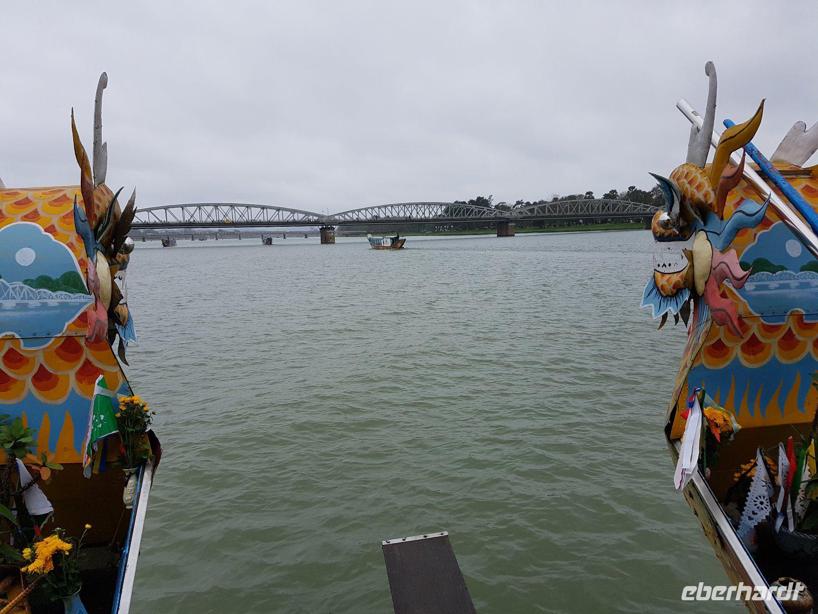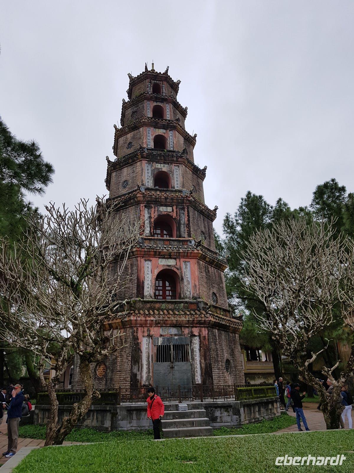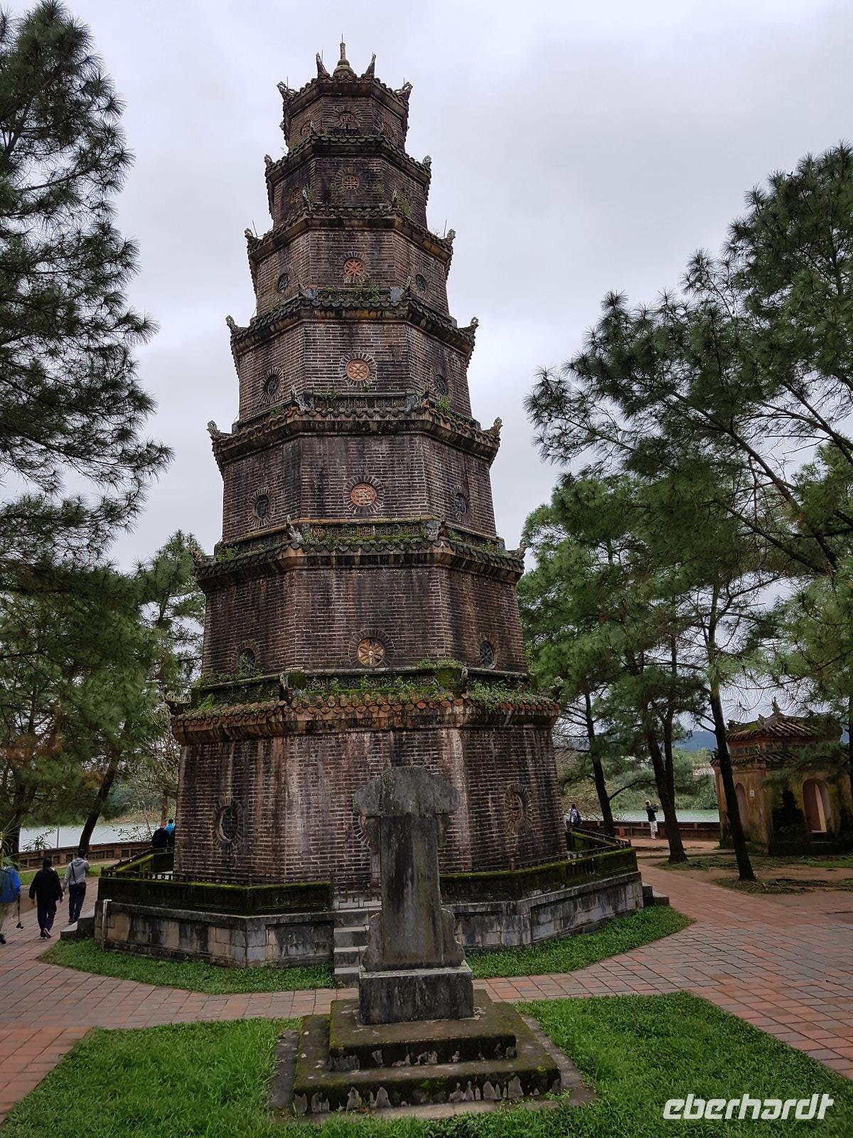 Zunächst aber entscheiden wir uns aber für eine Fahrt im Drachenboot auf dem Parfümfluss. Diese endet am Fuße der Thien Mu-Pagode welche wir nun besichtigen.