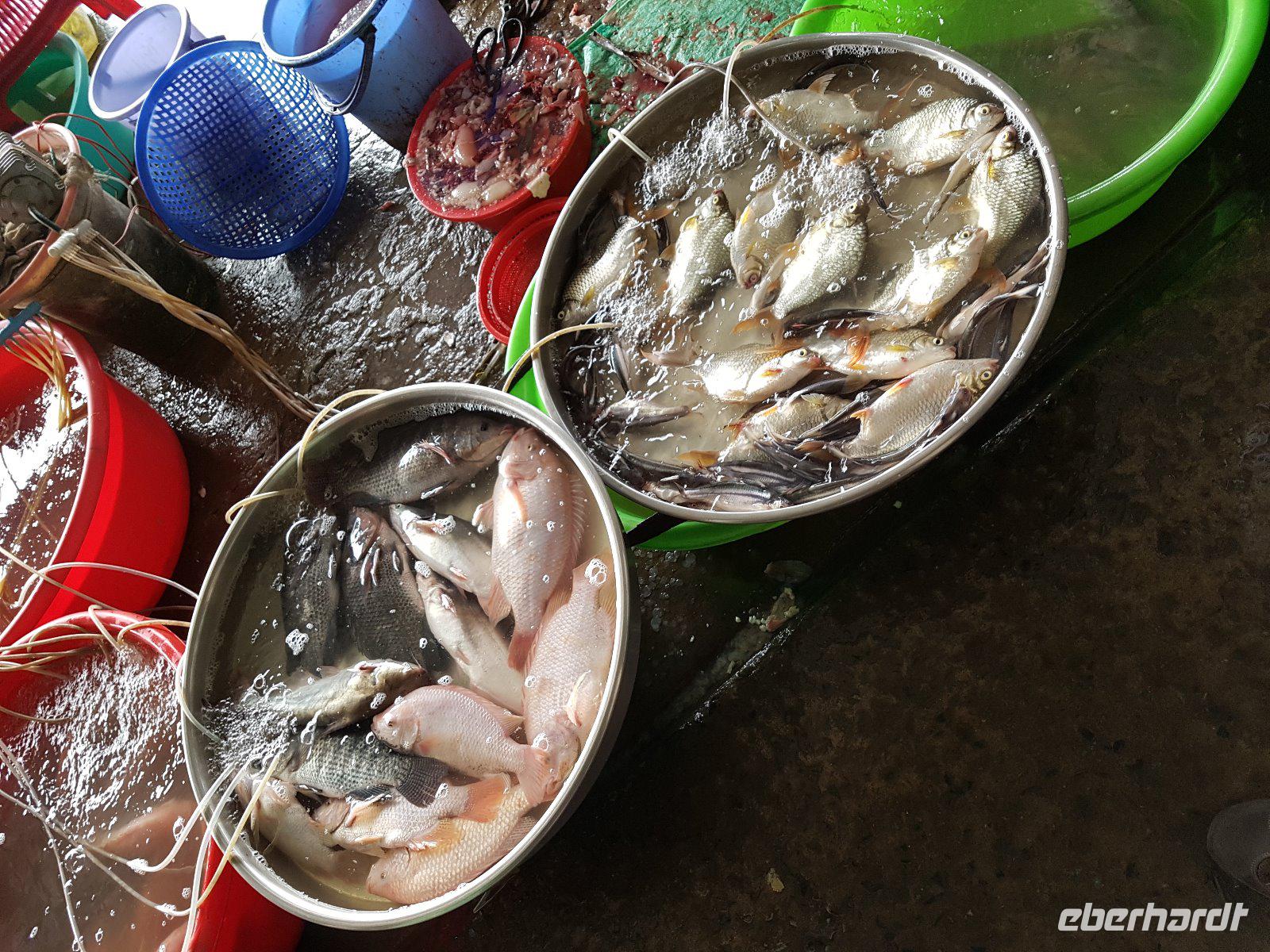 Das Elefantenohr-Fischessen, welches wir in einem lokalen Gartenrestaurant erleben ist schon lecker, wenngleich die eigenwillige Darreichung des Fisches, nur grob entschuppt nicht jeden von uns begeistert.