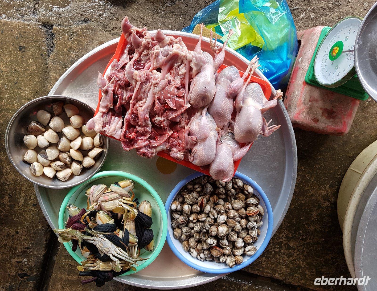 Ein kurzer Besuch des Marktes von Binh Anh wo wir das Schiff wieder verlassen, zeigt uns, dass die Vielfalt der vietnamesischen Küche auch die Zubereitung von Rattenfleisch beinhalten kann. Da wir aber momentan noch nicht hungrig sind geht es mit dem Bus weiter Richtung Chau Doc.