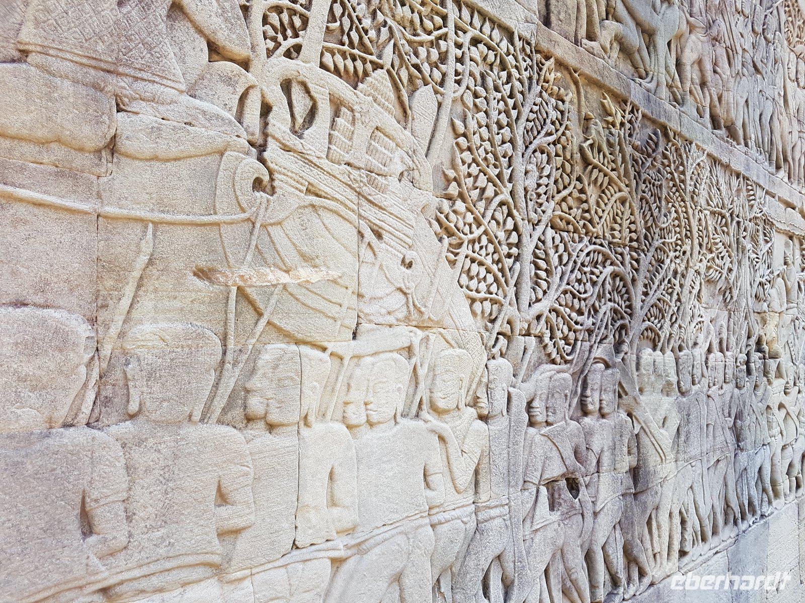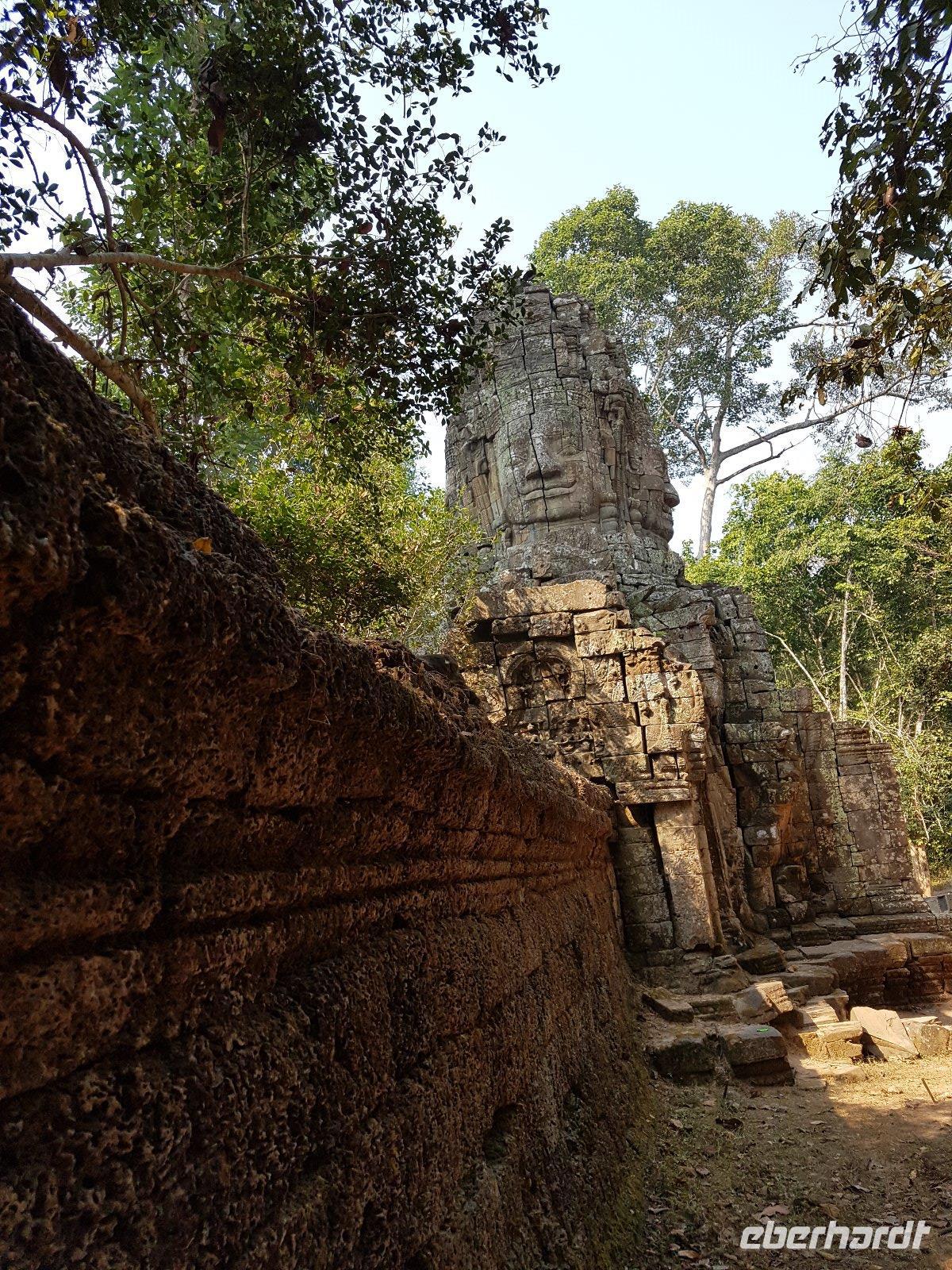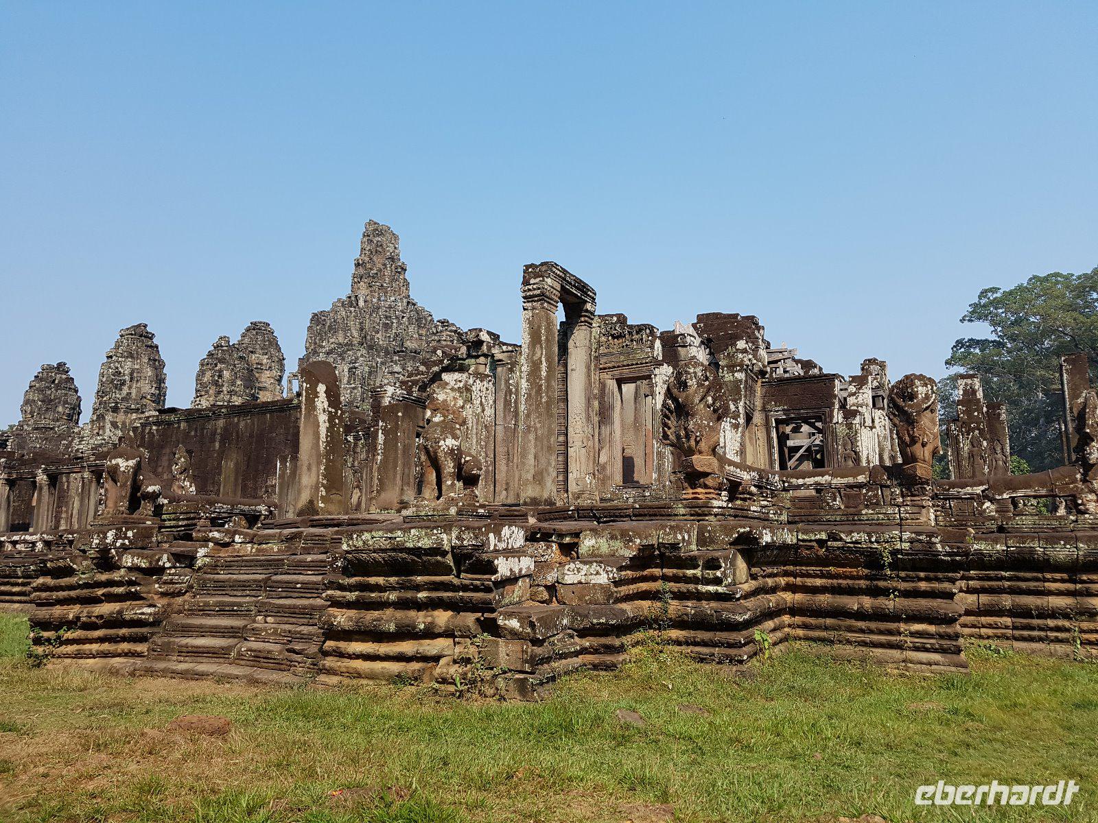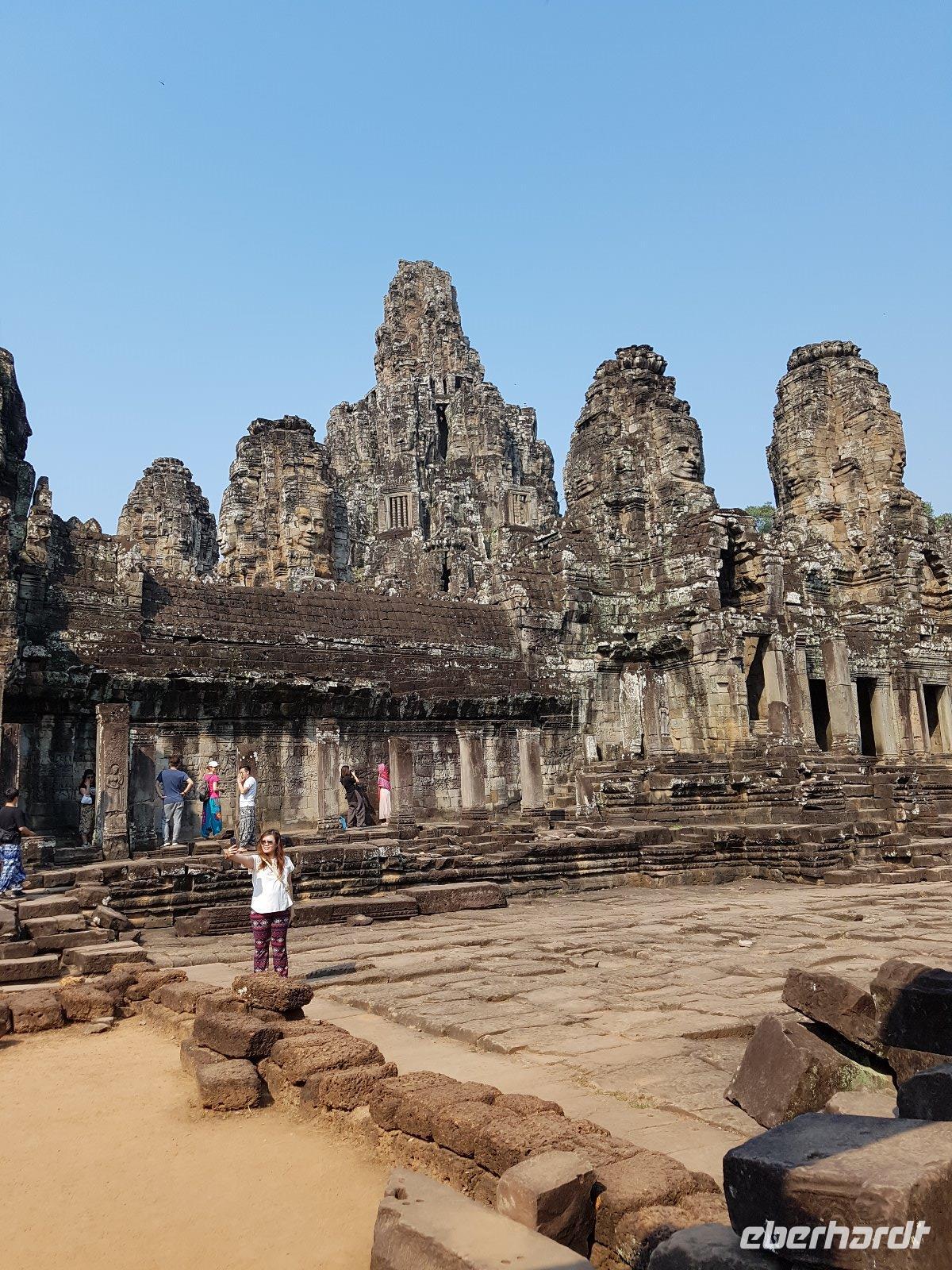 Nicht weniger beeindruckend, die nachmittägliche Besichtigung der phänomenalen Tempelanlage Angkor Thom mit der Elefantenterrasse sowie dem Königstempel Bayon mit meterhohen aus Stein gemeißelten Gesichtern von Lokeshvar.