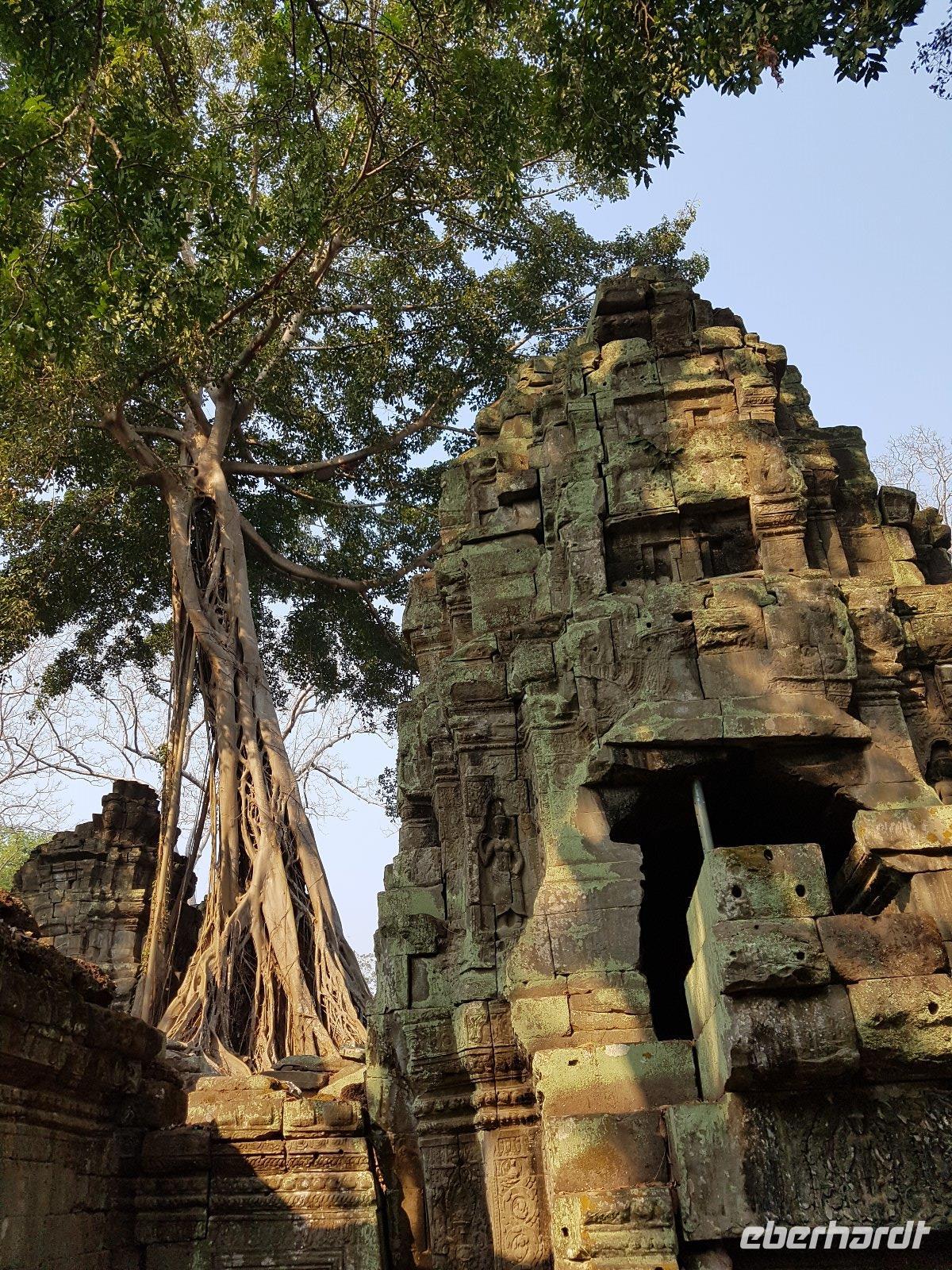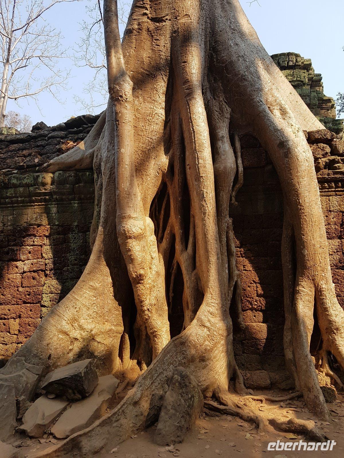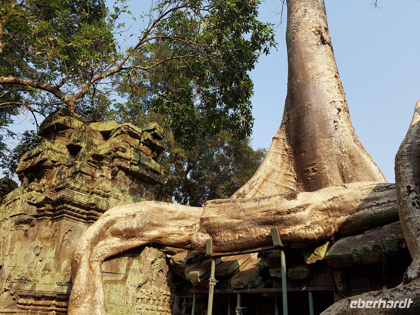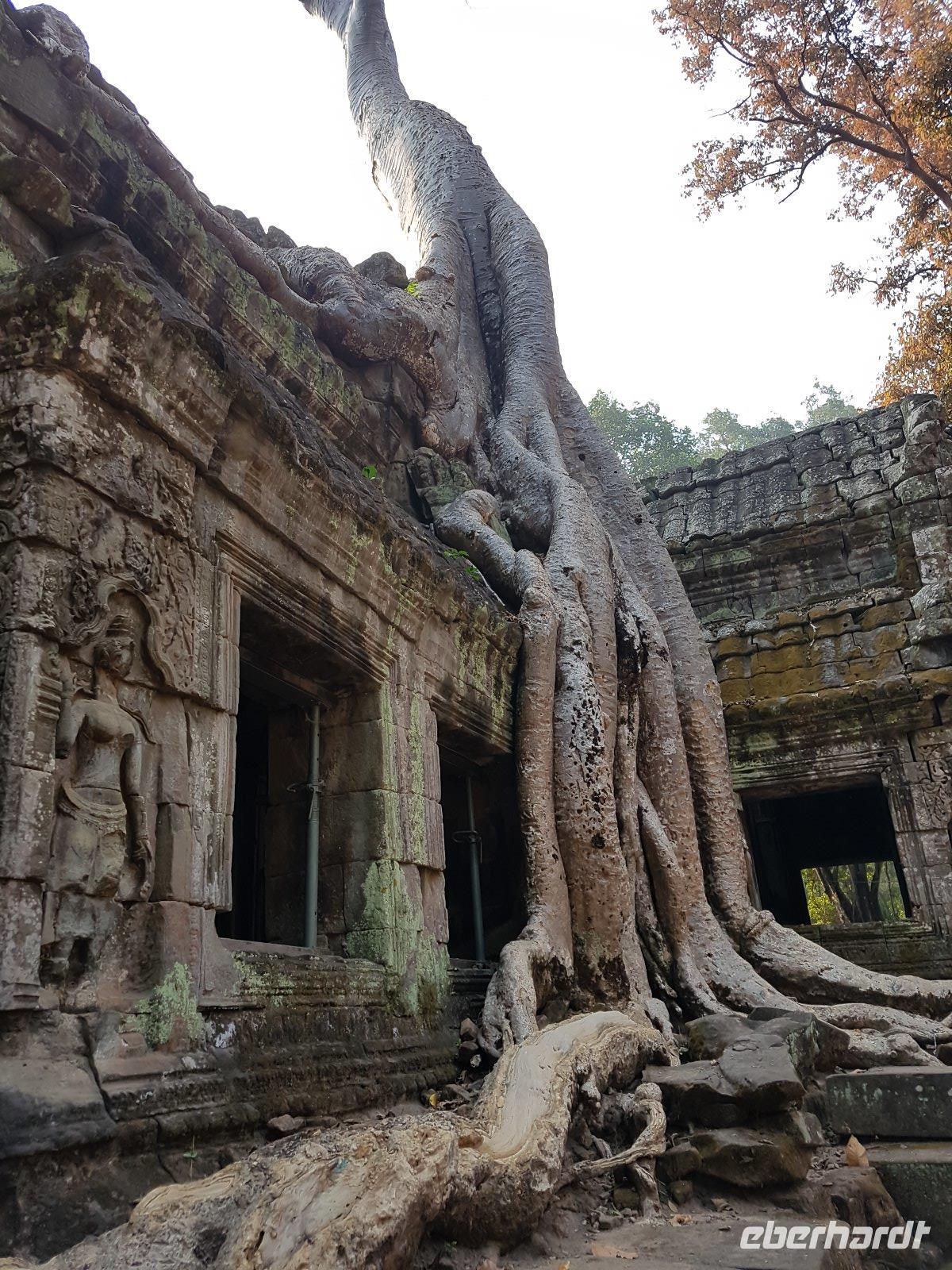 Nicht zuletzt der „Tomb Raider" Verfilmung verdankt der gigantische Dschungeltempel Ta Prohm seine heutige Popularität. Majestätisch stehen die Bäume über den Ruinen, welche sie sich einverleibt haben.