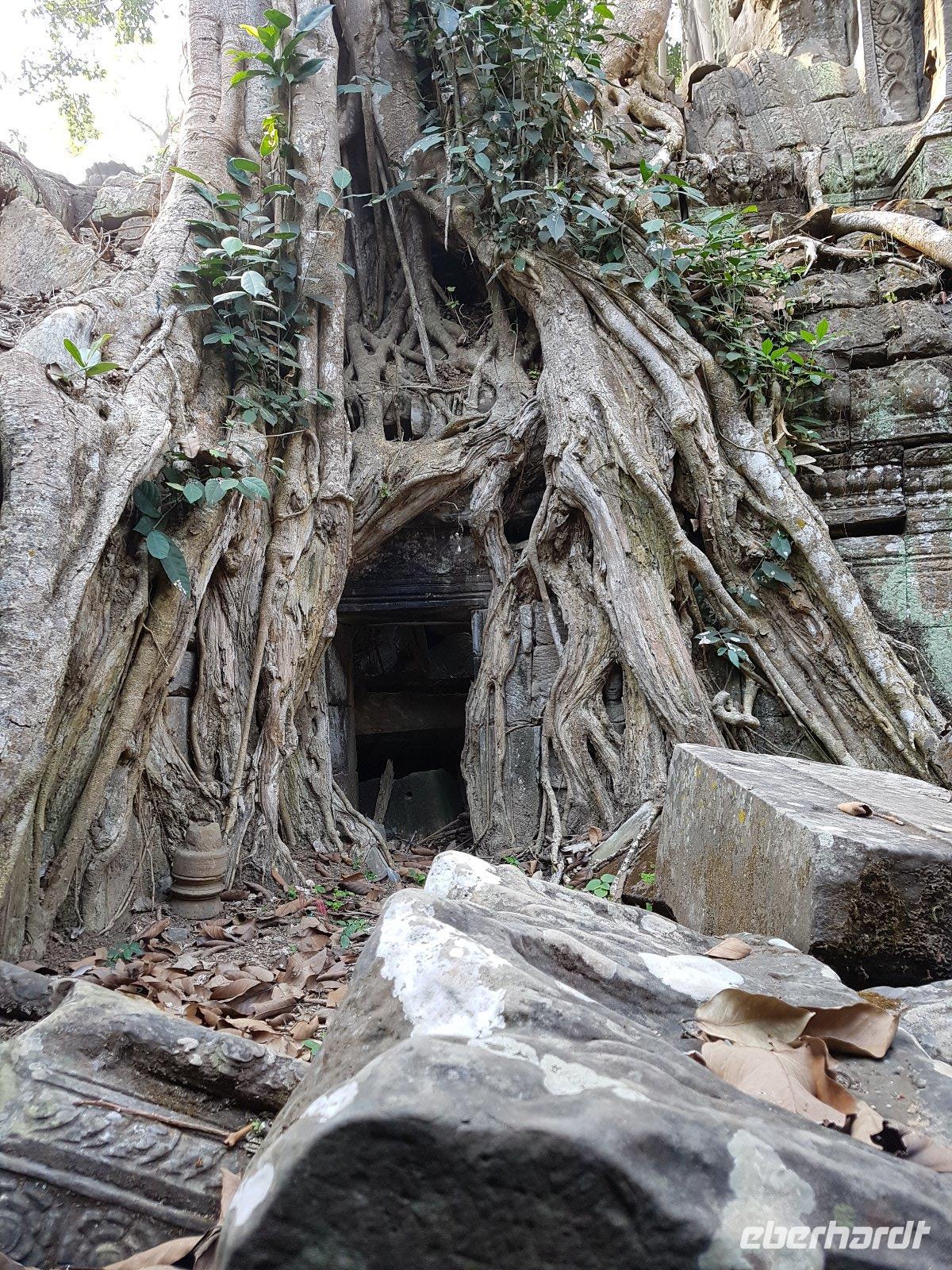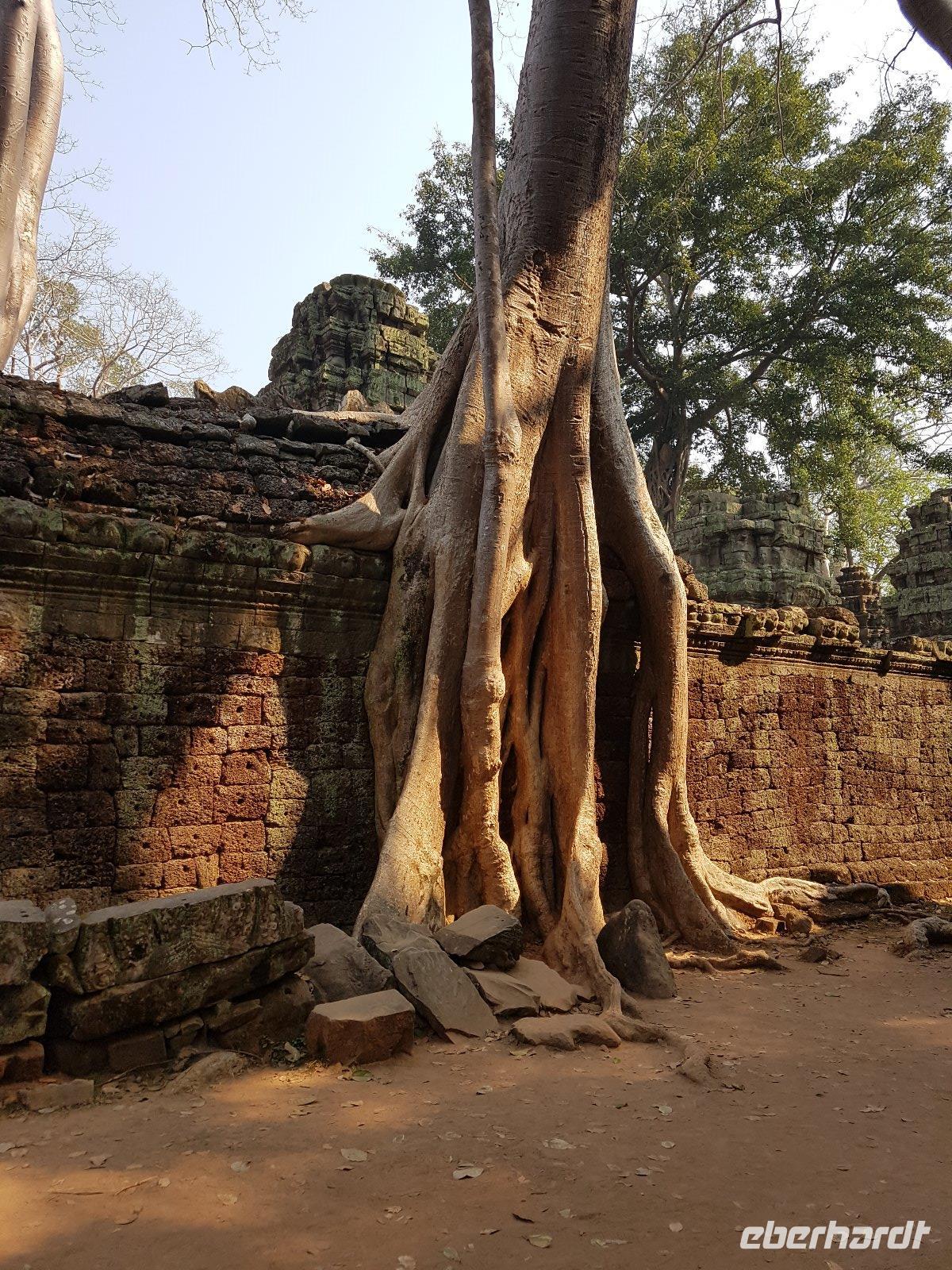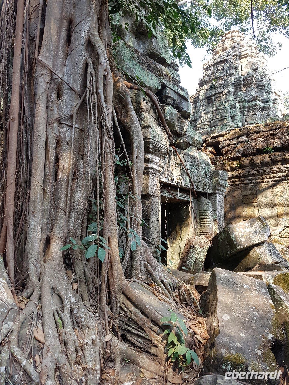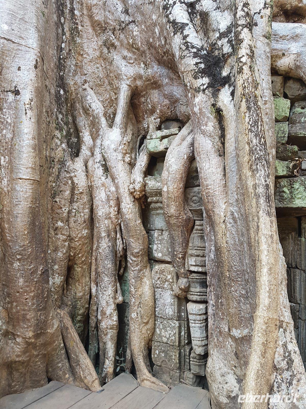 Nicht zuletzt der „Tomb Raider" Verfilmung verdankt der gigantische Dschungeltempel Ta Prohm seine heutige Popularität. Majestätisch stehen die Bäume über den Ruinen, welche sie sich einverleibt haben.