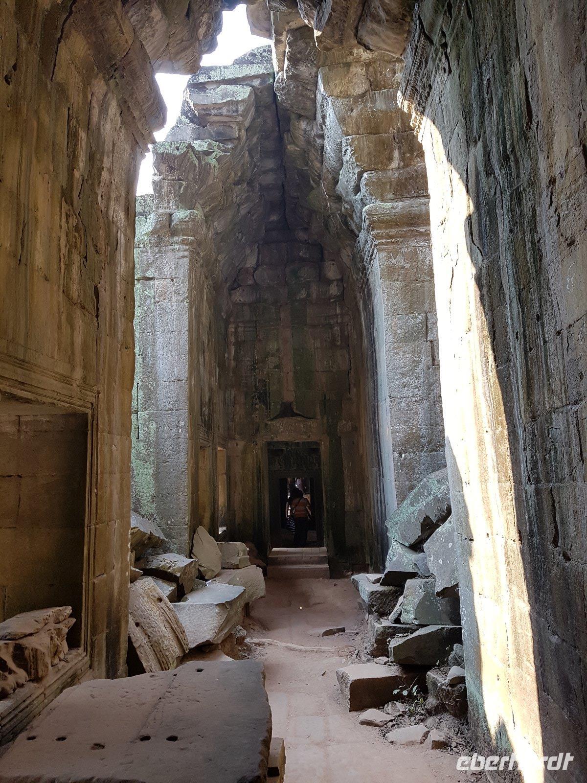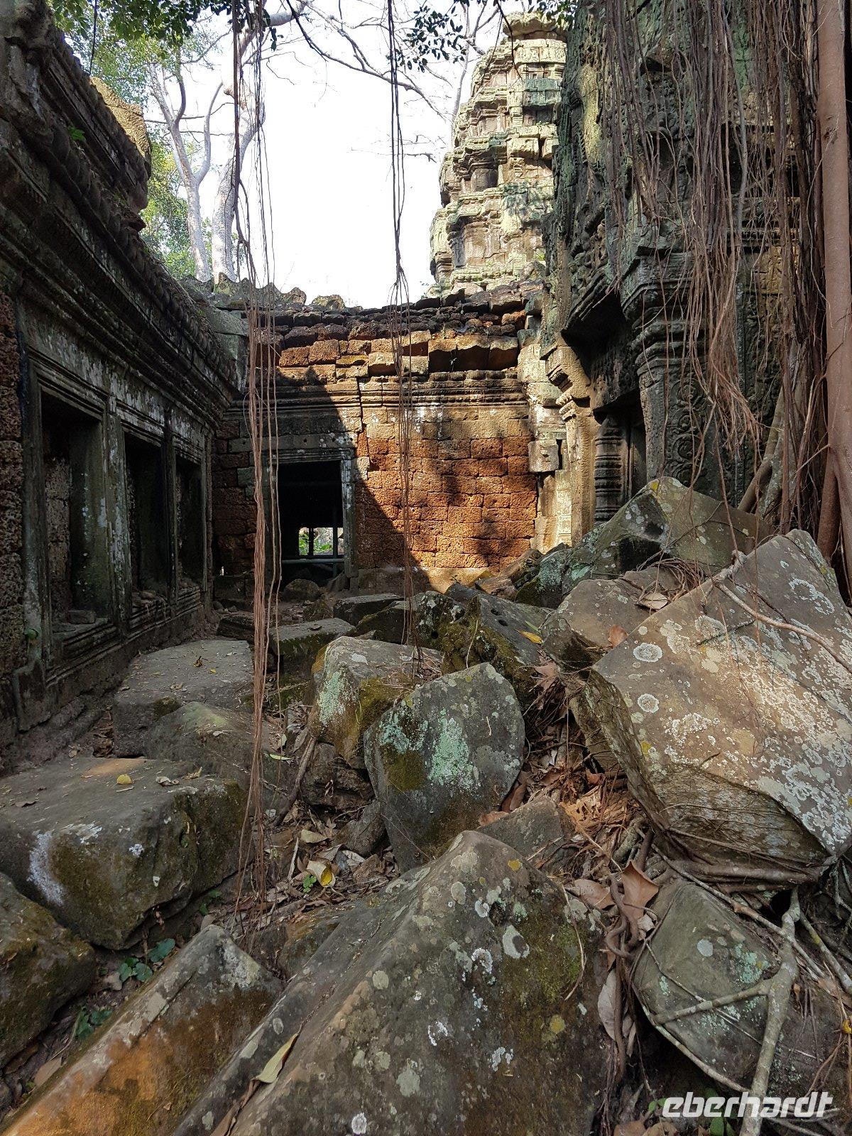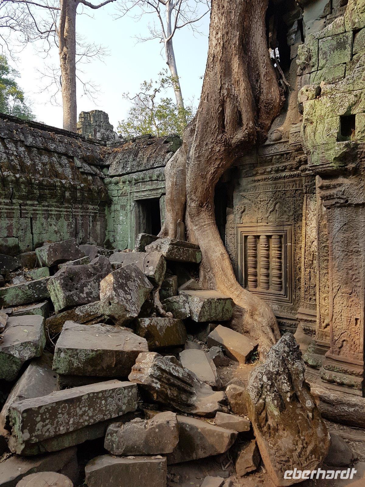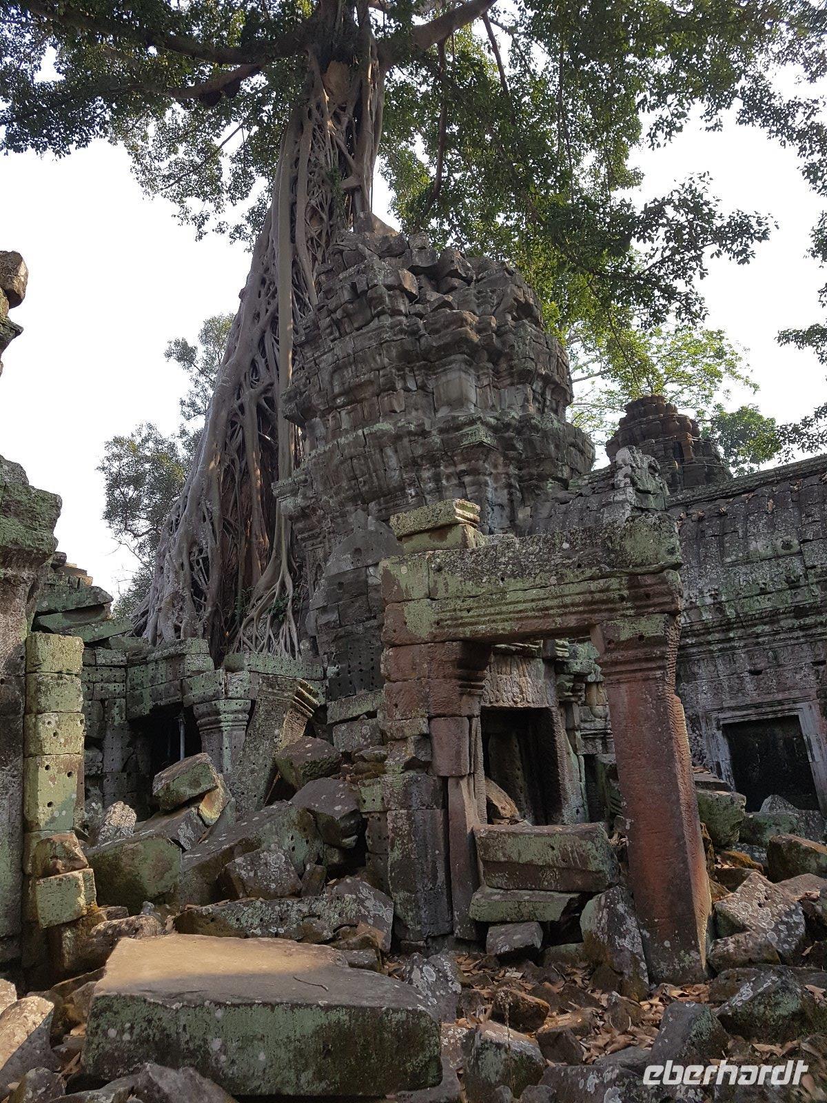 Nicht zuletzt der „Tomb Raider" Verfilmung verdankt der gigantische Dschungeltempel Ta Prohm seine heutige Popularität. Majestätisch stehen die Bäume über den Ruinen, welche sie sich einverleibt haben.