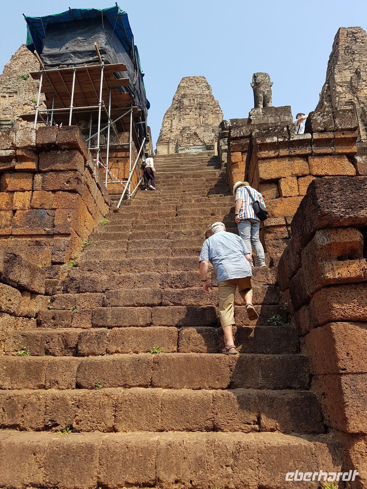 Der zeitigere Start zu dem uns der Guide animiert hat zahlt sich aus; wir sind zwar nicht allein vor Ort, das morgendliche Licht begeistert aber die Fotografen unter uns. Wir genießen Sie die Wirkung der Anlage im Herzen des Urwaldes, gehen und steigen ehrfürchtig staunend durch die phantastische Anlage.