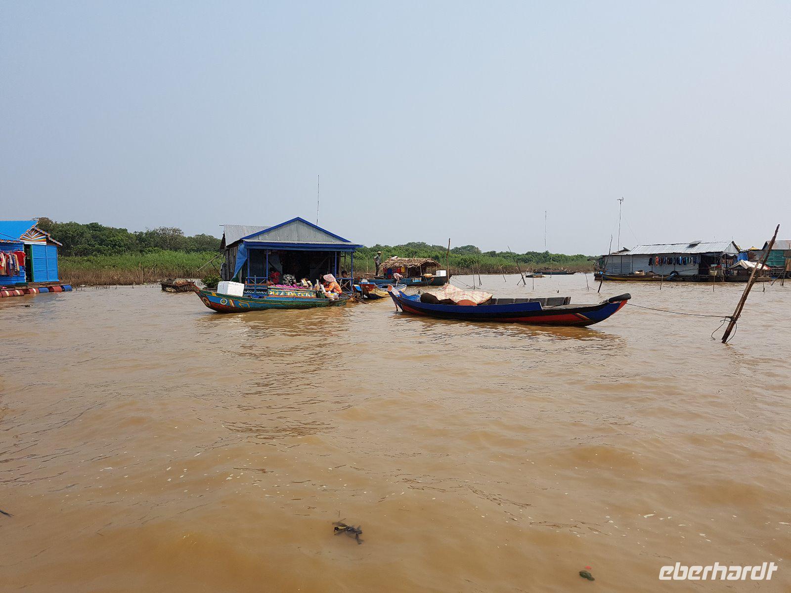 Gerade das macht die Besichtigung des äußerst authentisch wirkenden Fleckens mit Markt, Krokodilfarm, Nudelherstellung, Tempelanlage und großer Pangasiuszucht so interessant. Später unternehmen wir noch eine Bootsfahrt auf dem Tonle-Sap-See.