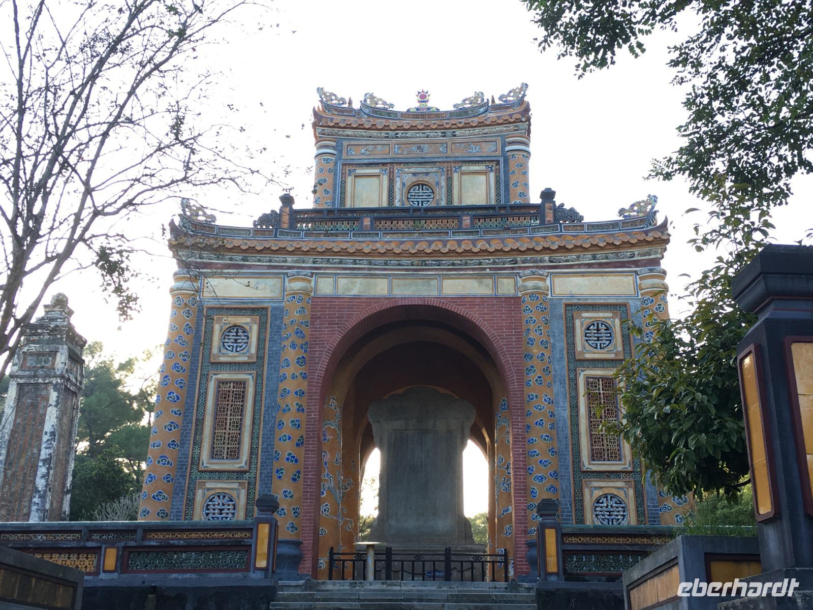 Das Fruehstueck ist wieder sehr ueppig, wir schauen uns das jedoch lieber an und begnuegen uns mit wenig und feinem Kaffee. Koffer werden verladen und bald sind wir unterwegs nach Danang. Nun kennen wir alle Danang als grosser amerikansischer Militaerstuetzpunkt heute ist Danang jedoch ein Badeort geworden. Lange, breite, weisse Sandstraende zieren diese saubere Stadt. Internationale Hotels haben die Gruenzone uebernommen und der amerikanische Flughafen ist nach wie vor ersichtlich. Ueber 470 tausend Ami-Soldaten gingen hier ein und aus und die Bevoelkerung Danangs durfte 20 Jahre lang nicht in die Naehe ihres eigenen Strandes. Heute badet hier ganz Vietnam, es ist ein Sommerurlaubs-mekka geworden. Bettler gibt es keine, da die gleich in eine Berufsschule gesteckt werden oder als Arbeiter in einer Fabrik eingestellt werden. Die Preise der Speisen und angebotenen Ware in den Geschaeften muessen auch alle gleich sein fuer Touristen sowie fuer Einwohner, ansonsten wird die Lizenz auch gleich einmal weggenommen. Toent wie Eldorado. Nun verlassen wir Danang und fahren dem Meer entlang auf eine Passtrasse. Sie windet sich auf fast 500 Meter ueber Meeresspiegel durch Wiesenlandschaft die eigentlich Urwald sein sollte. Aber schade, sagt «Noch», da diese Passtrasse zum Ho Chi Minh Pfad gehoert haben die Amerikaner auch hier Entlaubungsgift von Monsanto gespritzt um die Waffen-Zulieferungen vom Norden besser zu sehen und bombardieren zu koennen. Die Folgen dieses Krieges sind auch heute noch present. Die Erde ist verseucht, Baeume wachsen keine und eine Art von Schlingpflanze hat sich ausgebreitet und wuchert ueber allem. Ackerboeden und vor allem Menschen in Suedvietnam leiden noch immer unter Agent Orange. Auf der Passhoehe machen wir Halt und knipsen schoene Bilder von der Bucht von Danang ehe es auf der anderen Seite wieder runter geht zu einer Landzunge wo wir auch baden werden. Dass das Wasser 27 Grad hat, dachten wir uns nicht. Lustig ist es in den hohen, langen Wellen zu spielen oder sich am Pool zu vergnuegen. Das Mittagessen nehmen wir auch hier am Strand an. Gleich danach gehts weiter... auf ein Schlaefchen im Bus ... bis Hue. In der Kaiserstadt besuchen wir als erstes gleich schon mal die Grabanlage des letzten Kaisers To Doc. Da er als Kind Mumpfs hatte, konnte er keine Kinder zeugen was ihn aber nicht hinderte 1 Ehefrau, 1 Nebenfrau und 104 Konkubinen zu halten. Tee trank er bloss von Wasser, welches in der Frueh von Konkubinen in Form von Tau von den Lotusblaetter eingesammelt worden war. Er war dermassen mit seinem komplizierten und aufwendigen Leben beschaeftigt, dass er bald einmal Saigon den Franzosen zur Regierung vermachte, machtlos dastand, und bald darauf ganz Vietnam an die Franzosen verlor. Er ist und war nie beliebt bei den Vietnamesen, lebte 16 Jahre in seiner eigenen Grabanlage, ist nun hier begraben und UNESCO hat diese pompoese Grabanlage als Weltkulturerbe anerkannt und wir sind gluecklichen dies besuchen zu koennen. Nun ist Zeit in die Stadt hineinzufahren, einzuchecken in unser schoenes Hotel und uns auf den Abend zu freuen. Heute essen wir in einem sehr schoenen Restaurant. Gereicht werden Spezialitaeten von Hue, gleich 8 Gaenge ! Nur gut, dass das Mittagessen heute bloss eine Suppe war.