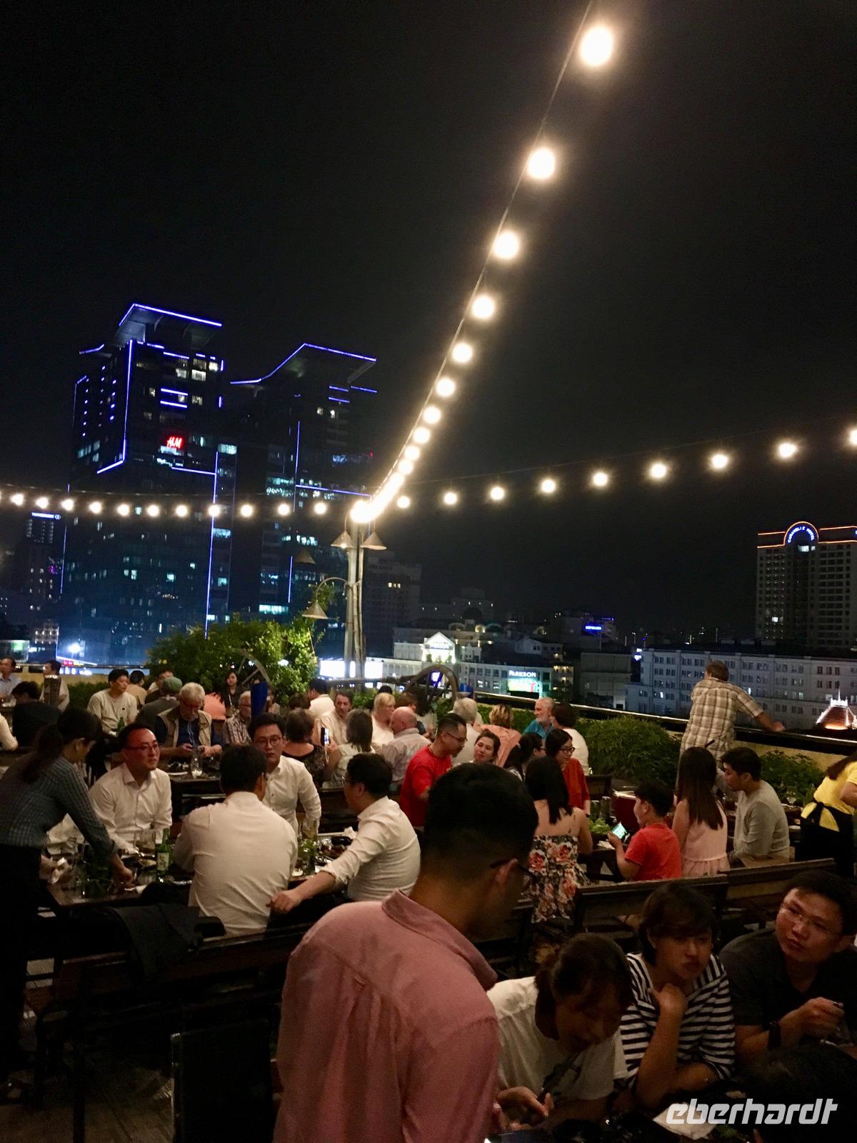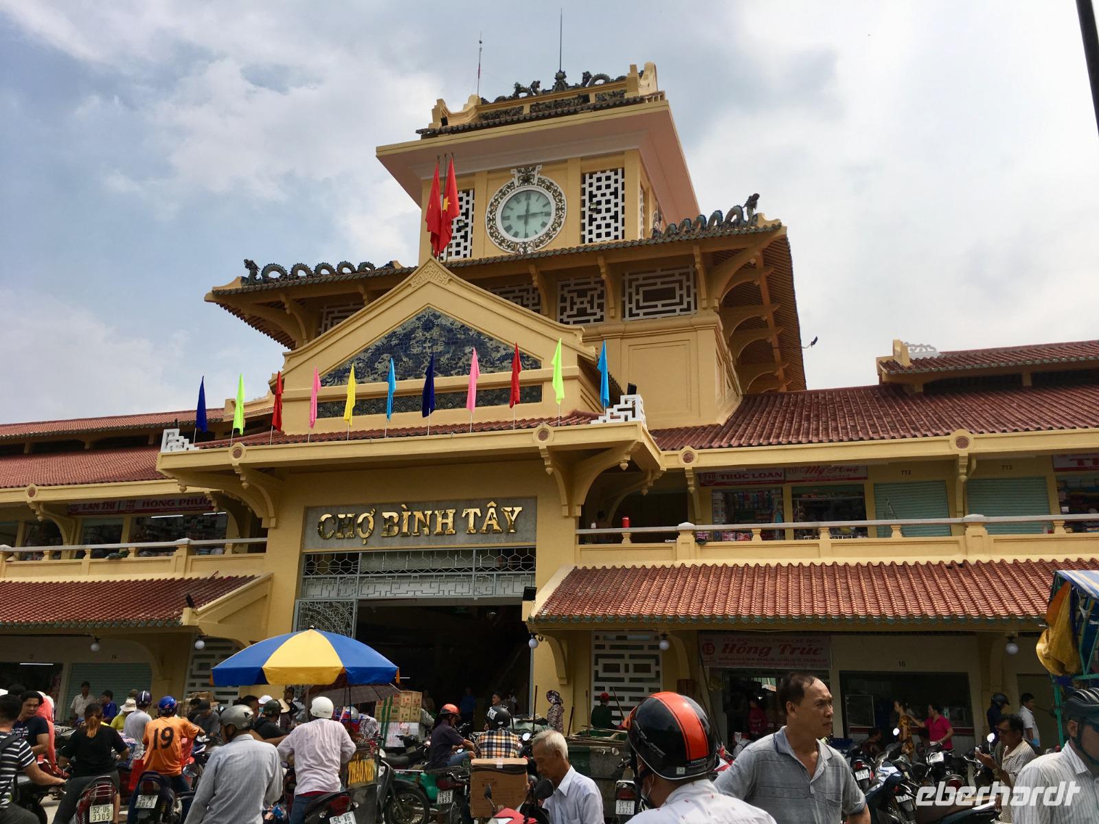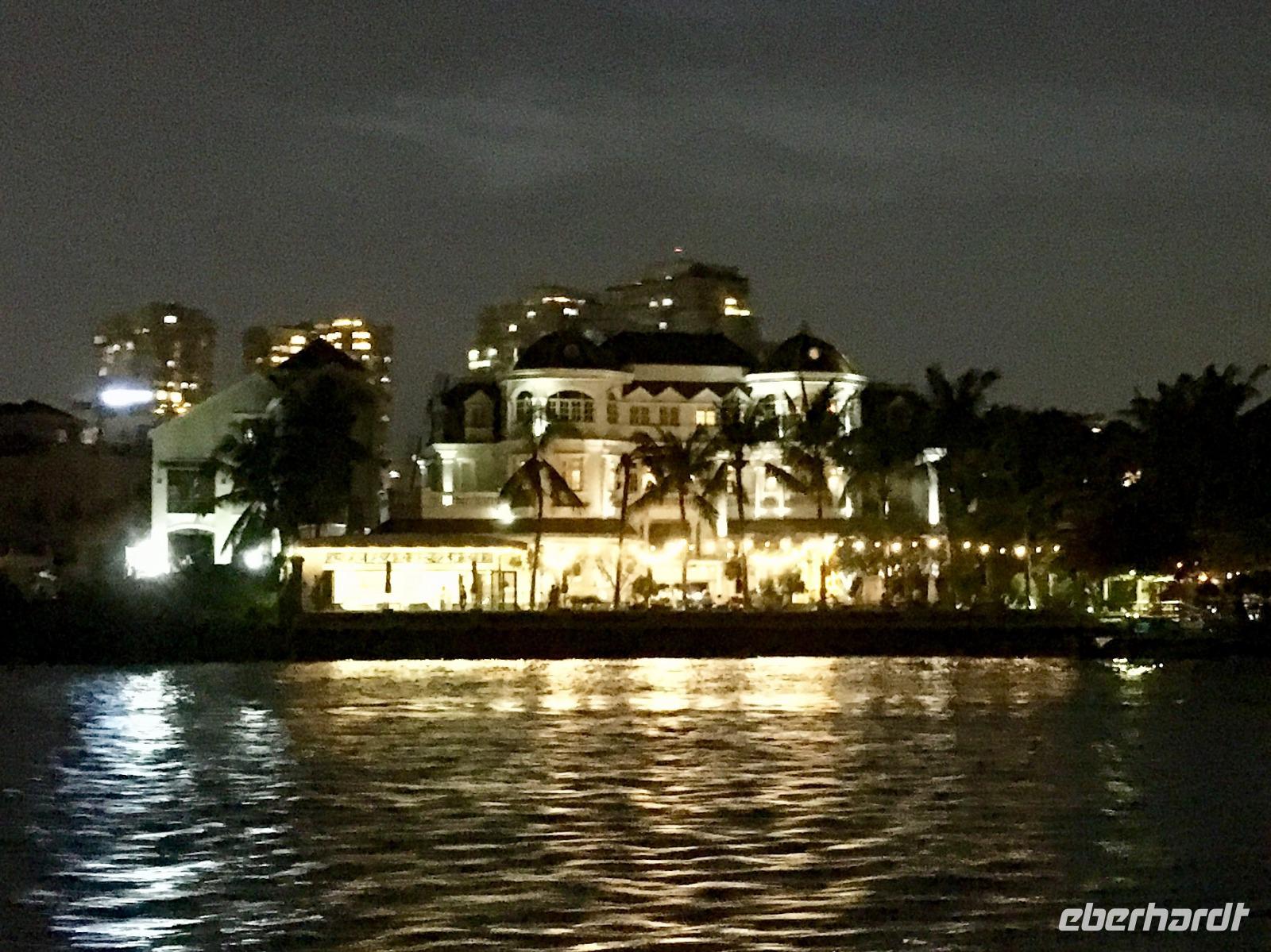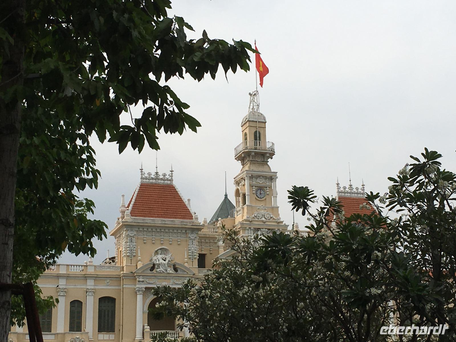 Uiii, 5 Uhr in der Frueh, Weckruf, nun aber auf, denn heute erwartet uns ein wunderbarer Tag. Erst der Flug von Hue nach Saigon. Wir kommen alle gut und mit Koffer bestueckt in Saigon an. Erwartet werden wir von Mrs. Huong, unsere Reiseleitung in Suedvietnam. Sie zeigt uns ihr Saigon auf der anschliessenden Stadtrundfahrt. Als erstes aber, laesst sie uns aussteigen und jeder darf in eine Riksha steigen. So erleben wir Saigons Chinatown mit seinen engen Gassen, gedeckten Maerkten, beladenen Verkaufslaeden und dichtem Mofa-Verkehr einmal anders. Vorbei am chinesischen Tuch-, Tabak-und Plastikmarkt, enlang des Blumen-,Fleisch- und Gemuesemarktes bis alle unsere Sinne geweckt und durchwuehlt sind. Die Pagodenbesichtigung der 10'000 Buddahs ist danach eine echte Erholung und der Ventilator beim Eingang in die Pagode, eine Erleichterung. Heute ist es schwuel und heiss, aber das sei immer so, jetzt sei Winter und sehr angenehm. Wir sind durchgeschwitzt und vom Verkehr in Staub gehuellt. Aber es muss Winter sein, denn die Vietnamesinnen auf ihren Mofas sind von Kopf bis Fuss fest eingekleidet sogar das Gesicht und die Haende werden eingedeckt und geschuetz, nicht nur gegen die Sonne, sondern auch gegen all den Staub ! Nun fahren wir mit dem Bus zum grossen Markt, wo wir auch ein feines, leichtes Mittagessen kosten. Sogar Clinton hatte in demselben Lokal schon gegessen. In dem franzoesischen Viertel sehen wir sehr schoene Haeuser der Kolonialzeit, hier steht auch die Kathedrale von Notre Dame, die Oper, sowie das Stadtamt. In dem Postamt sehen wir auch die gemalene Landkarte von damals und der 83-jaehrige Uebersetzer sitzt auch noch auf seinem Sessel. Er hat nun weniger Arbeit als frueher, meint er, Google Translator hat ihm viel Arbeit weggenommen. Wir werden zu geuebten Bus-Ein- und Aussteiger trainiert ! denn auch in der Fuzo steigen wir aus, damit wir das gelbe Rathaus besichtigen koennen. In dieser 2'000 Km2 grossen Stadt mit ihren 13 Mio Einwohner und 5'000 Mofas ist ganz schoen viel los. Bald checken wir in unser schmuckes Hotel ein und erholen uns ehe es auf unserer Erlebnis Tour weitergeht. Zwei Minibusse fuehren uns an eine Anlegestelle des Saigon Flusses wo unser Boot schon am Pier liegt. Auf dem Boot wird uns nun feierlich unser «Geschenk» uebergeben .... und viel Bier dazu. Die Fahrt ist einmalig, wir sehen diese chaotische Stadt in einem ganz neuen Kleid. Die beleuchteten Hochhaeuser ragen aus dem Lichtermeer der Stadt heraus, sie glitzern und glaenzen im Abendhimmel und spiegeln sich in dem ruhigen Saigon Fluss. Der Sonnenuntergang ist hier besonders schoen und die Stadt wird echt romantisch. Noch ein Bierchen.... also Mo Hai Ba Gioooo und die Freude und Gemuetlichkeit nehmen konstant zu. Nach 2 Stunden wollen wir gar nicht mehr aussteigen. Die 2 Minibusse aber, fahren uns nun zum einzigartigen Abendessen auf einer Dachterasse. Inmitten Vietnamesen werden wir verkoestigt wie die Kaiser, neun Gaenge und 2 grosse Bierbehaelter spaeter, schauen wir auf einen langen und wunderschoenen Tag in Saigon zurueck. Zur Verdauung bietet sich nun der Abendspaziergang zum Hotel an.