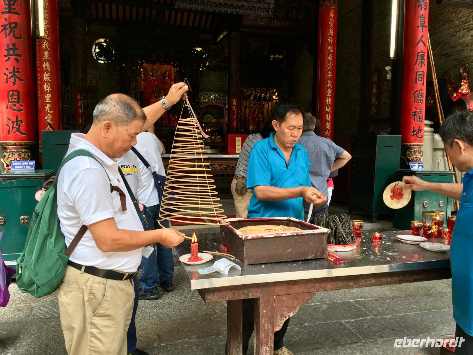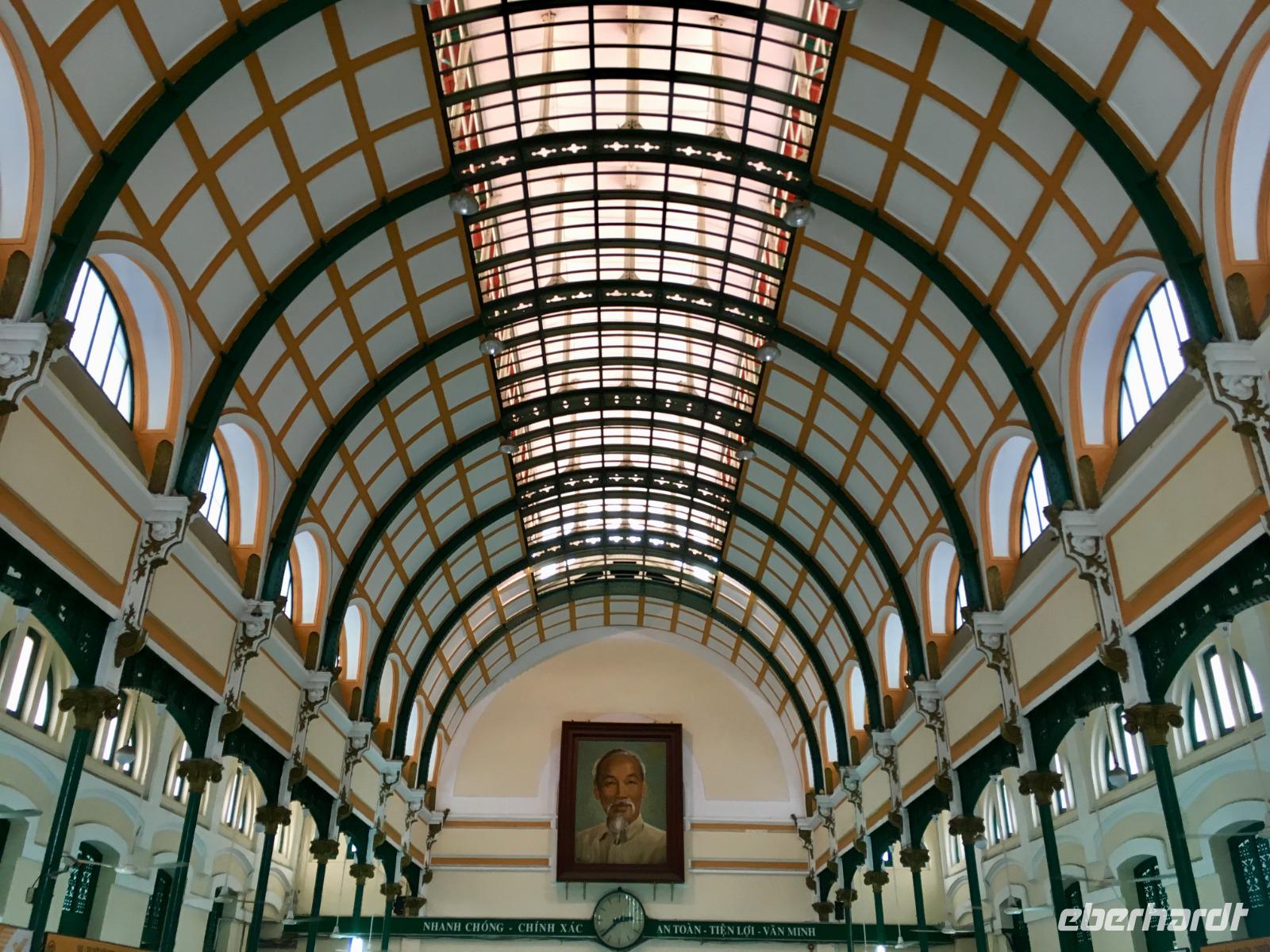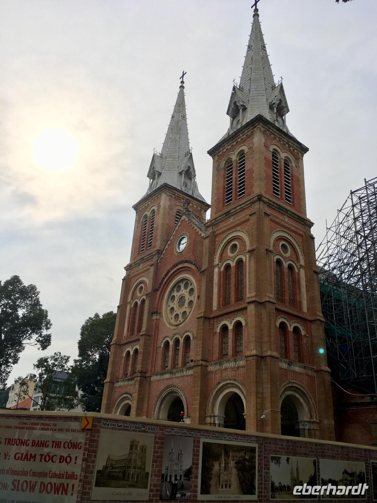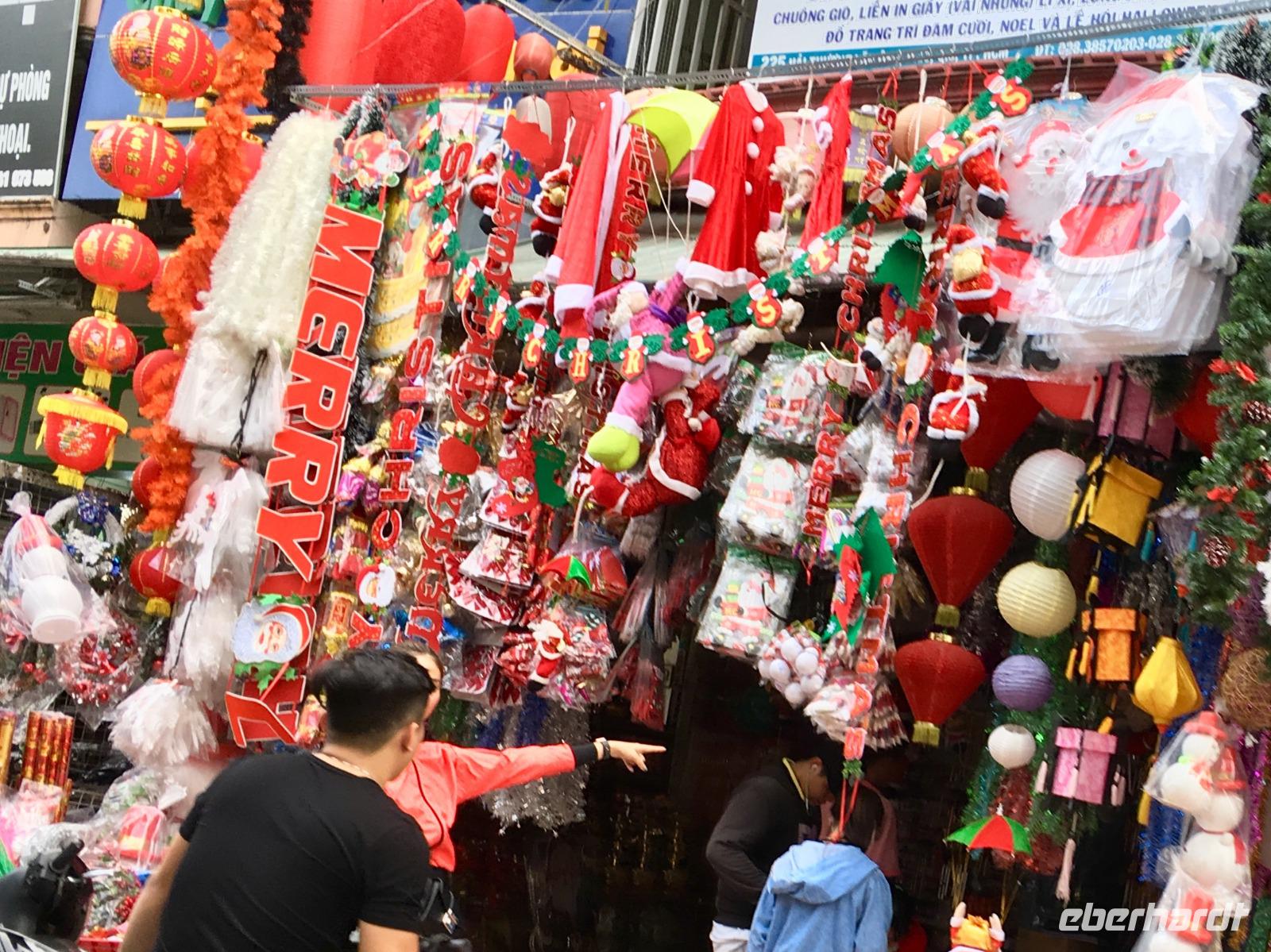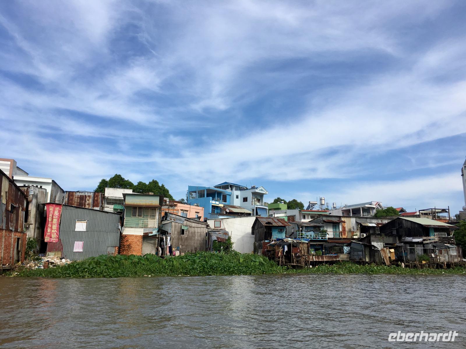 Uiii, 5 Uhr in der Frueh, Weckruf, nun aber auf, denn heute erwartet uns ein wunderbarer Tag. Erst der Flug von Hue nach Saigon. Wir kommen alle gut und mit Koffer bestueckt in Saigon an. Erwartet werden wir von Mrs. Huong, unsere Reiseleitung in Suedvietnam. Sie zeigt uns ihr Saigon auf der anschliessenden Stadtrundfahrt. Als erstes aber, laesst sie uns aussteigen und jeder darf in eine Riksha steigen. So erleben wir Saigons Chinatown mit seinen engen Gassen, gedeckten Maerkten, beladenen Verkaufslaeden und dichtem Mofa-Verkehr einmal anders. Vorbei am chinesischen Tuch-, Tabak-und Plastikmarkt, enlang des Blumen-,Fleisch- und Gemuesemarktes bis alle unsere Sinne geweckt und durchwuehlt sind. Die Pagodenbesichtigung der 10'000 Buddahs ist danach eine echte Erholung und der Ventilator beim Eingang in die Pagode, eine Erleichterung. Heute ist es schwuel und heiss, aber das sei immer so, jetzt sei Winter und sehr angenehm. Wir sind durchgeschwitzt und vom Verkehr in Staub gehuellt. Aber es muss Winter sein, denn die Vietnamesinnen auf ihren Mofas sind von Kopf bis Fuss fest eingekleidet sogar das Gesicht und die Haende werden eingedeckt und geschuetz, nicht nur gegen die Sonne, sondern auch gegen all den Staub ! Nun fahren wir mit dem Bus zum grossen Markt, wo wir auch ein feines, leichtes Mittagessen kosten. Sogar Clinton hatte in demselben Lokal schon gegessen. In dem franzoesischen Viertel sehen wir sehr schoene Haeuser der Kolonialzeit, hier steht auch die Kathedrale von Notre Dame, die Oper, sowie das Stadtamt. In dem Postamt sehen wir auch die gemalene Landkarte von damals und der 83-jaehrige Uebersetzer sitzt auch noch auf seinem Sessel. Er hat nun weniger Arbeit als frueher, meint er, Google Translator hat ihm viel Arbeit weggenommen. Wir werden zu geuebten Bus-Ein- und Aussteiger trainiert ! denn auch in der Fuzo steigen wir aus, damit wir das gelbe Rathaus besichtigen koennen. In dieser 2'000 Km2 grossen Stadt mit ihren 13 Mio Einwohner und 5'000 Mofas ist ganz schoen viel los. Bald checken wir in unser schmuckes Hotel ein und erholen uns ehe es auf unserer Erlebnis Tour weitergeht. Zwei Minibusse fuehren uns an eine Anlegestelle des Saigon Flusses wo unser Boot schon am Pier liegt. Auf dem Boot wird uns nun feierlich unser «Geschenk» uebergeben .... und viel Bier dazu. Die Fahrt ist einmalig, wir sehen diese chaotische Stadt in einem ganz neuen Kleid. Die beleuchteten Hochhaeuser ragen aus dem Lichtermeer der Stadt heraus, sie glitzern und glaenzen im Abendhimmel und spiegeln sich in dem ruhigen Saigon Fluss. Der Sonnenuntergang ist hier besonders schoen und die Stadt wird echt romantisch. Noch ein Bierchen.... also Mo Hai Ba Gioooo und die Freude und Gemuetlichkeit nehmen konstant zu. Nach 2 Stunden wollen wir gar nicht mehr aussteigen. Die 2 Minibusse aber, fahren uns nun zum einzigartigen Abendessen auf einer Dachterasse. Inmitten Vietnamesen werden wir verkoestigt wie die Kaiser, neun Gaenge und 2 grosse Bierbehaelter spaeter, schauen wir auf einen langen und wunderschoenen Tag in Saigon zurueck. Zur Verdauung bietet sich nun der Abendspaziergang zum Hotel an.